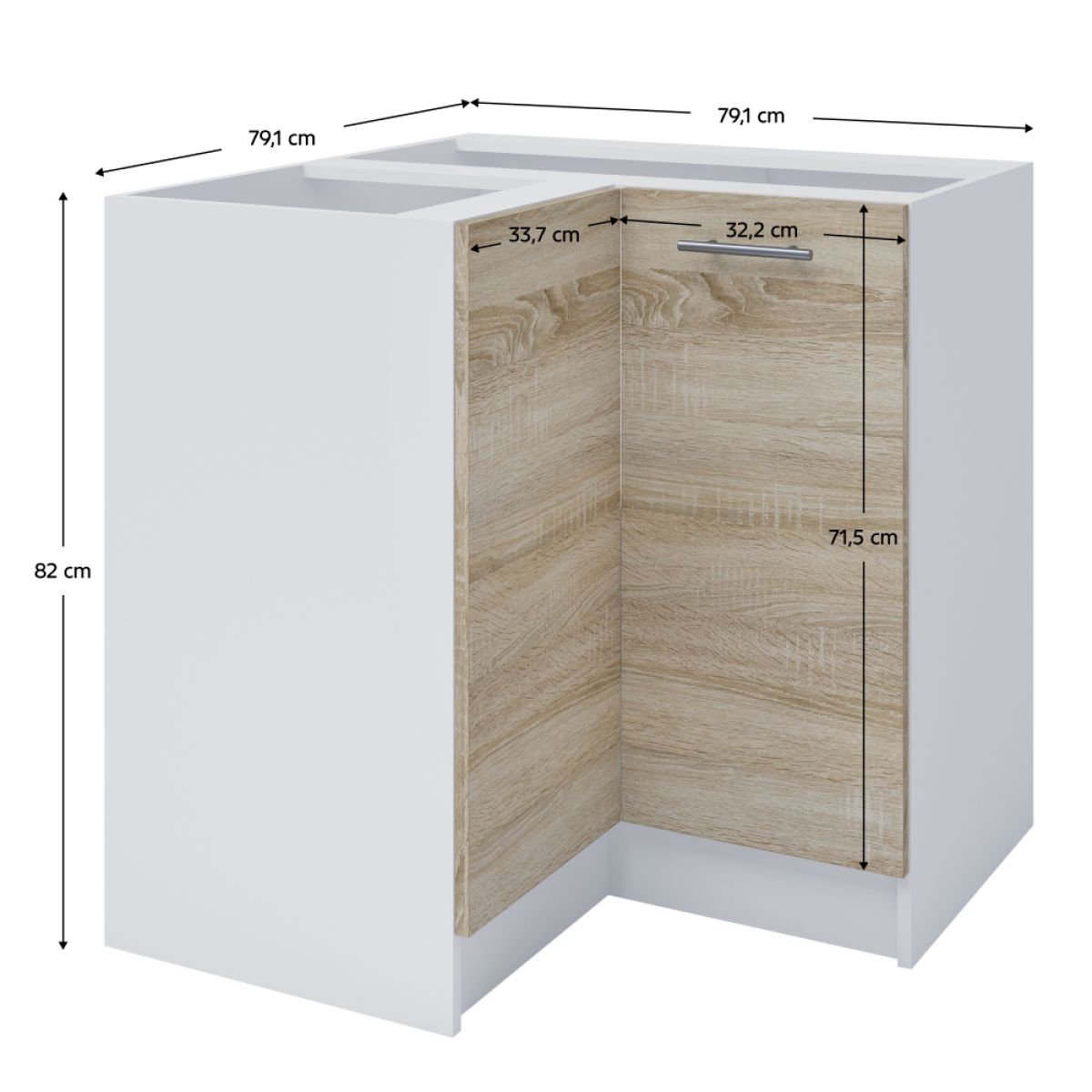 Dulap inferior de colţ, alb, stejar sonoma/ alb, bucătăria FABIANA 1