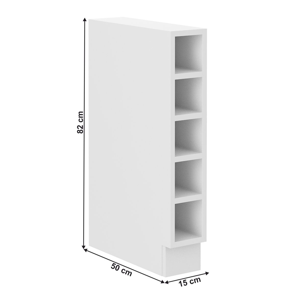 Dulap inferior cu rafturi LULA15 D OTW BB Material: HDF laminat Culoare: albă Dimensiuni (LxAxÎ): 15x50x82 cm Grosime cadru: 1,6 cm Cu şină inferioară/plintă, Cu rafturi, Design dinamic modern, Livrat dezasamblat, Chiuvetă universală, Opţiunea de a cumpăra o chiuvetă universală LAY ON, Dulapurile inferioare sunt furnizate împreună cu şina inferioară, Fără blat de lucru. Opţiunea de a achiziţiona blat de lucru din stejar artisan sau marmură roma la preţul de 319/metru liniar. Opţiunea de a achiziţiona o chiuvetă universală LAY ON.