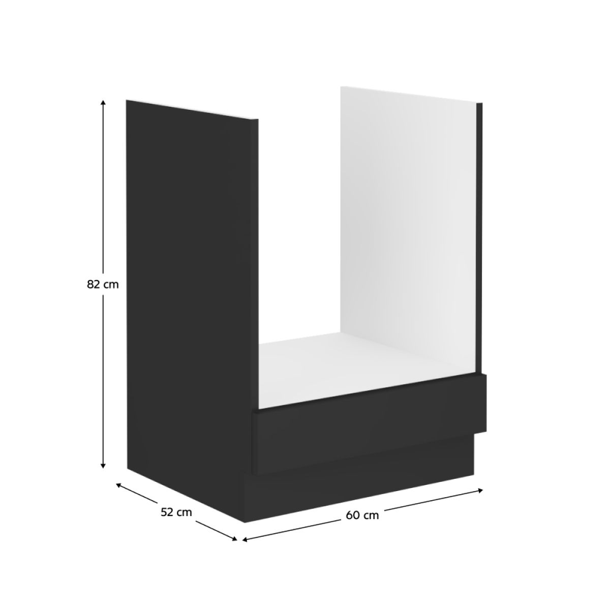 Material: DTD laminat Culoarea uşii: negru Culoarea corpului: negru mat Dimensiuni (Lxlxh): 60x52x82 cm Grosime material: 1,6 cm Pentru aragaz încorporat Cu şină de bază/plintă Design modern Fără blat Chiuvetă universală LAY ON disponibilă pentru achiziţionare Livrat dezasamblat Dulapurile din modularul inferior sunt furnizate inclusiv şina inferioară (plintă), fără blat. Blatul de lucru cu o grosime de 3,8 cm poate fi comandat separat în finisaj de tip stejar artisan la preţul de 339 Lei/ml.