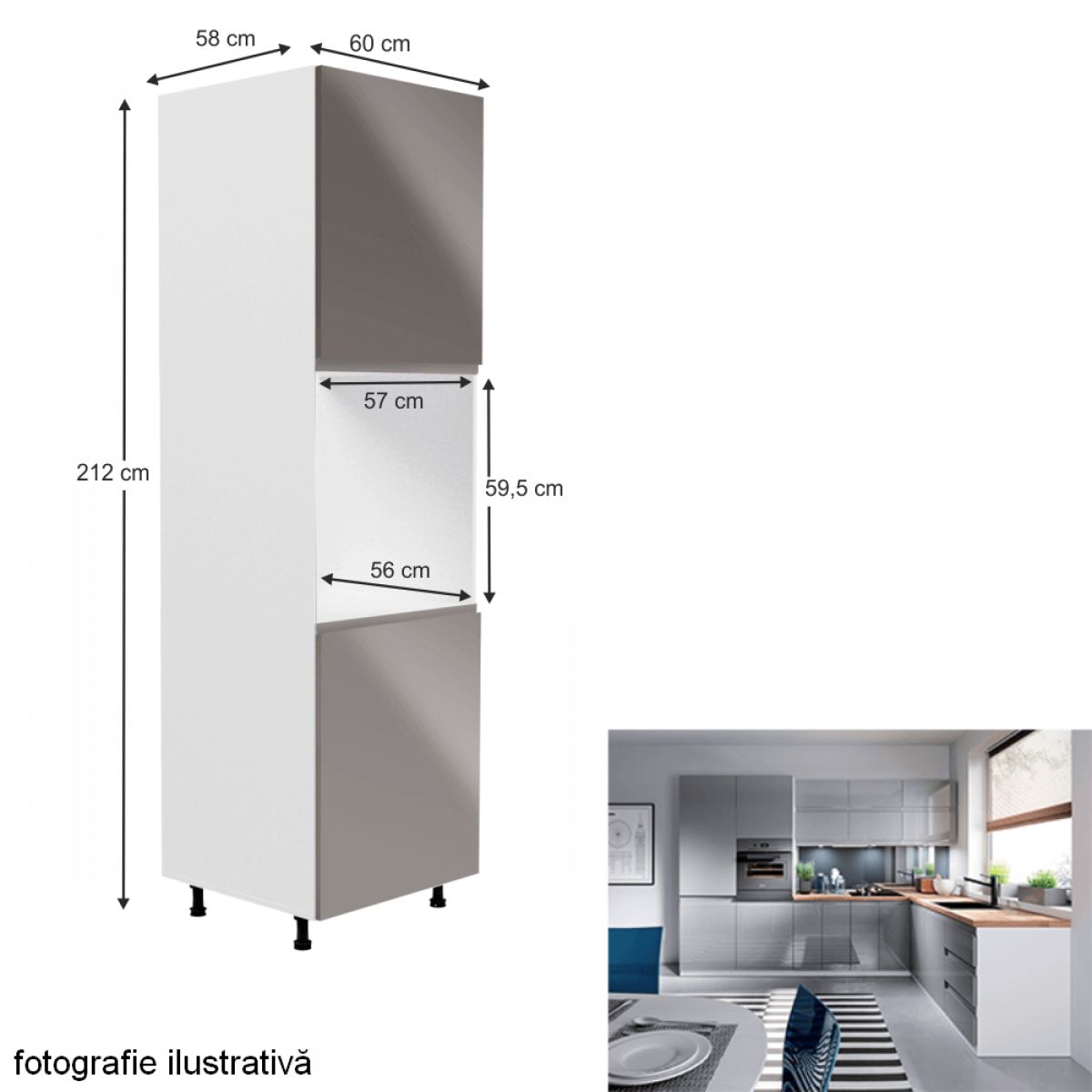 Dulap pentru produse alimentare AURORA D60P, Material: PAL melaminat/MDF Culoare: alb/gri extra lucios Dimensiuni (lxhxA): 60x212x58 cm Grosimea materialului: 15 mm Sistem închidere uşoară şi silenţioasă a uşilor Stânga Pentru fiecare cabinet inferior, înafară de D25PZ, trebuie să cumpăraţi 2 suporturi de fixare pentru plintă - preţul 5,-/2buc. Blatul de lucru nu este inclus. Preţul blatului de lucru stejar lefkas închis este 297,- pe m - grosime de 38 de mm. Puteţi cumpăra şi o chiuvetă universală D/S LAY ON.