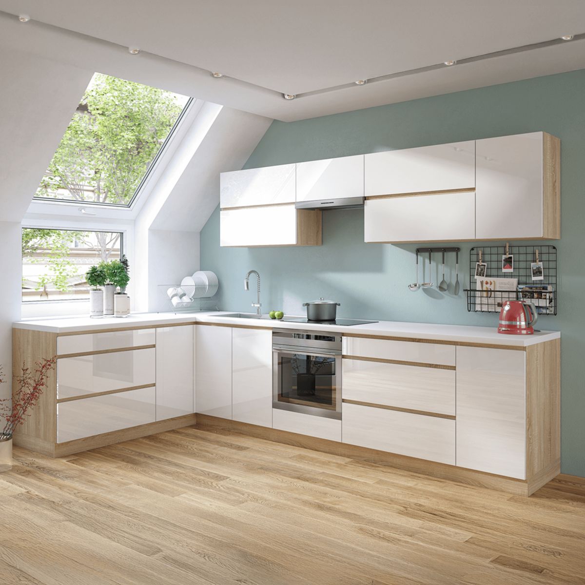 Culoare: alb lucios/ stejar sonoma