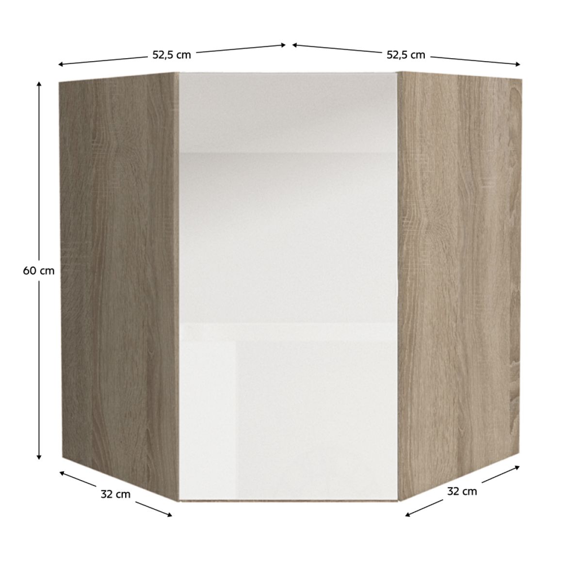 Dulap superior de colţ, alb lucios, bucătăria LINA 1