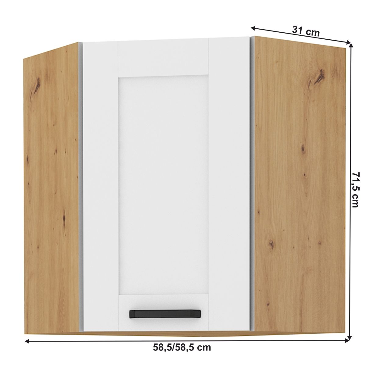 Dulap superior, de colţ, alb/stejar artisan, LULA 58x58 GN-72 1F