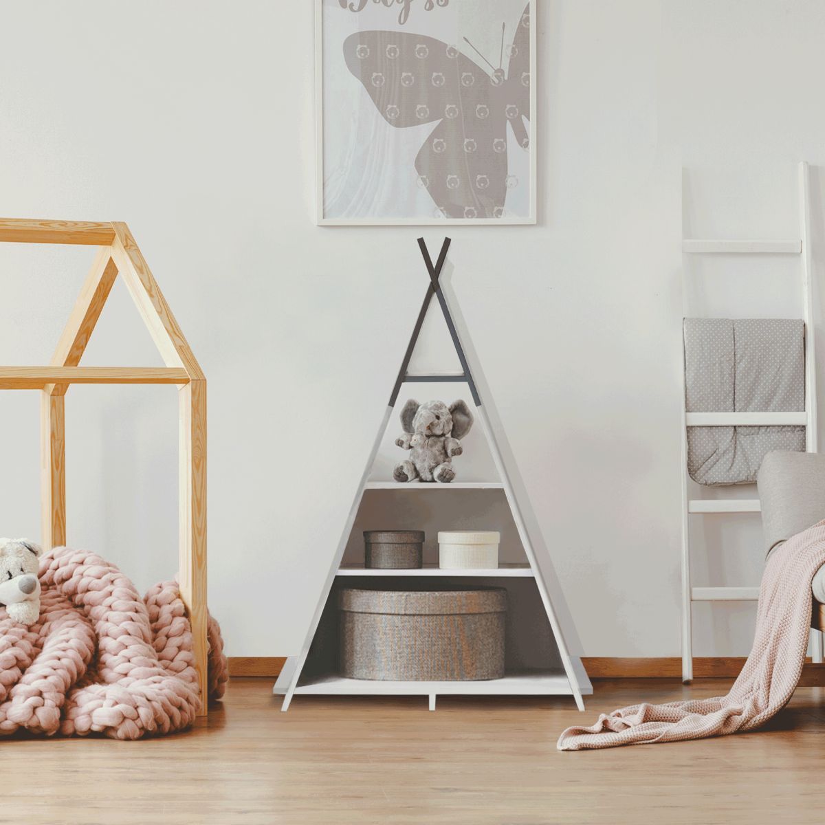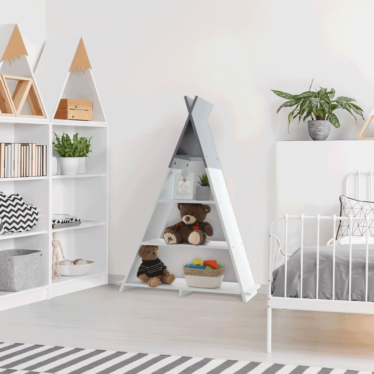 Etajeră pentru rafturi pentru copii, alb/ gri, BARNIE