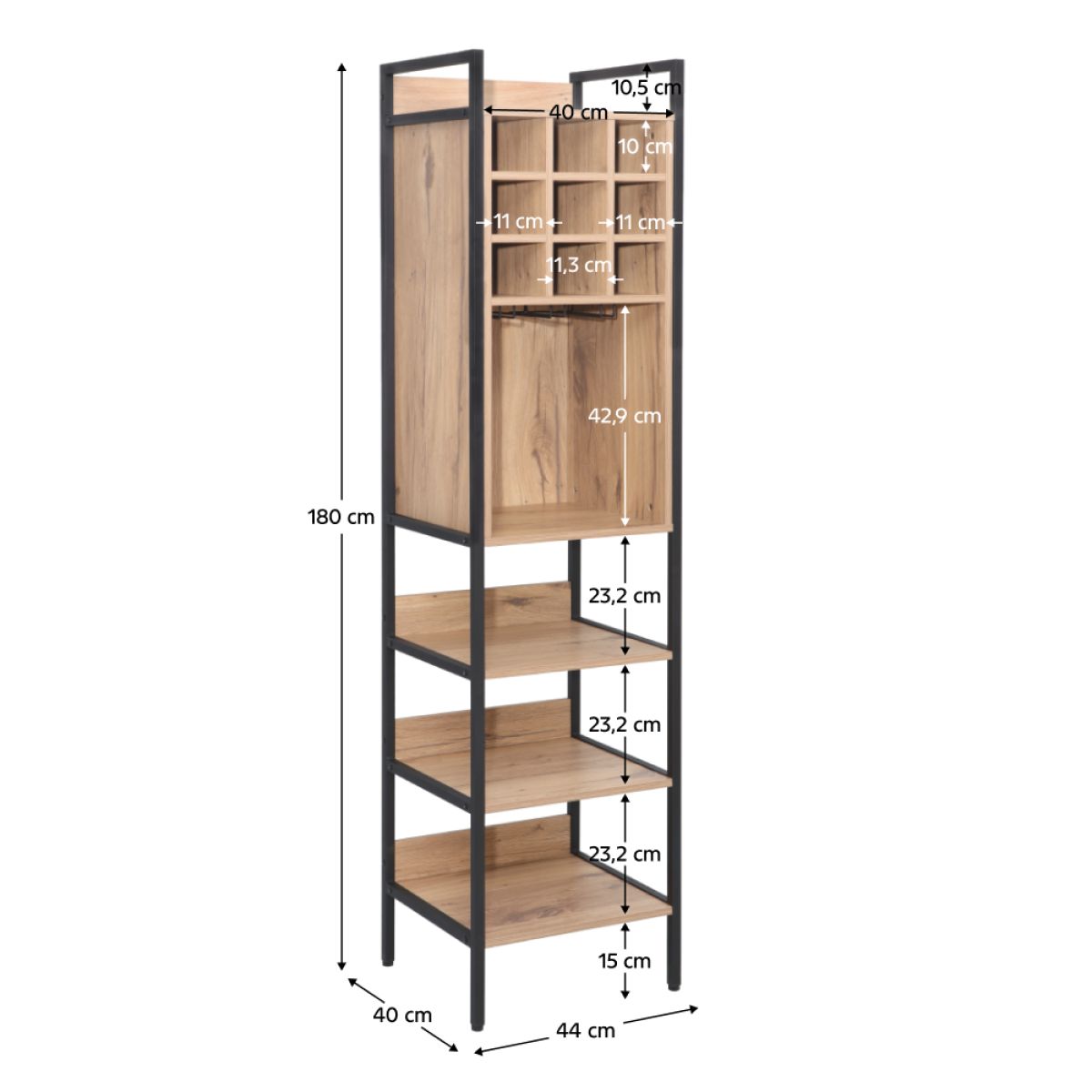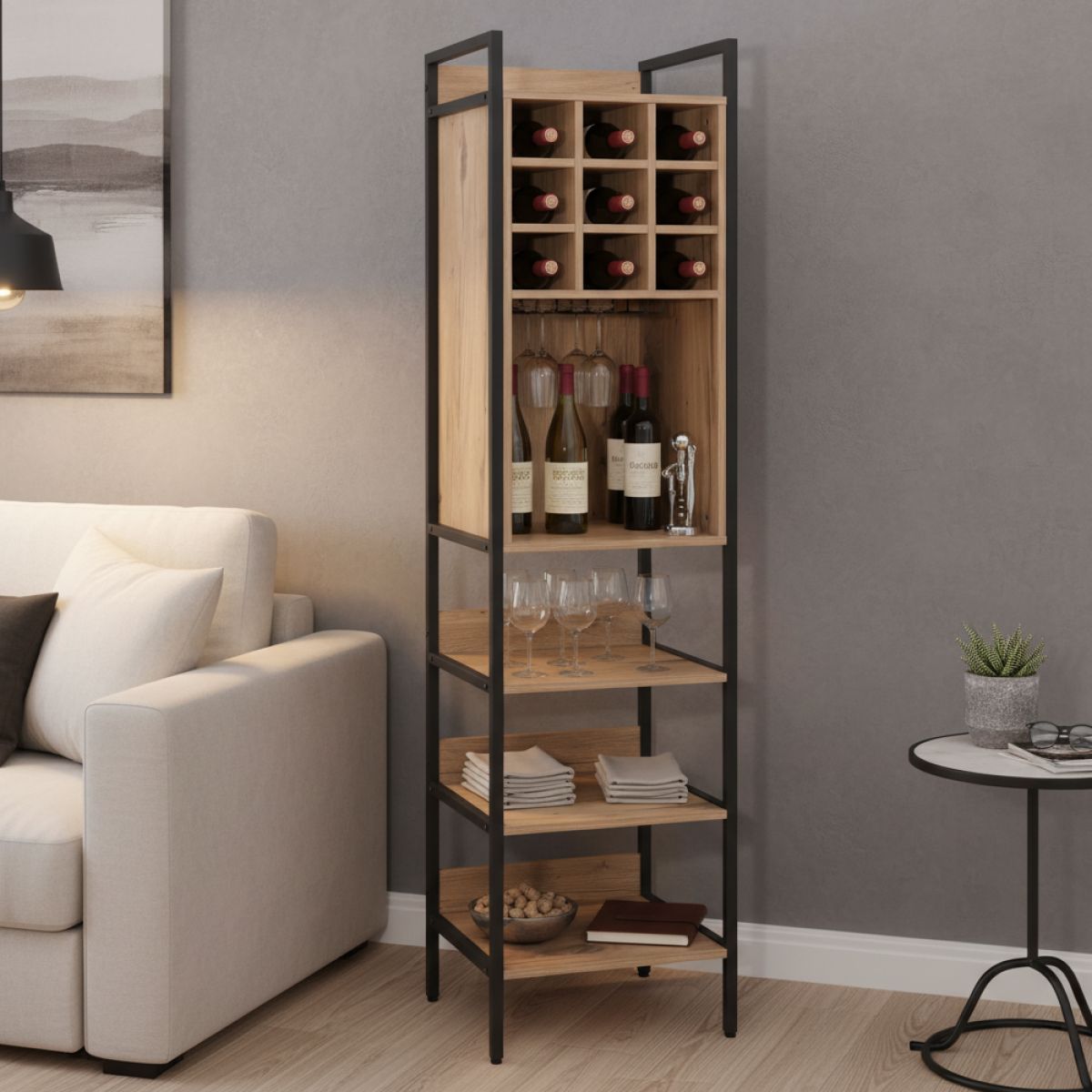 Etajeră pentru vin, stejar/negru, VINPO