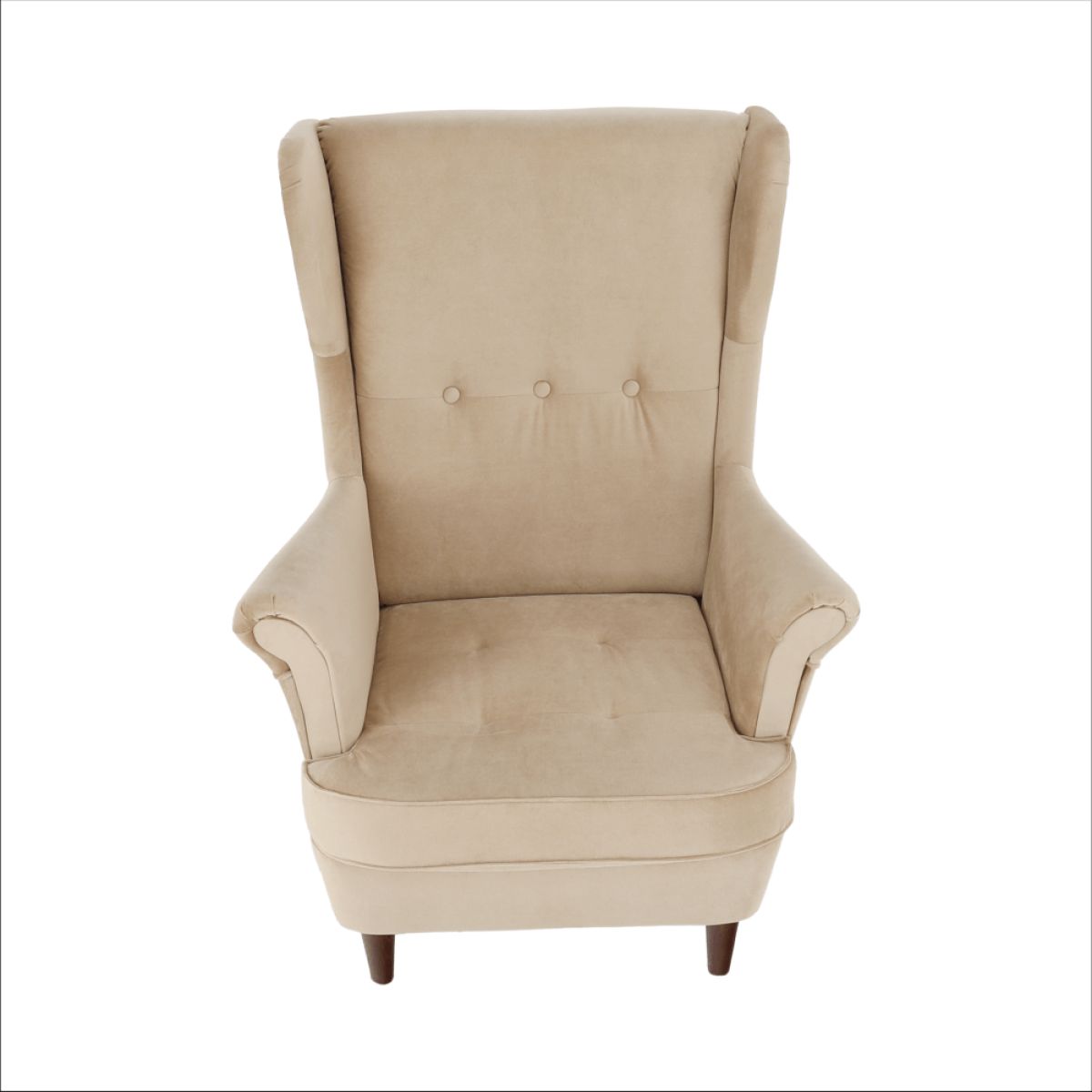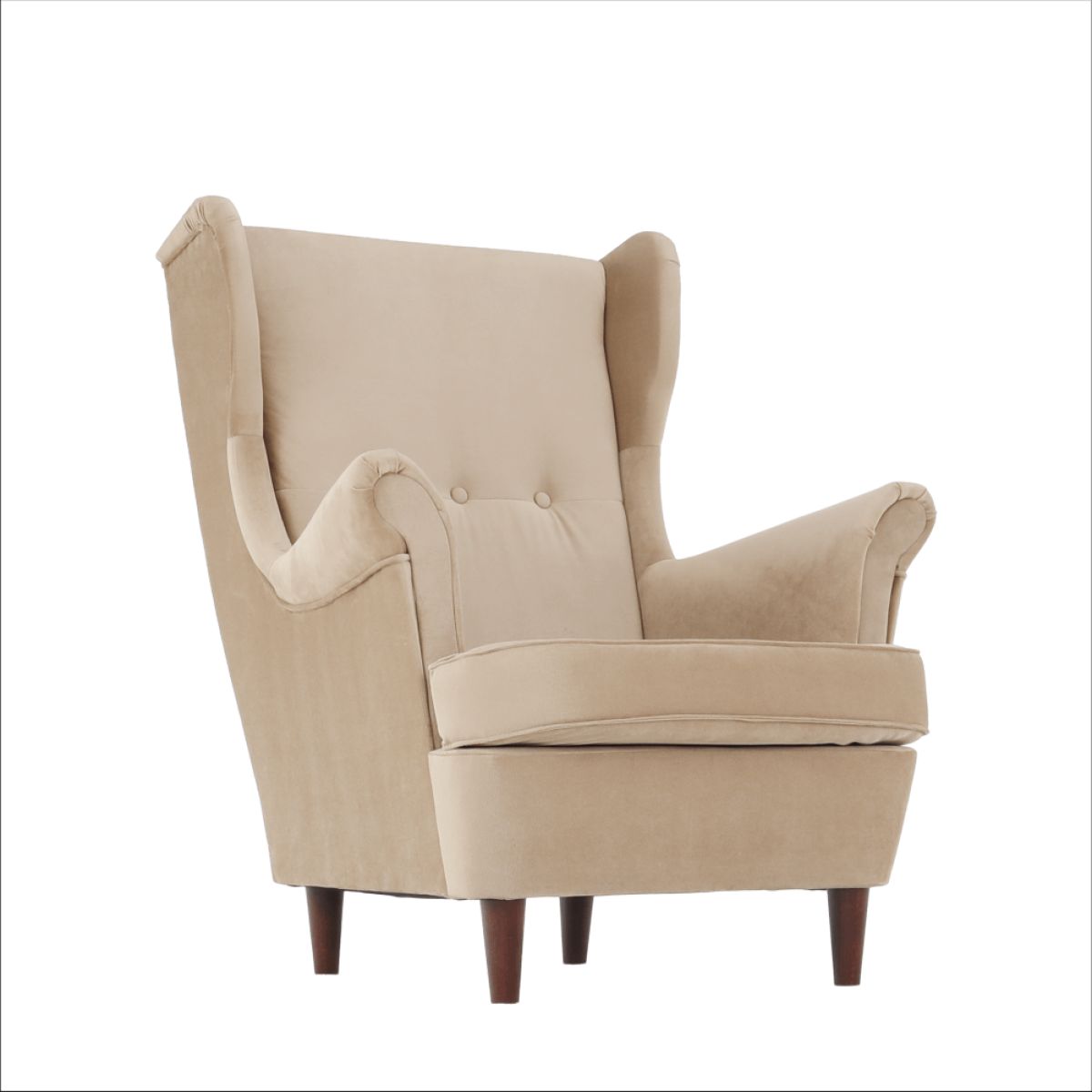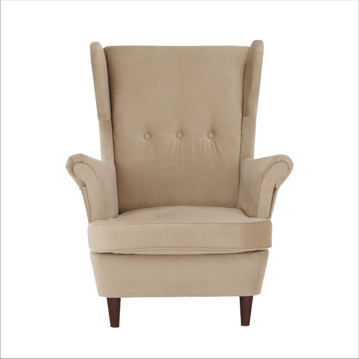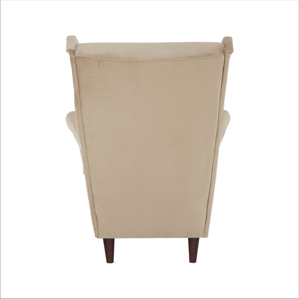 Material: material textil Kronos 35/lemn Rezistenţa materialului: 60 000 Martindale Culoare: bej auriu/nuc Dimensiuni fotoliu (lxhxA): 82x104x92 cm Înălţime şezut: 40 cm Adâncime şezut: 58 cm Înălţimea spaţiului inferior de la podea: 13 cm Înălţimea spătarului: 73 cm Înălţimea de la sol până la cotieră: 65 cm Lăţimea scaunului: 53 cm Picioare din lemn Culoarea picioarelor poate varia Livrat nemontat
