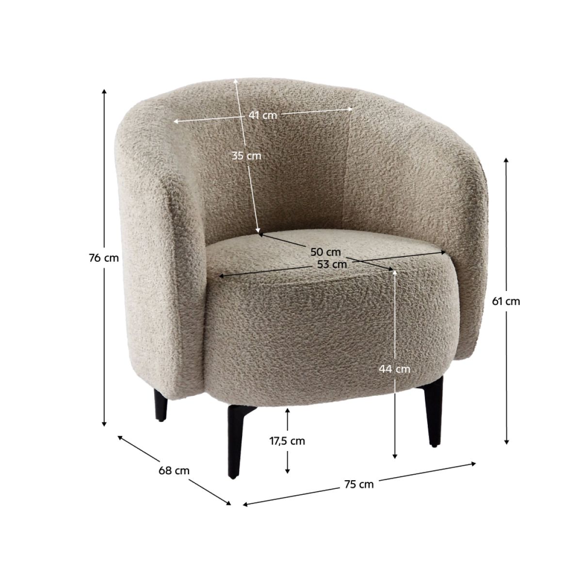 Material: ţesătură Abriamo Bouclé 03 Rezistenţa ţesăturii conform testului Martindale: 45.000 cicluri de frecare Dimensiuni (LxAxÎ): 75x68x76 cm Culoarea tapiţeriei: bej Umplutură: arcuri ondulate + spumă PUR T30 Material picioare: metal Culoarea picioarelor: neagră Înălţimea compartimentului inferior faţă de podea: 17,5 cm Înălţime spătar: 35 cm Lăţime spătar: 41 cm Înălţime scaun: 44 cm Adâncime scaun: 50 cm Lăţime scaun: 53 cm Înălţime cotieră: 61 cm Capacitate de încărcare: 120 kg De design Tapiţat integral ţesătură greu inflamabilă Livrat dezasamblat Posibilitatea de a alege dintre 6 nuanţe ale ţesăturii Abriamo Bouclé la preţul de 1.135 Lei. Pentru comenzi personalizate este necesară plata unui avans de 10% din suma totală. După achitarea avansului, comanda dumneavoastră va intra în producţie. Termenul de livrare este de 6-8 săptămâni.