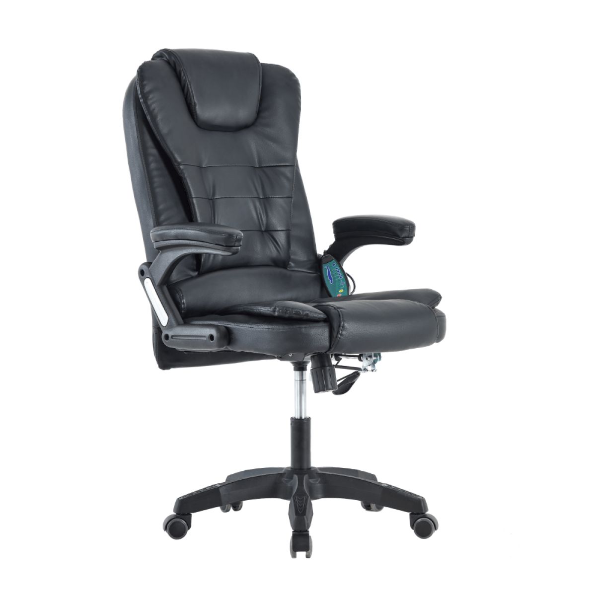 Material: piele ecologică / plastic Rezistenţa ţesăturii conform testului Martindale: 100.000 de cicluri de frecare Culoare: neagră Dimensiuni (LxAxÎ): 65x71x110-120 cm Înălţime scaun: 46-56 cm Adâncime scaun: 51 cm Lăţime cotieră: 7 cm Capacitate de încărcare: 110 kg Greutate: 15,3 kg Spătar (LxÎ): 52x67cm Scaun (LxA): 52x51 cm Rozetă şi cotiere din plastic Cotiere tapiţate cu piele ecologică Funcţie de masaj 7 motoare cu vibraţii 5 funcţii de masaj Reglarea intensităţii 4 zone de masaj Temporizator 15-60 min Spătar reglabil Funcţie de balansare Înălţime reglabilă a scaunului Posibilitate de conectare a scaunului prin intermediul unui adaptor Cu telecomandă Livrat dezasamblat