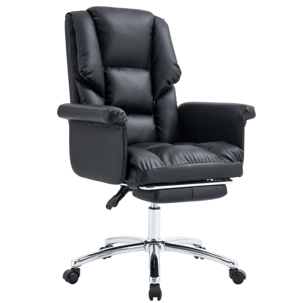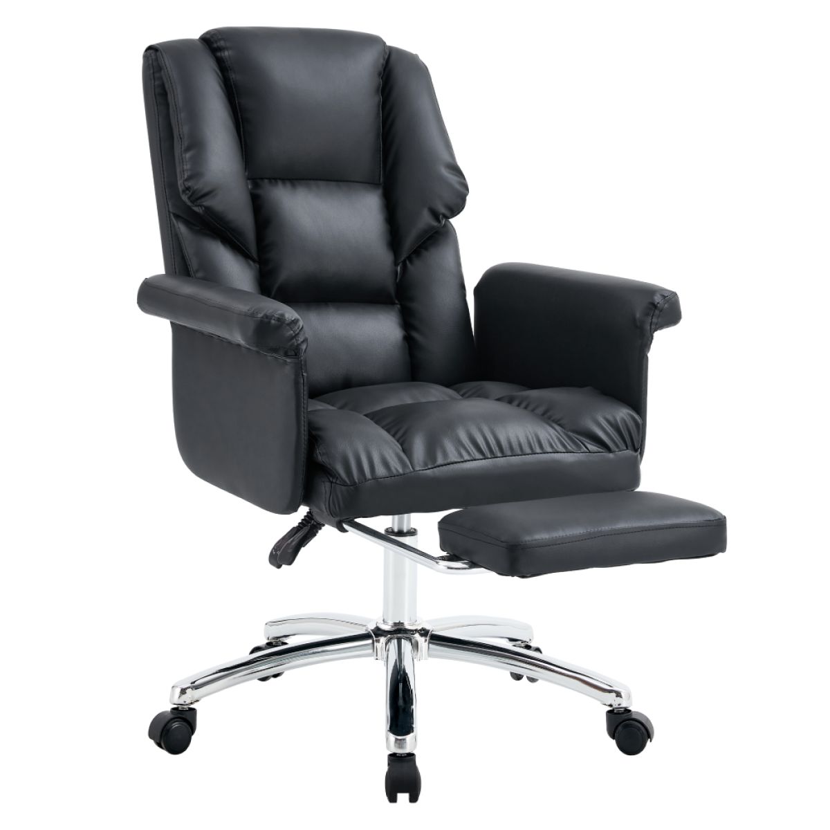 Fotoliu de birou cu suport pentru picioare, piele ecologică neagră, RODIK