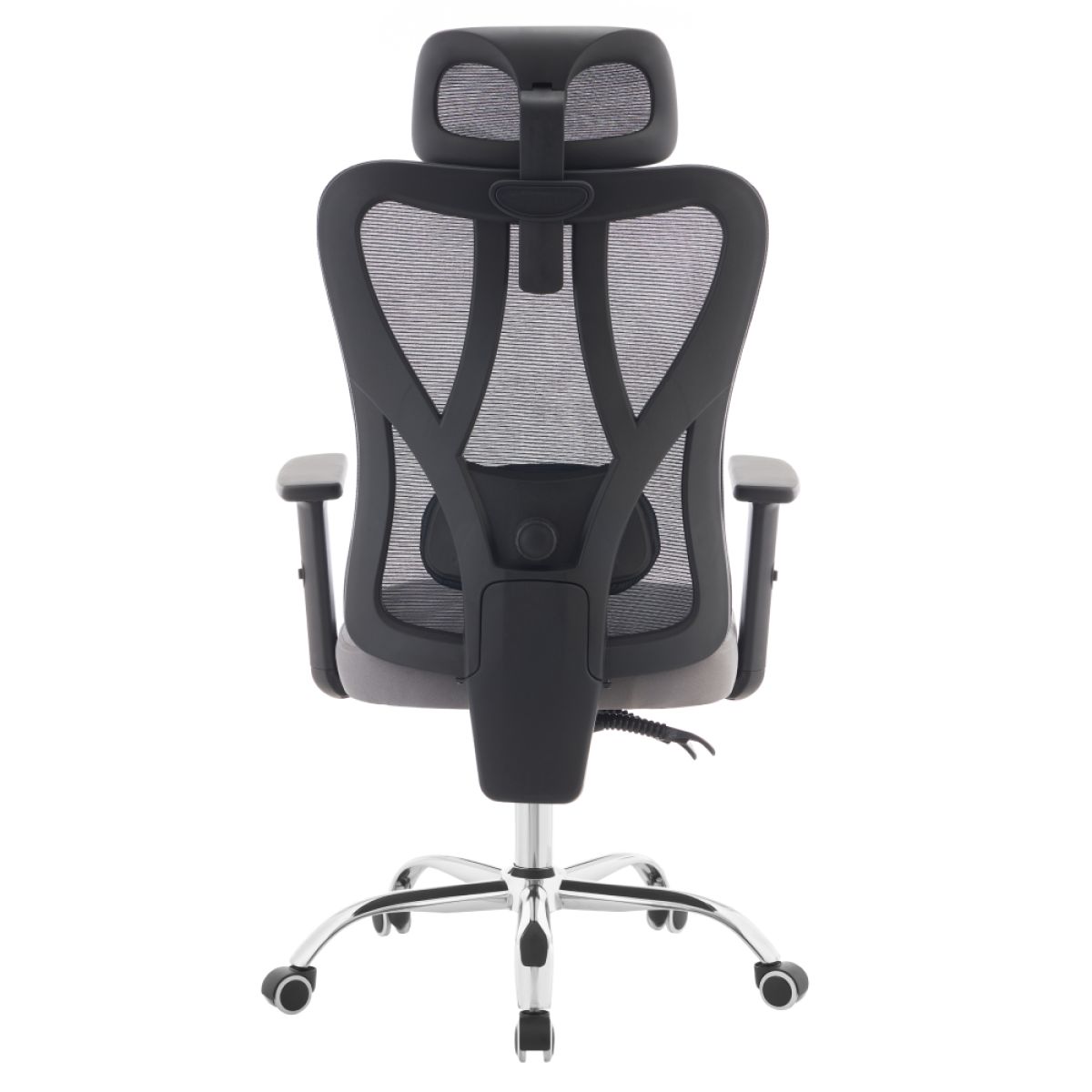 Material: plasă/ţesătură/plastic/metal Rezistenţa plasei conform testului Martindale: 90 000 de cicluri de frecare Rezistenţa ţesăturii la frecare conform testului Martindale: 80 000 garnituri Culoare: gri închis/gri deschis/negru/crom Dimensiuni (lxAxh): 67x57x121-131 cm Înălţimea părţii de şezut: 43-53 cm Adâncimea părţii de şezut: 48 cm Lăţimea părţii de şezut: 46 cm Lăţime spătar: 52 cm Înălţime spătar: 79 cm Portanţă: 150 kg Funcţie de pivotare Funcţie de balansare Înălţime reglabilă a părţii de şedere Înălţime reglabilă a cotierei Partea lombară reglabilă Înălţime reglabilă a tetierei Unghi reglabil al tetierei Roţi universale Roţile sunt potrivite atât pentru podele moi, cât şi pentru podele dure Practic Caracteristici ergonomice practice Livrat dezasamblat