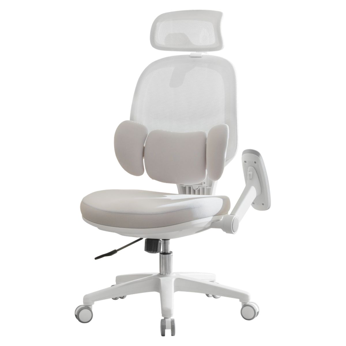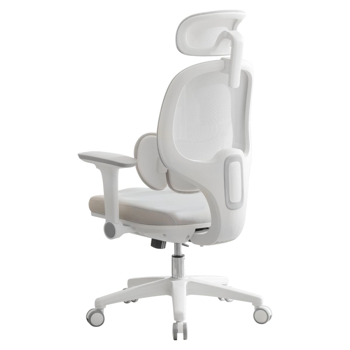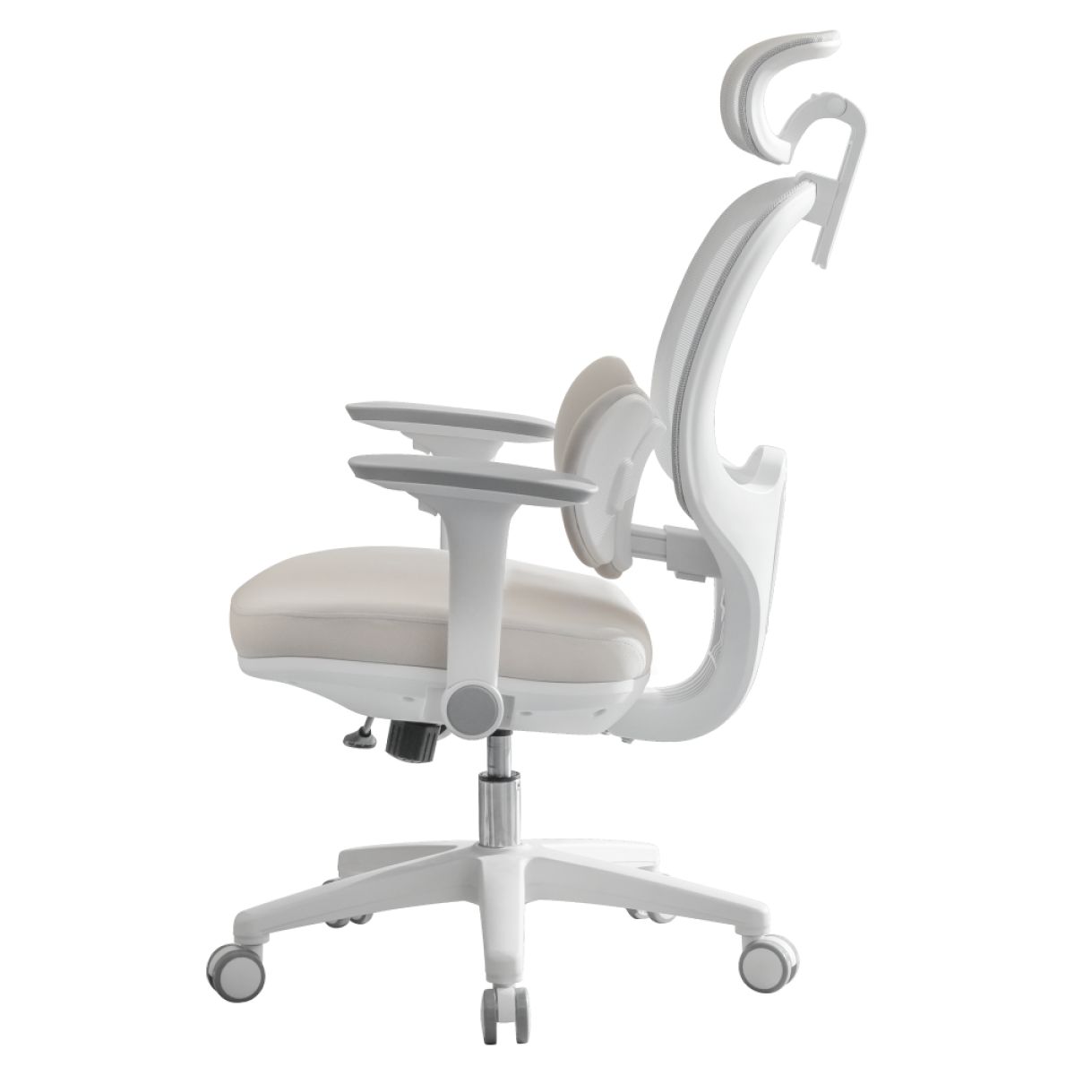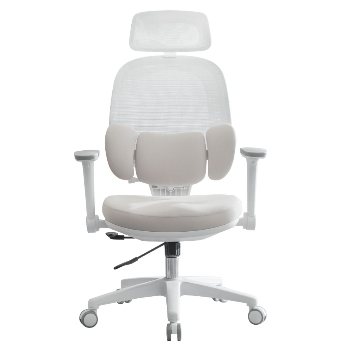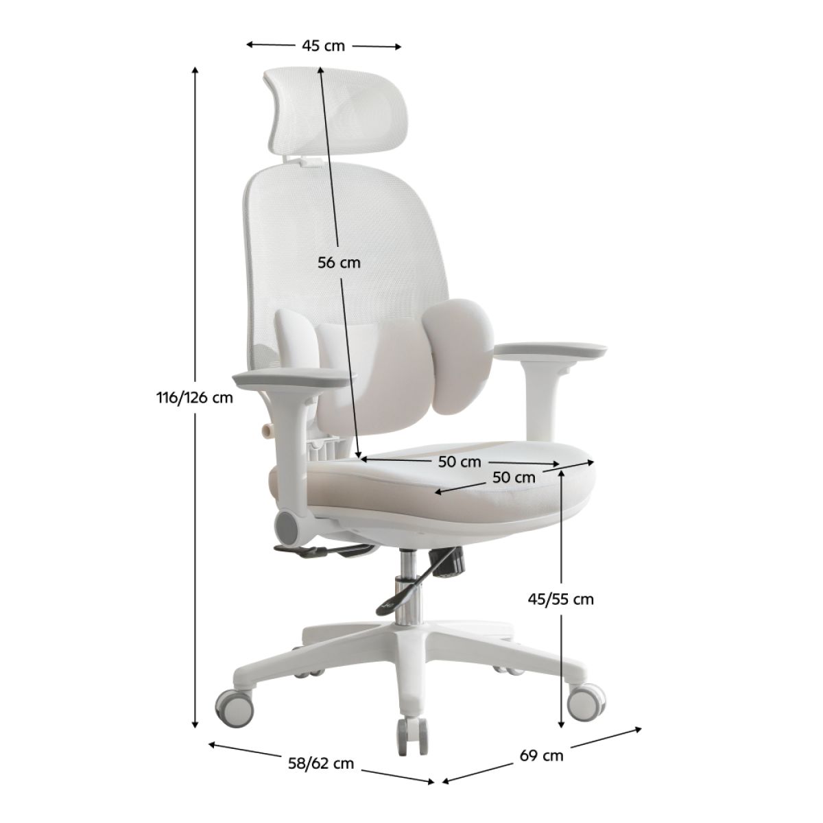 Material: plasă/ţesătură/plastic Rezistenţa plasei conform testului Martindale: 90 000 de cicluri de frecare Rezistenţa ţesăturii conform testului Martindale: 80 000 abraziuni Culoare: gri/albă Dimensiuni (lxAxh): 69x58-62x116-126 cm Înălţimea părţii de şezut: 45-55 cm Adâncimea părţii de şezut: 50 cm Lăţimea părţii de şezut: 50 cm Lăţime spătar: 45 cm Înălţime spătar: 56 cm Portanţă: Scaun rotativ 120 kg Suport lombar reglabil cu blocare Înălţime reglabilă a părţii de şedere Adâncime reglabilă a şezutului Funcţie de balansare Cotiere 4D Cotiere rabatabile Cotiere reglabile pe înălţime Cotiere reglabile pe adâncime Rotirea cotierelor în lateral Înălţime reglabilă a tetierei Unghi reglabil al tetierei şezut confortabil şi moale Roţi universale Roţile sunt potrivite pentru podele moi şi dure Practic Caracteristici ergonomice Livrat dezasamblat