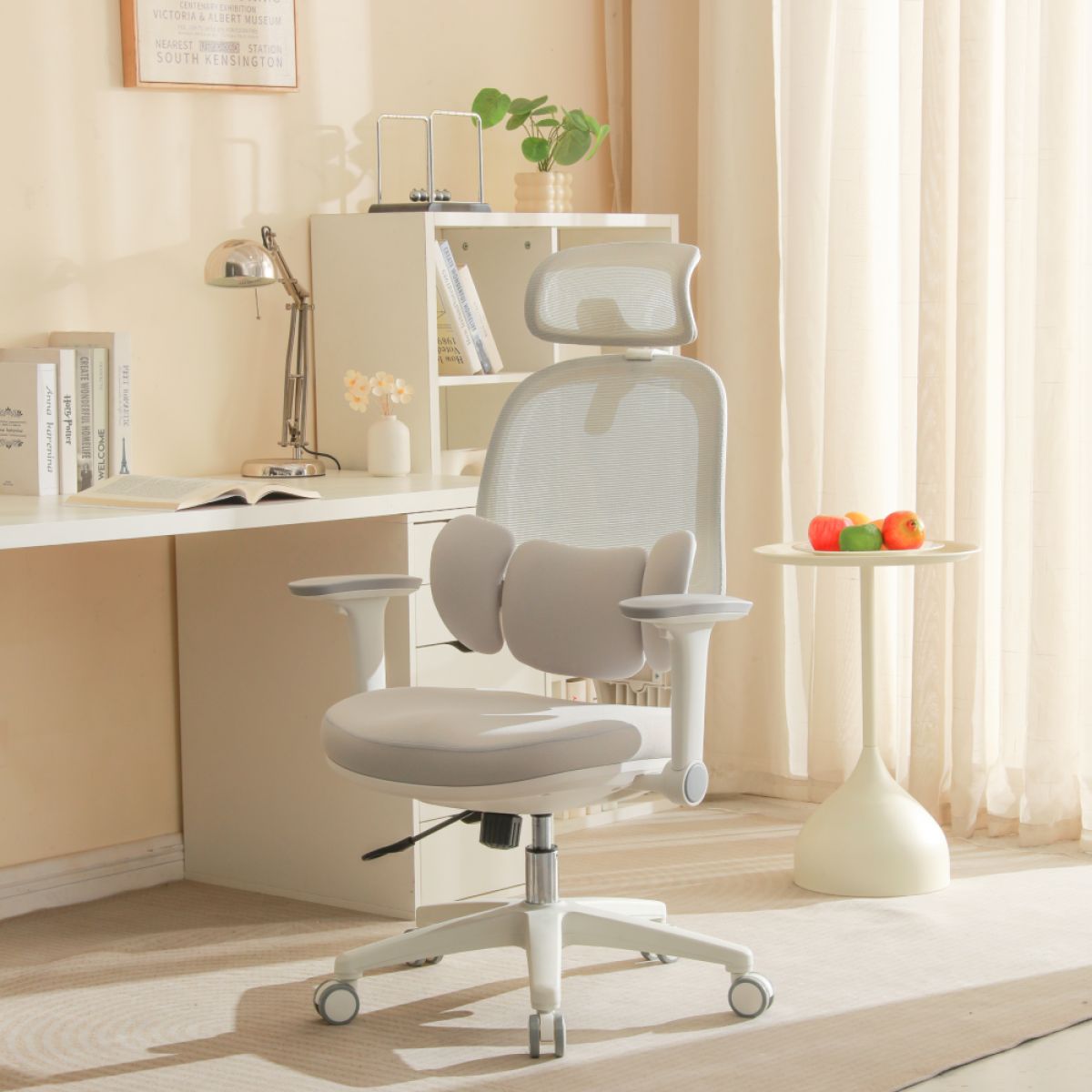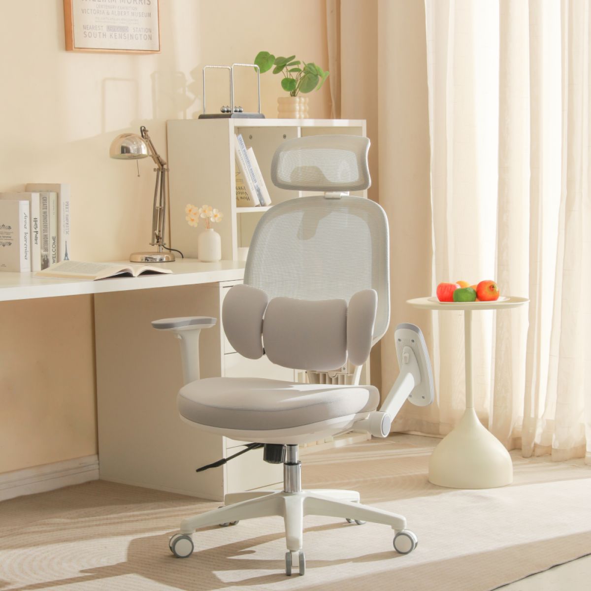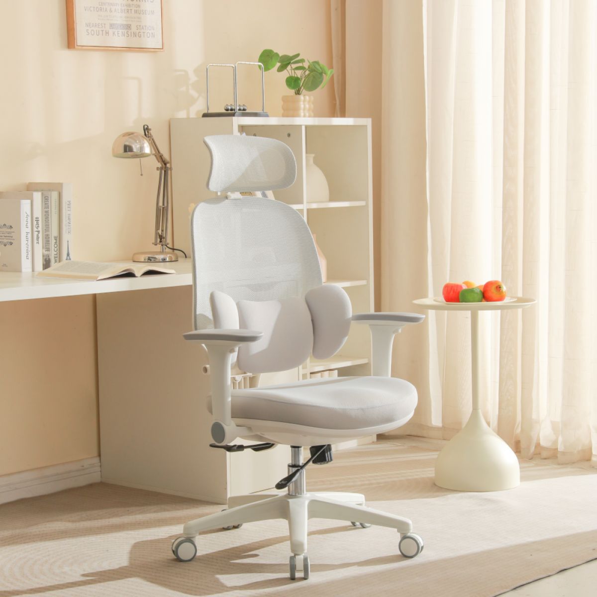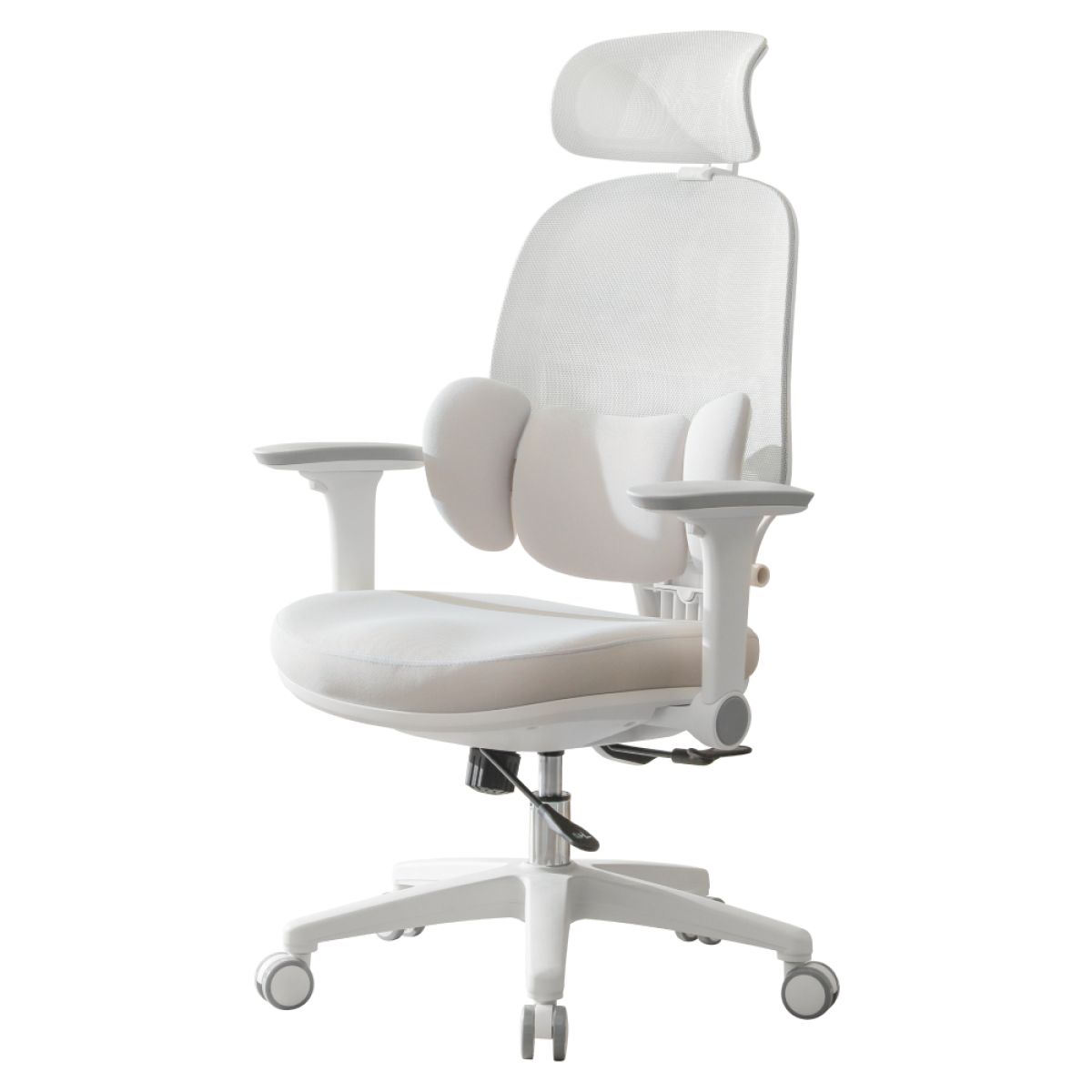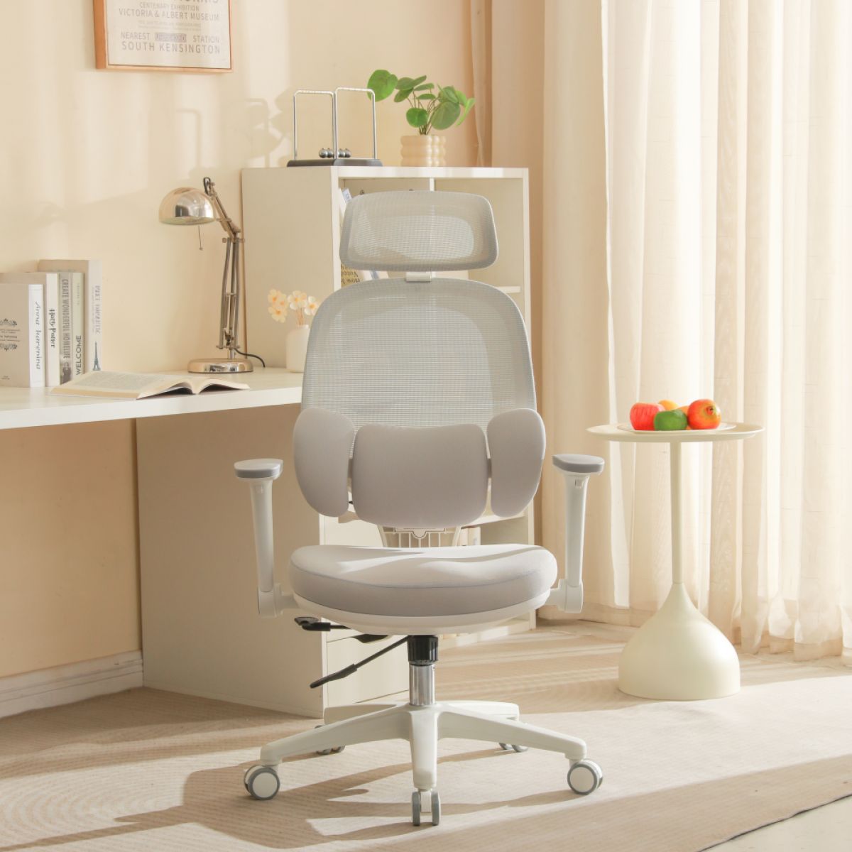 Material: plasă/ţesătură/plastic Rezistenţa plasei conform testului Martindale: 90 000 de cicluri de frecare Rezistenţa ţesăturii conform testului Martindale: 80 000 abraziuni Culoare: gri/albă Dimensiuni (lxAxh): 69x58-62x116-126 cm Înălţimea părţii de şezut: 45-55 cm Adâncimea părţii de şezut: 50 cm Lăţimea părţii de şezut: 50 cm Lăţime spătar: 45 cm Înălţime spătar: 56 cm Portanţă: Scaun rotativ 120 kg Suport lombar reglabil cu blocare Înălţime reglabilă a părţii de şedere Adâncime reglabilă a şezutului Funcţie de balansare Cotiere 4D Cotiere rabatabile Cotiere reglabile pe înălţime Cotiere reglabile pe adâncime Rotirea cotierelor în lateral Înălţime reglabilă a tetierei Unghi reglabil al tetierei şezut confortabil şi moale Roţi universale Roţile sunt potrivite pentru podele moi şi dure Practic Caracteristici ergonomice Livrat dezasamblat