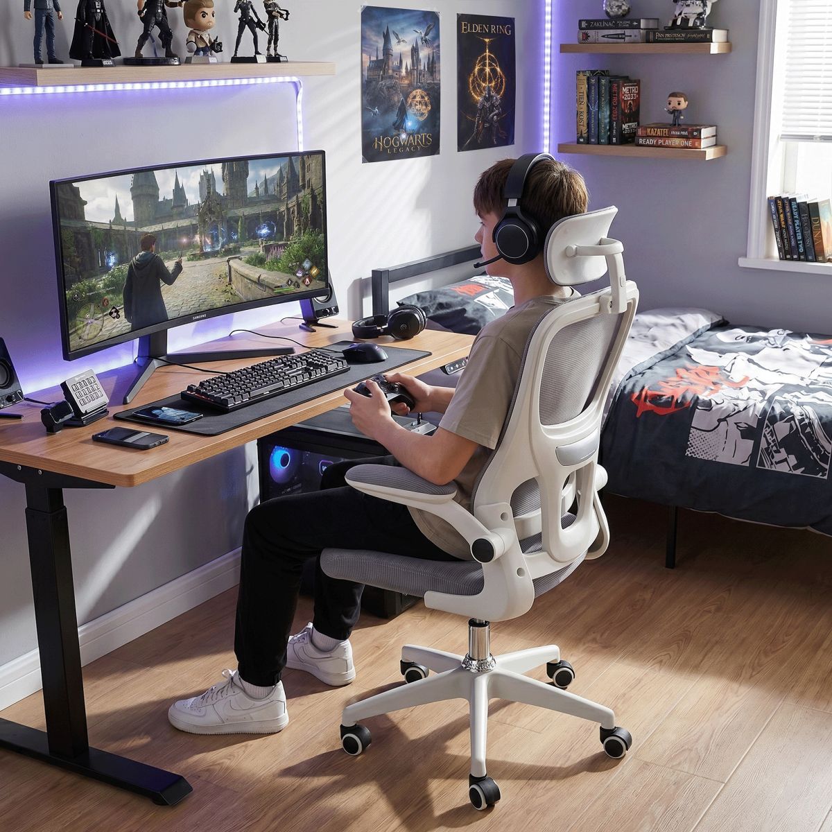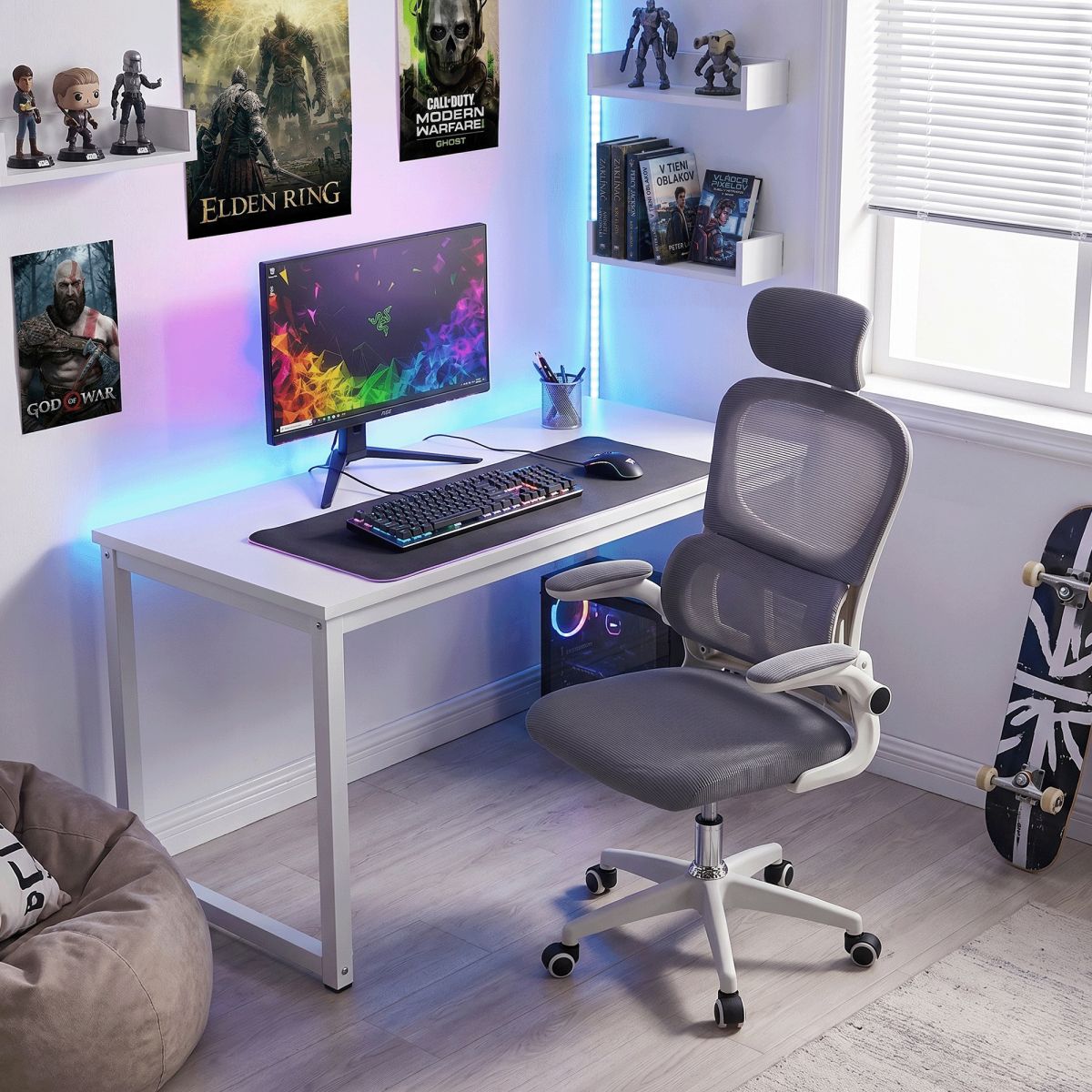 Fotoliu de birou, gri/alb, FERIS