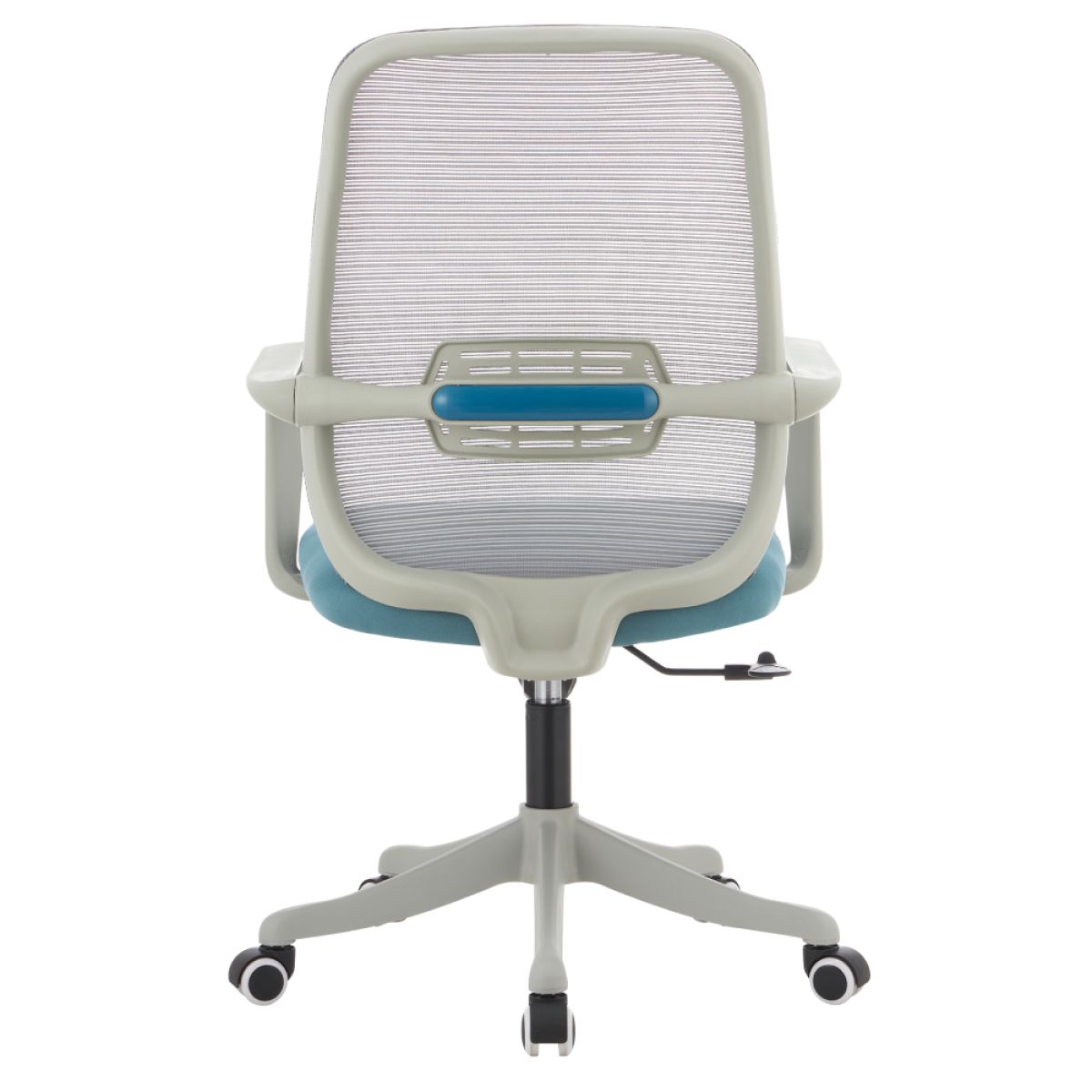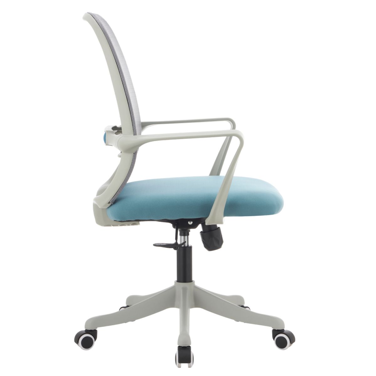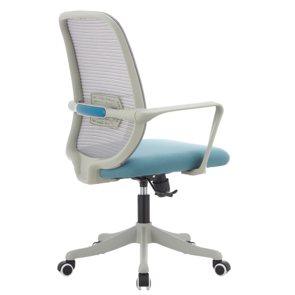 Material: plasă/ţesătură/plastic/ Culoare: gri/albastru Dimensiuni (lxAxh): 62,5x62x100,5-109 cm Înălţimea părţii de şezut: 47-56 cm Lăţimea părţii de şezut: 51 cm Adâncimea părţii de şezut: 52 cm Înălţime spătar: 55 cm Lăţime spătar: 43 cm Portanţă: 100 kg Greutate: 8,75 kg Înălţime reglabilă a scaunului Cotiere tapiţate Mecanism pivotant de balansare Roţi universale Potrivit atât pentru podele dure, cât şi moi Bază cu cinci braţe Detaliu albastru pe spate Livrat demontat