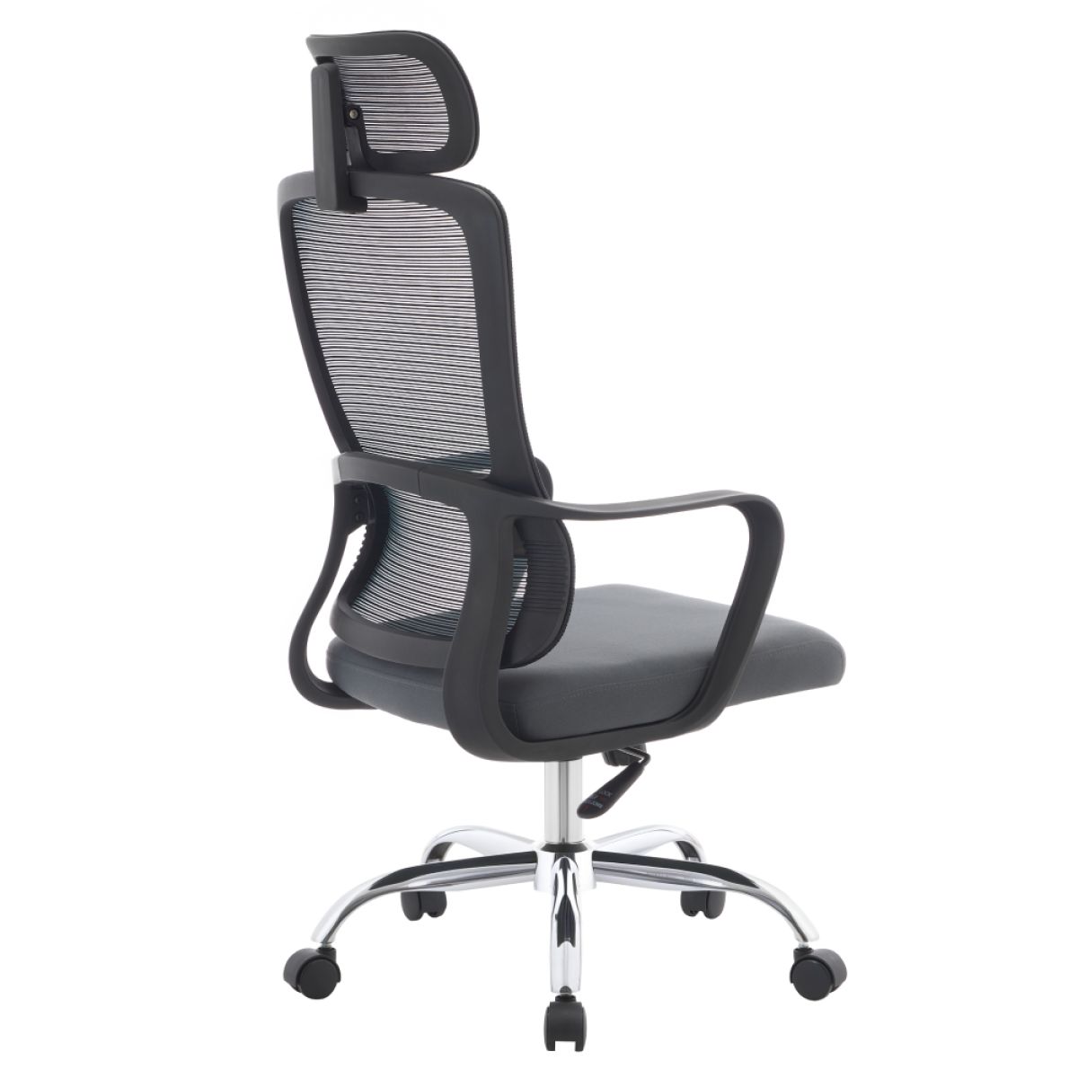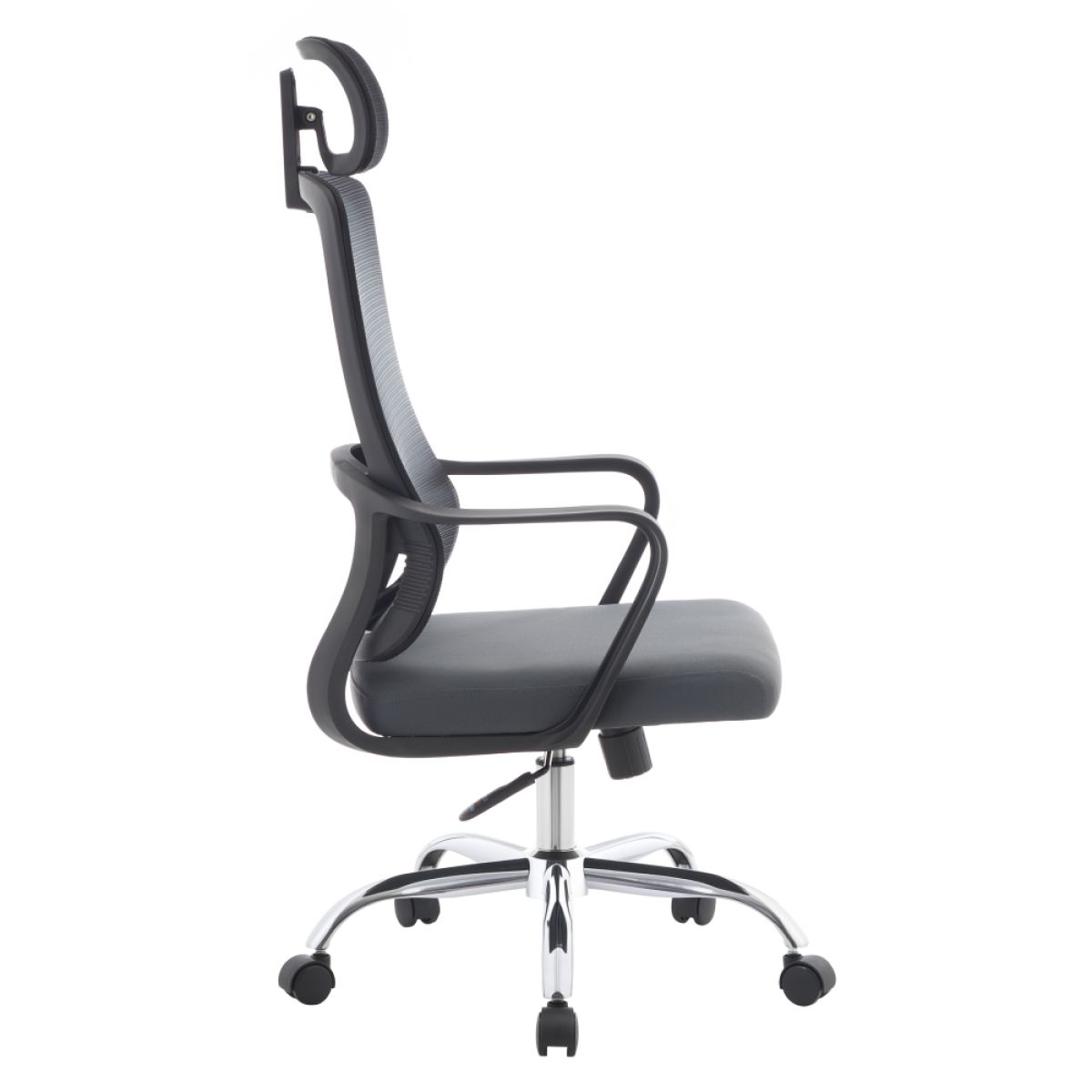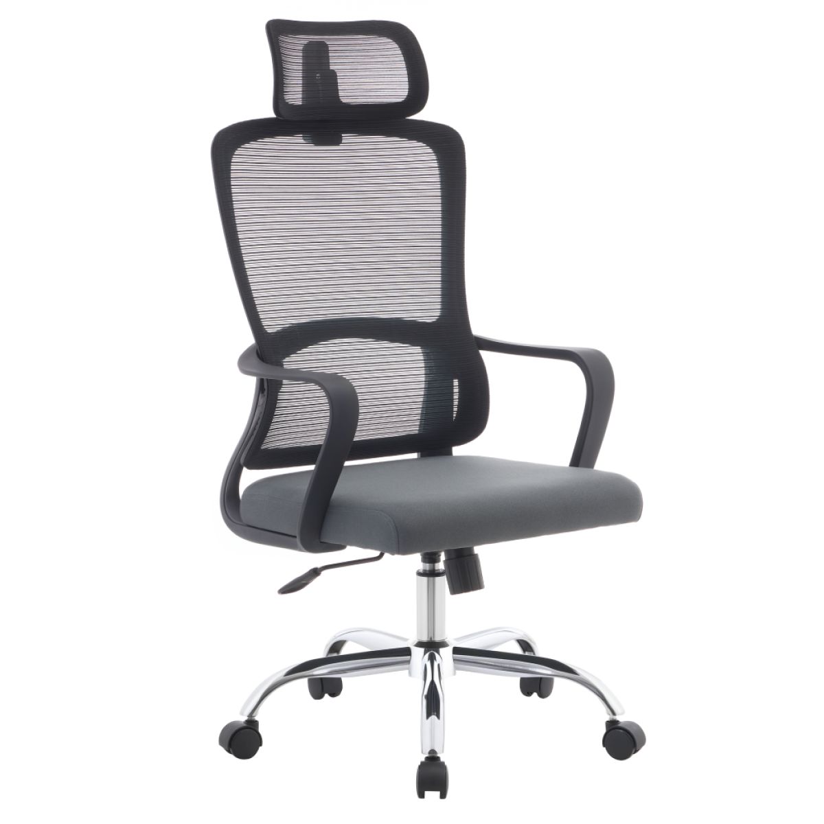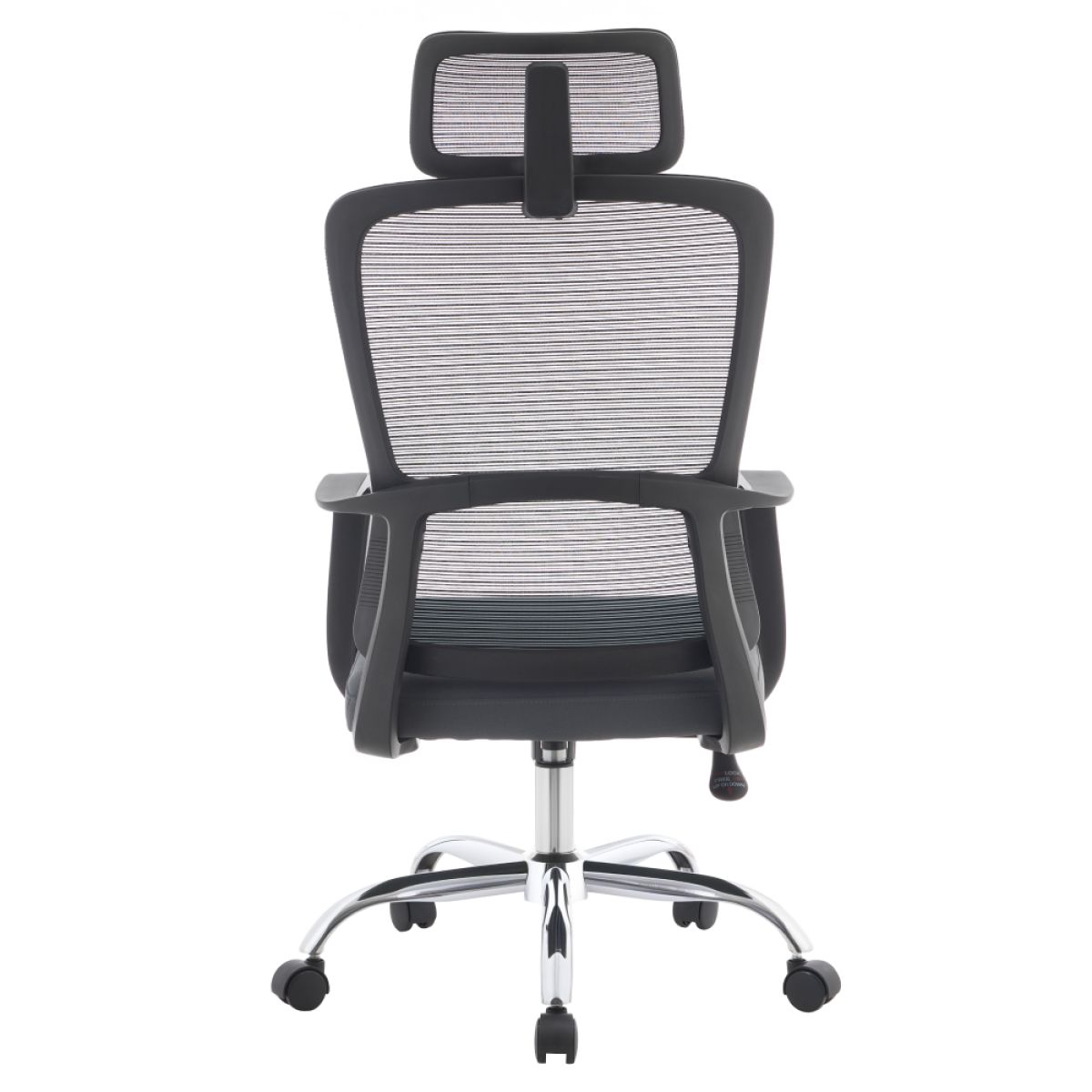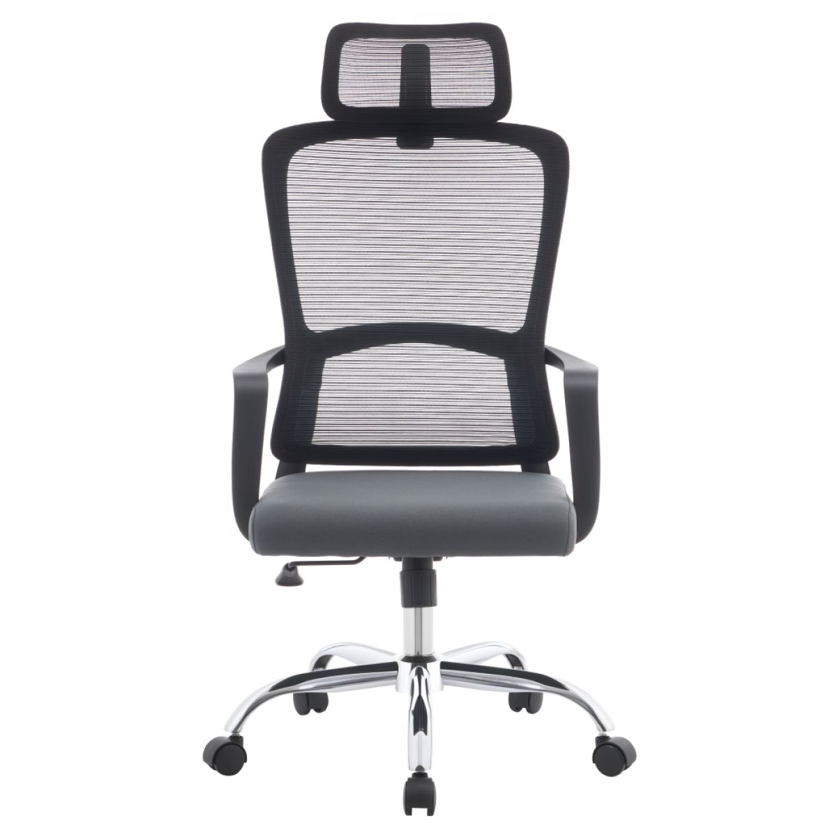 Material: plasă/ţesătură/plastic/metal Rezistenţa plasei conform testului Martindale: 90 000 de cicluri de frecare Rezistenţa ţesăturii la frecare conform testului Martindale: 80 000 de cicluri de frecare Culoare: neagră/gri/crom Dimensiuni (lxAxh): 57x57x116-126 cm Înălţimea părţii de şezut: 43-53 cm Adâncimea părţii de şezut: 51 cm Lăţimea părţii de şezut: 47 cm Lăţime spătar: 50 cm Înălţime spătar: 73 cm Portanţă: 150 kg Scaun pivotant Mecanism de legănare Înălţime reglabilă a scaunului Cu cotiere Cu tetieră Roţi universale Potrivit atât pentru podele moi, cât şi pentru podele dure Livrat dezasamblat