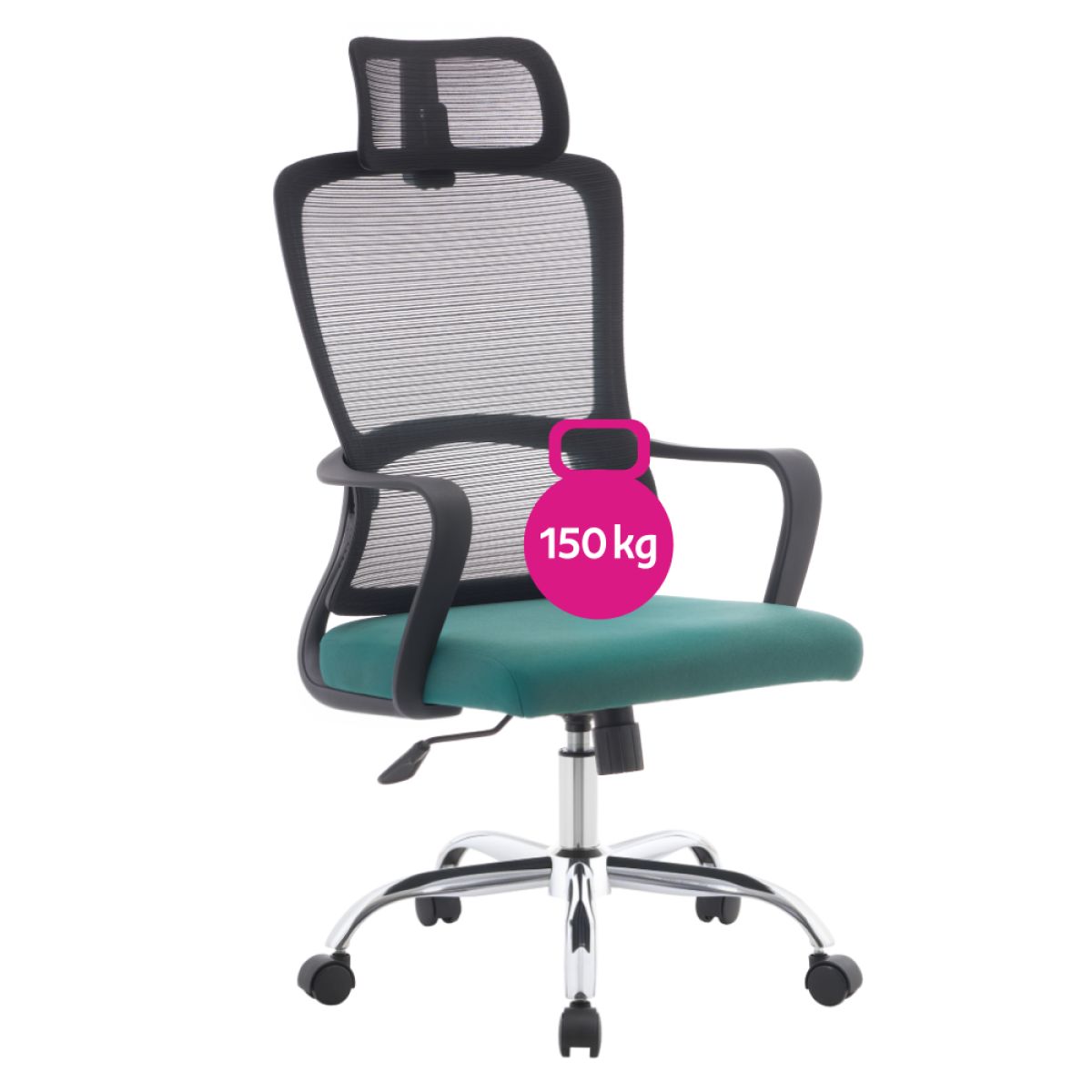 Fotoliu de birou, negru/verde/crom, portanţă 150 kg, RANDY