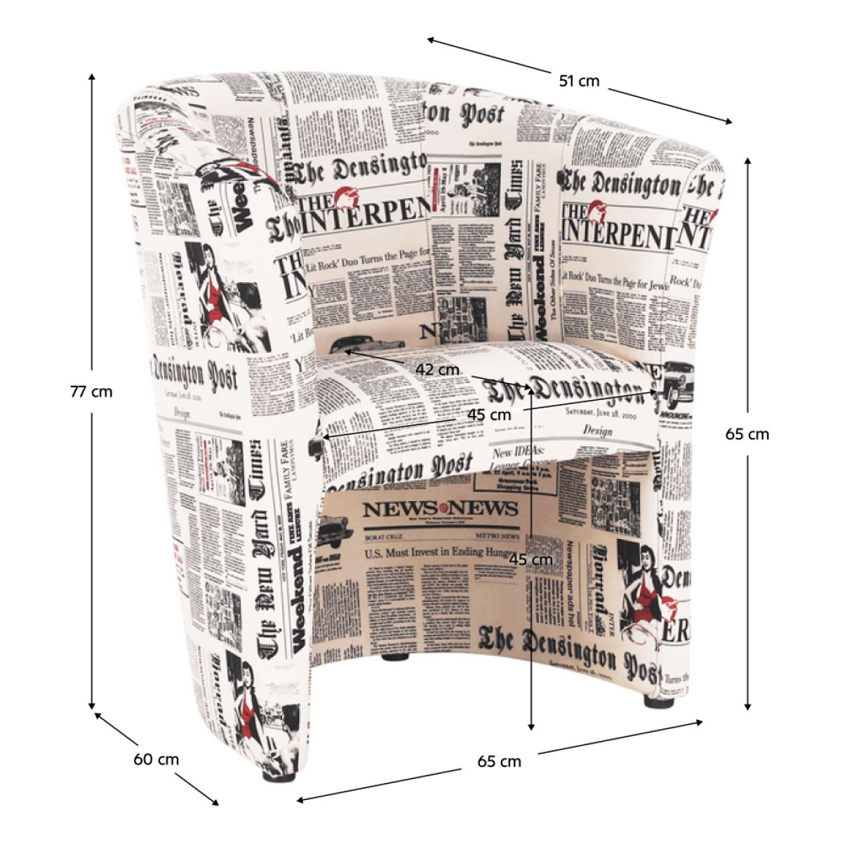 Fotoliu de club, alb/ motiv ziare, CUBA
