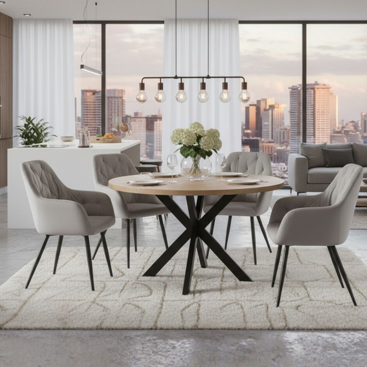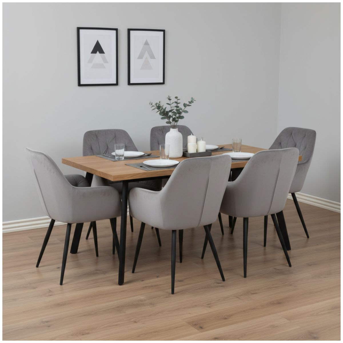 Material: ţesătură Velvet/metal Rezistenţa ţesăturii conform testului Martindale: 45.000 de cicluri de frecare Culoare: gri/negru Dimensiuni (Lxlxh): 54x62x87 cm Înălţime scaun: 44 cm Adâncime scaun: 44 cm Lăţime scaun: 40 cm Lăţime spătar: 52 cm Înălţime spătar: 43 cm Portanţă: 100 kg De design Cusut decorativ Cu partea de şedere moale Livrată dezasamblată
