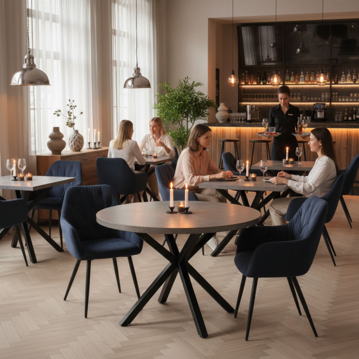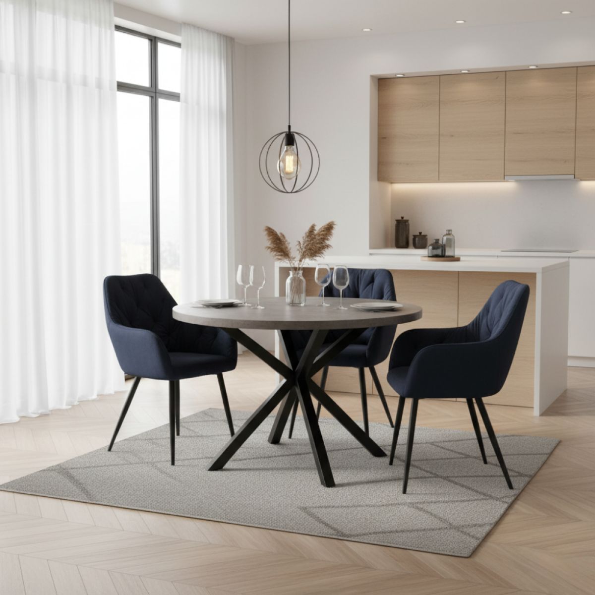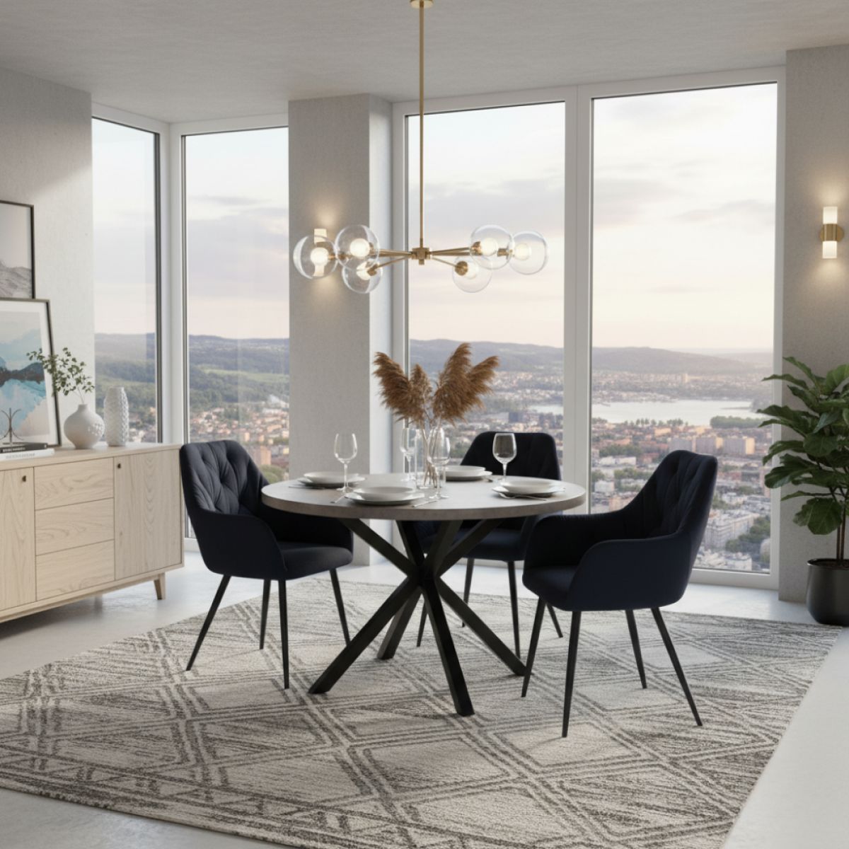 Material: ţesătură Velvet/metal Rezistenţa ţesăturii conform testului Martindale: 45.000 de cicluri de frecare Culoare: negru/negru Dimensiuni (Lxlxh): 54x62x87 cm Înălţime scaun: 44 cm Adâncime scaun: 44 cm Lăţime scaun: 40 cm Lăţime spătar: 52 cm Înălţime spătar: 43 cm Portanţă: 100 kg De design Cusut decorativ Cu partea de şedere moale Livrată dezasamblată