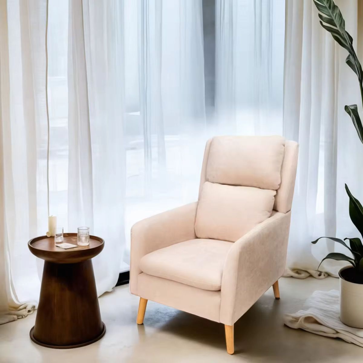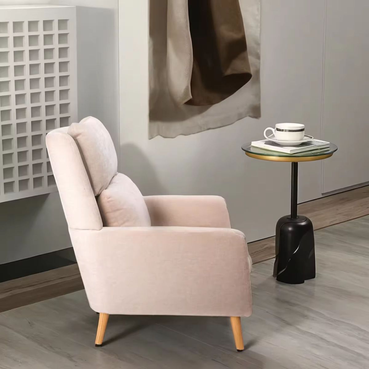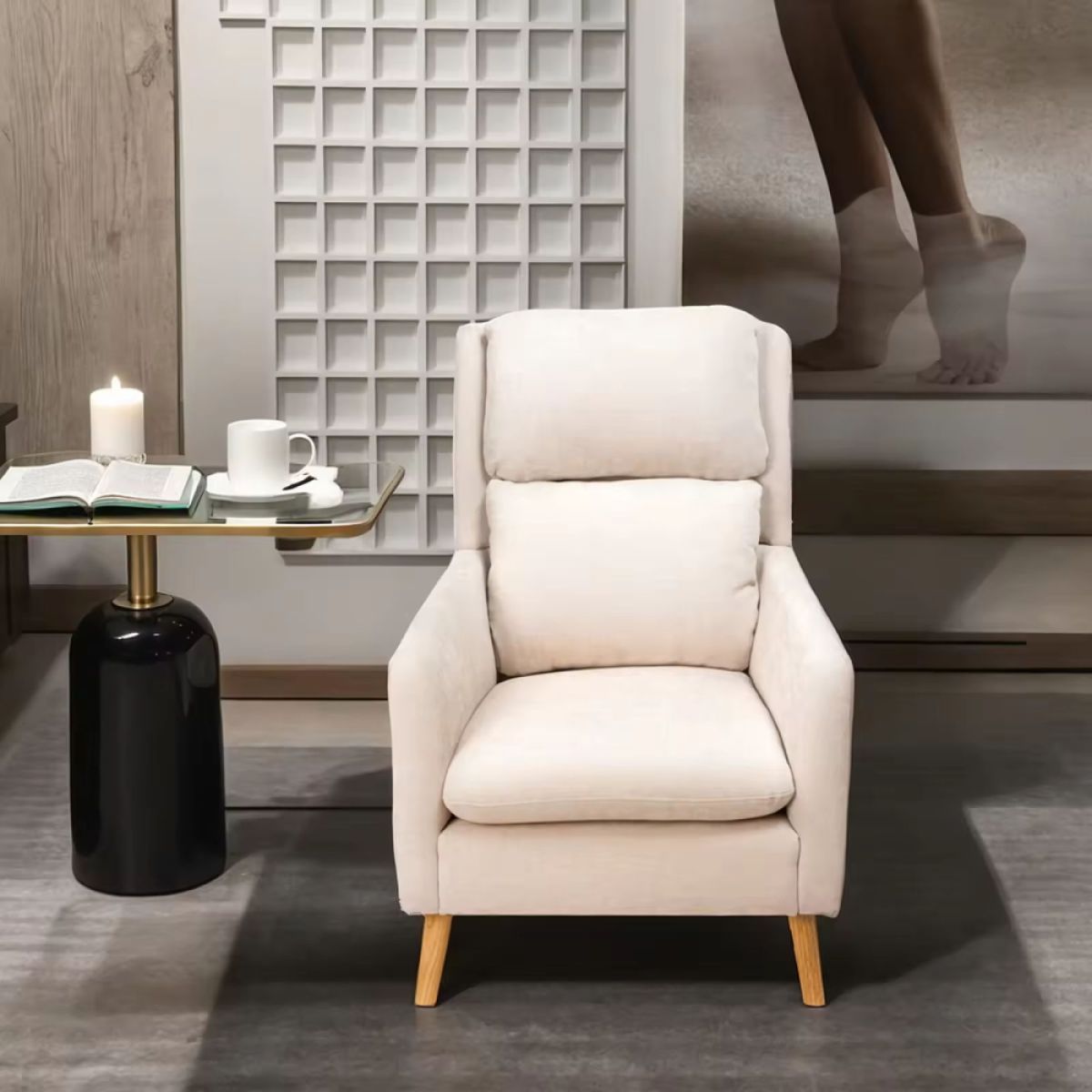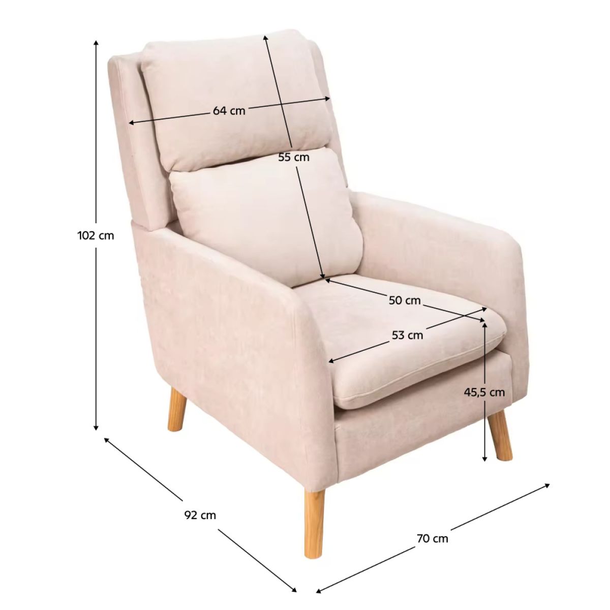 Material: ţesătură/lemn Rezistenţa ţesăturii la frecare conform testului Martindale: 75 000 de cicluri de frecare Culoare: bej Dimensiuni (lxAxh): 70x92x102 cm Înălţimea părţii de şezut: 45,5 Adâncimea părţii de şezut: 50 cm Lăţimea părţii de şezut: 53 cm Înălţimea spătarului: 55 cm Lăţime spătar: 64 cm Portanţa: 100 kg Umplutură: Densitatea standard a spumei: 24 kg/m3 Relaxant De design Complet tapiţat Livrat dezasamblat