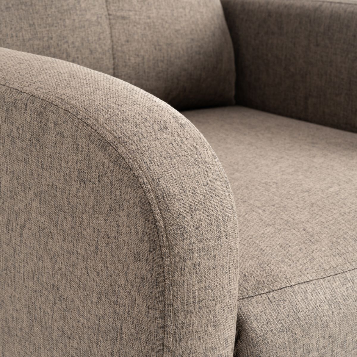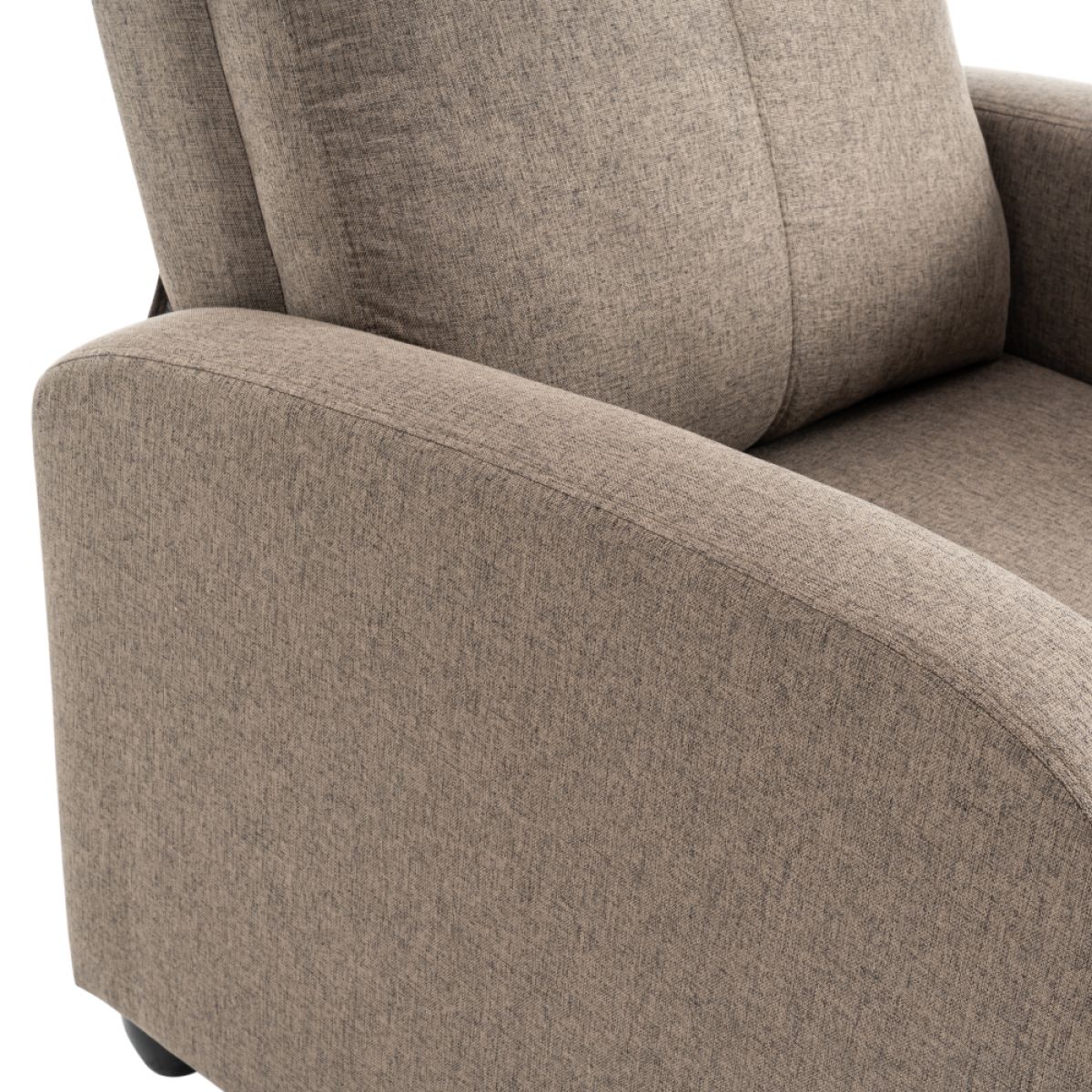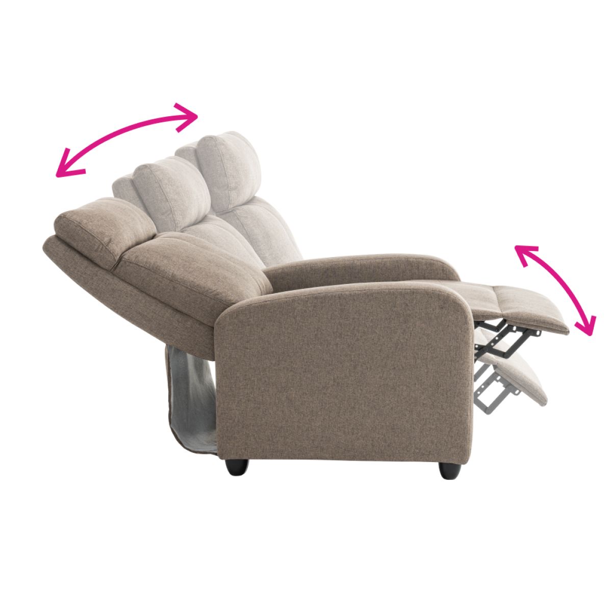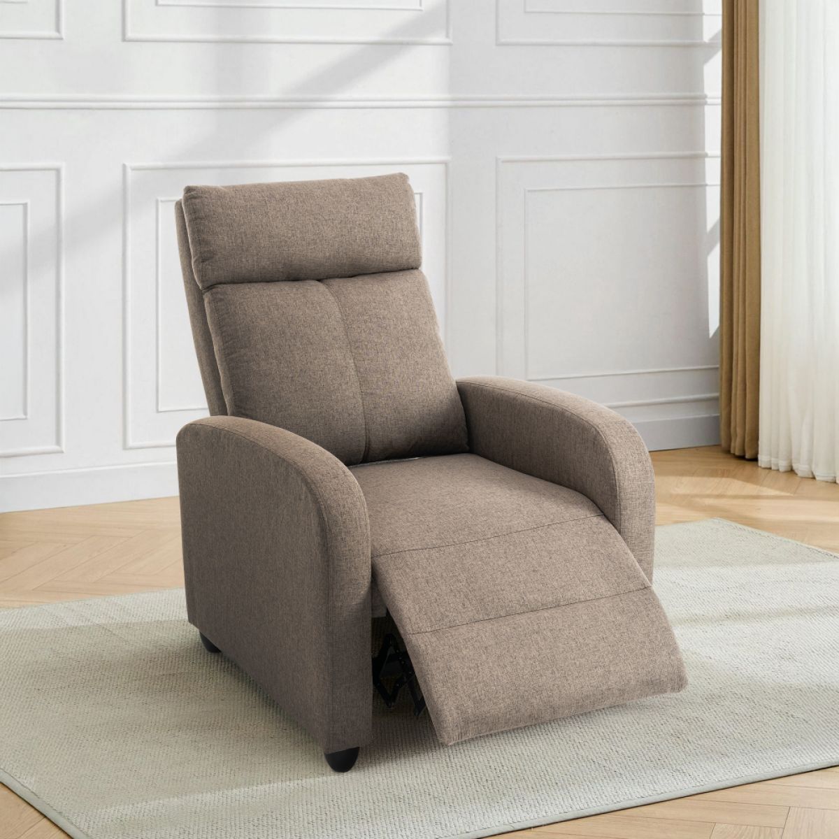Material: ţesătură / plastic Culoare: maro Dimensiunile fotoliului (LxAxÎ): 69x73x99 cm Înălţime scaun: 45 cm Adâncime scaun: 50,5 cm Înălţime spătar: 63 cm Înălţime cotieră: 57 cm Lăţime cotieră: 9 cm Înălţime picioare: 6 cm Capacitate de încărcare: 120 kg Cu funcţie de ajustare Reglabil mecanic Relaxant Picioare din plastic Livrat dezasamblat