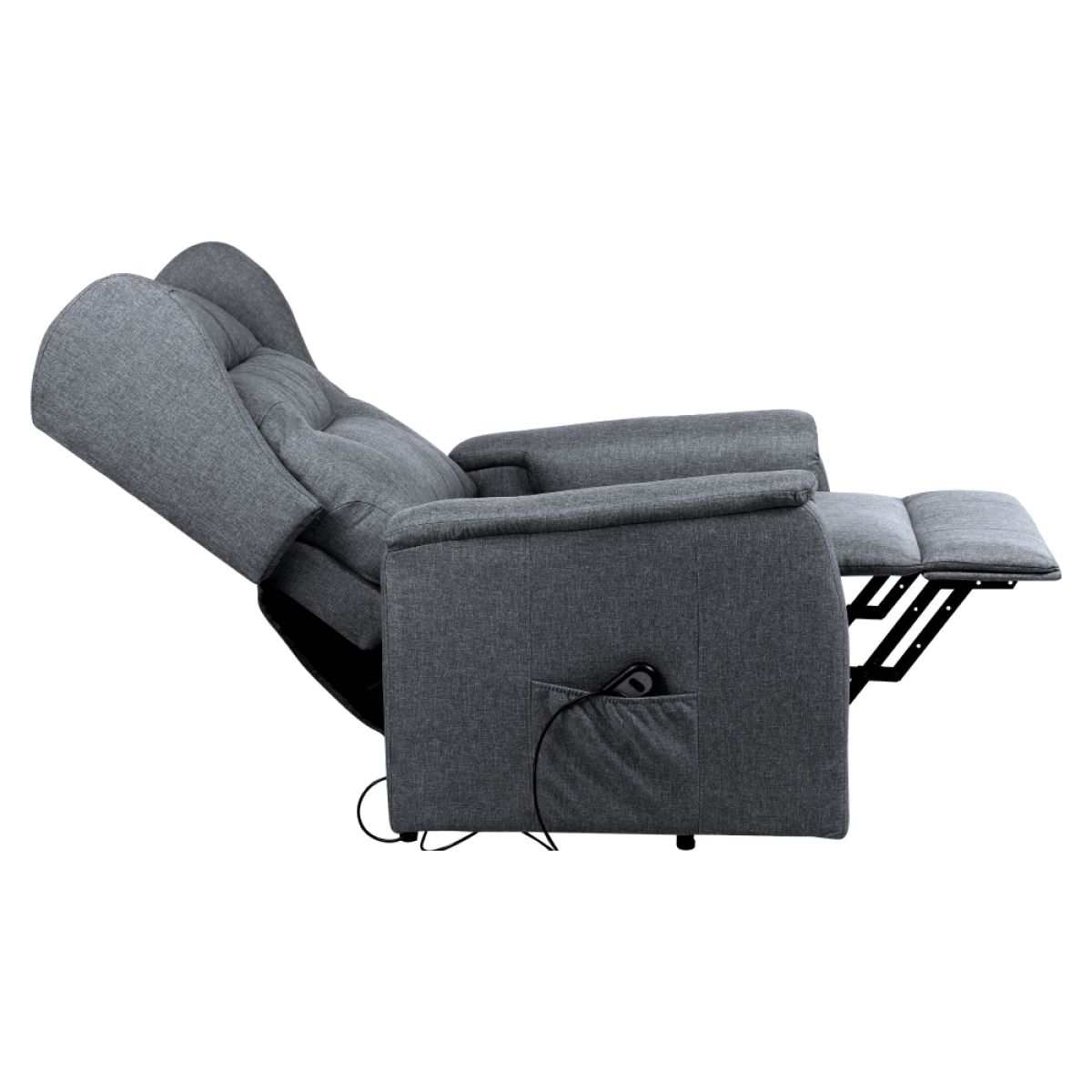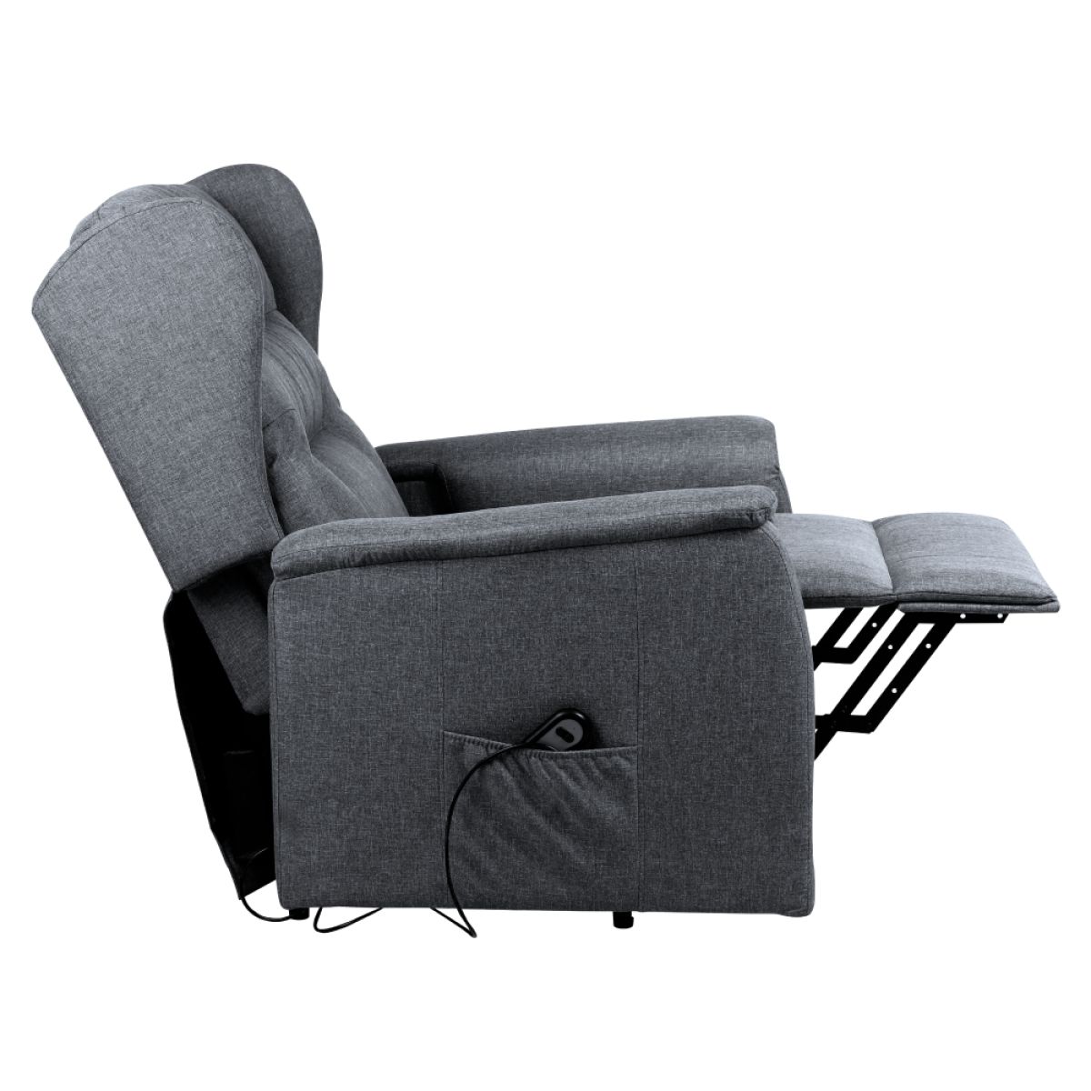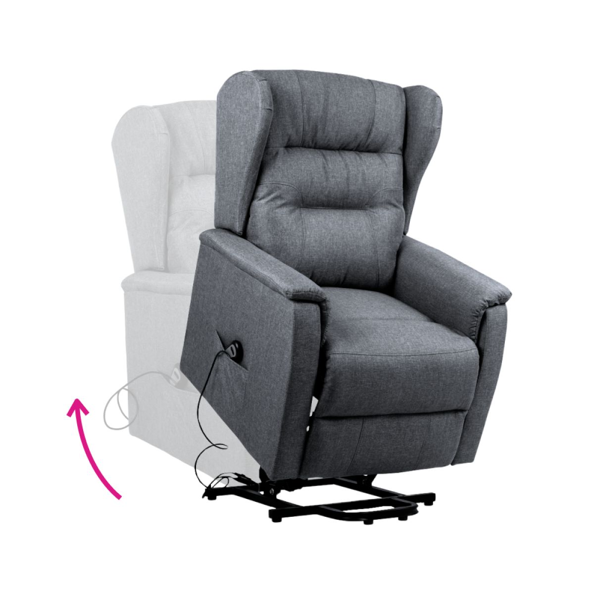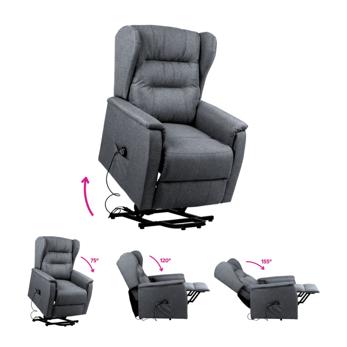 Material:oţel/ţesătură Rezistenţa ţesăturii la frecare conform testului Martindale: 50.000 Umplutură: spumă de înaltă densitate 240D Culoare: gri deschis Dimensiuni (Lxlxh): 78x90-162x86-108 cm Înălţimea scaunului: 48 cm Adâncimea părţii de şezut: 50 cm Lăţime părţii de şezut: 46 cm Lăţime spătar: 70 cm Înălţime spătar: 68 cm Portanţă: 150 kg Poziţionare Relaxare Mecanism pentru înclinarea bazei şi a spatelui Livrat cu telecomandă Lungime cablu de alimentare: 2,5 cm Tensiune: 100-240V Se livrează dezasamblat