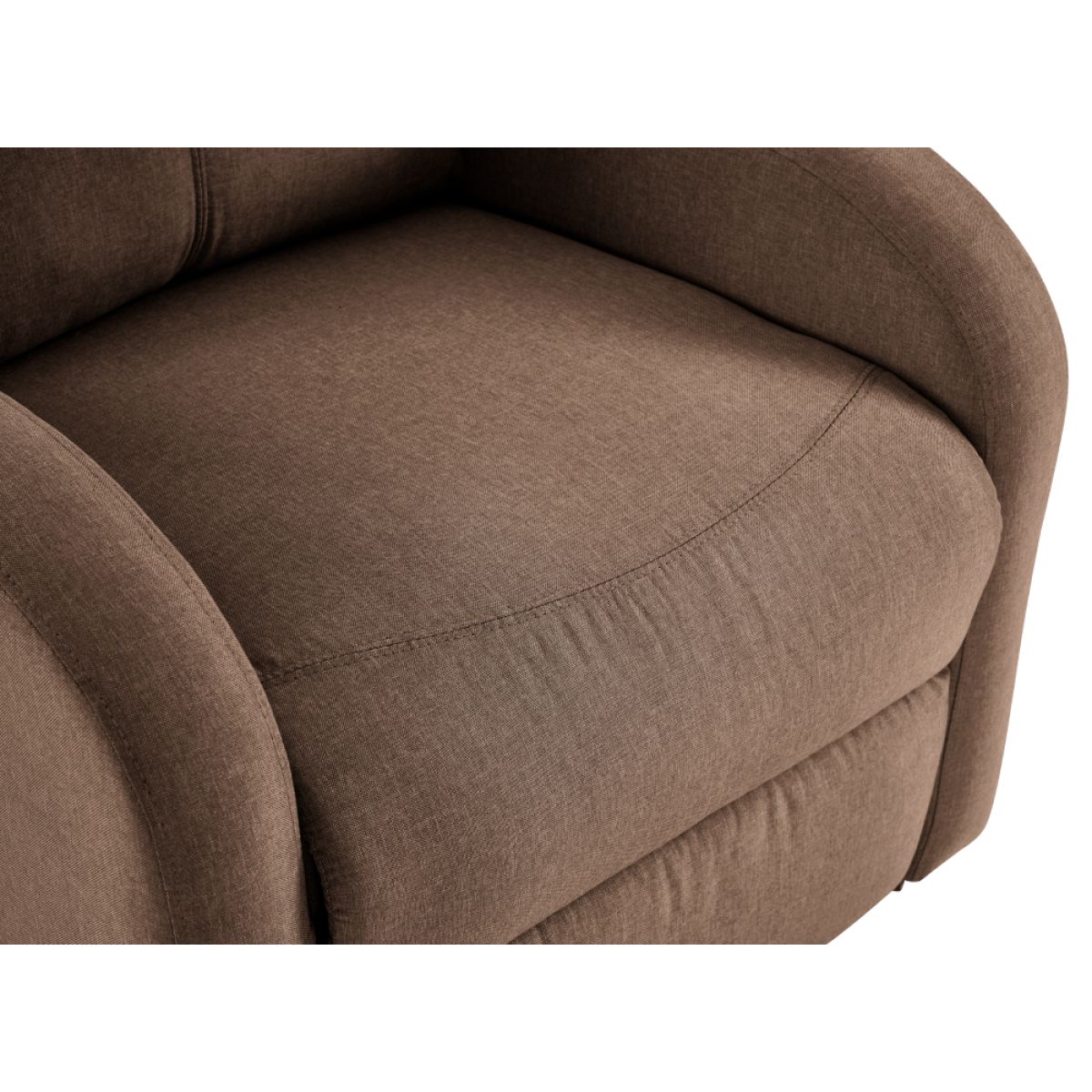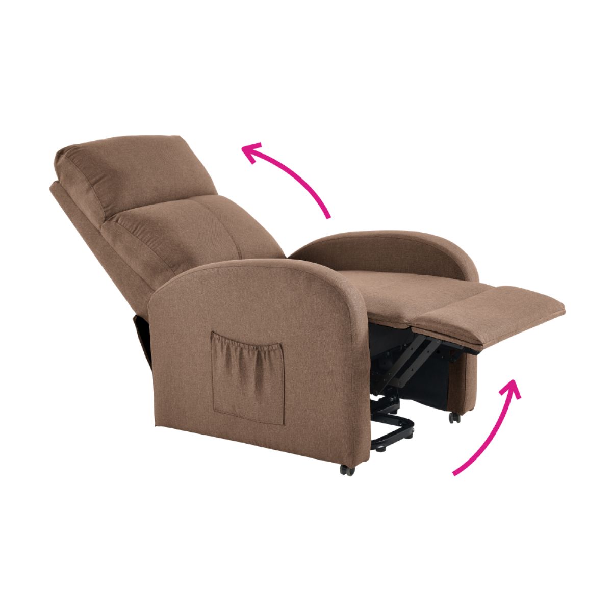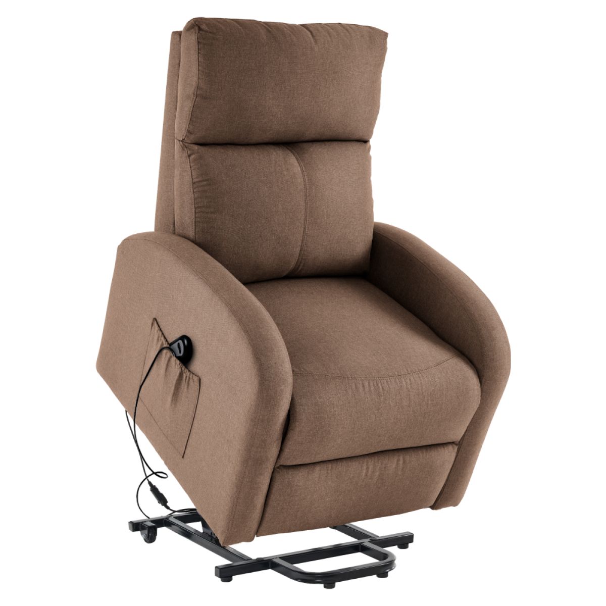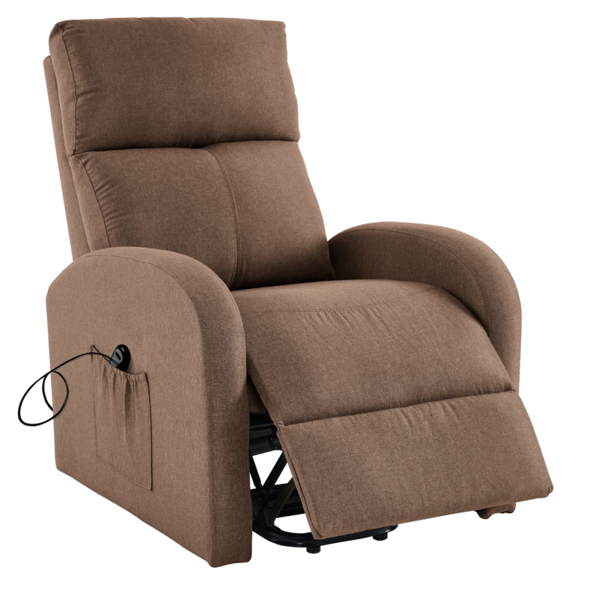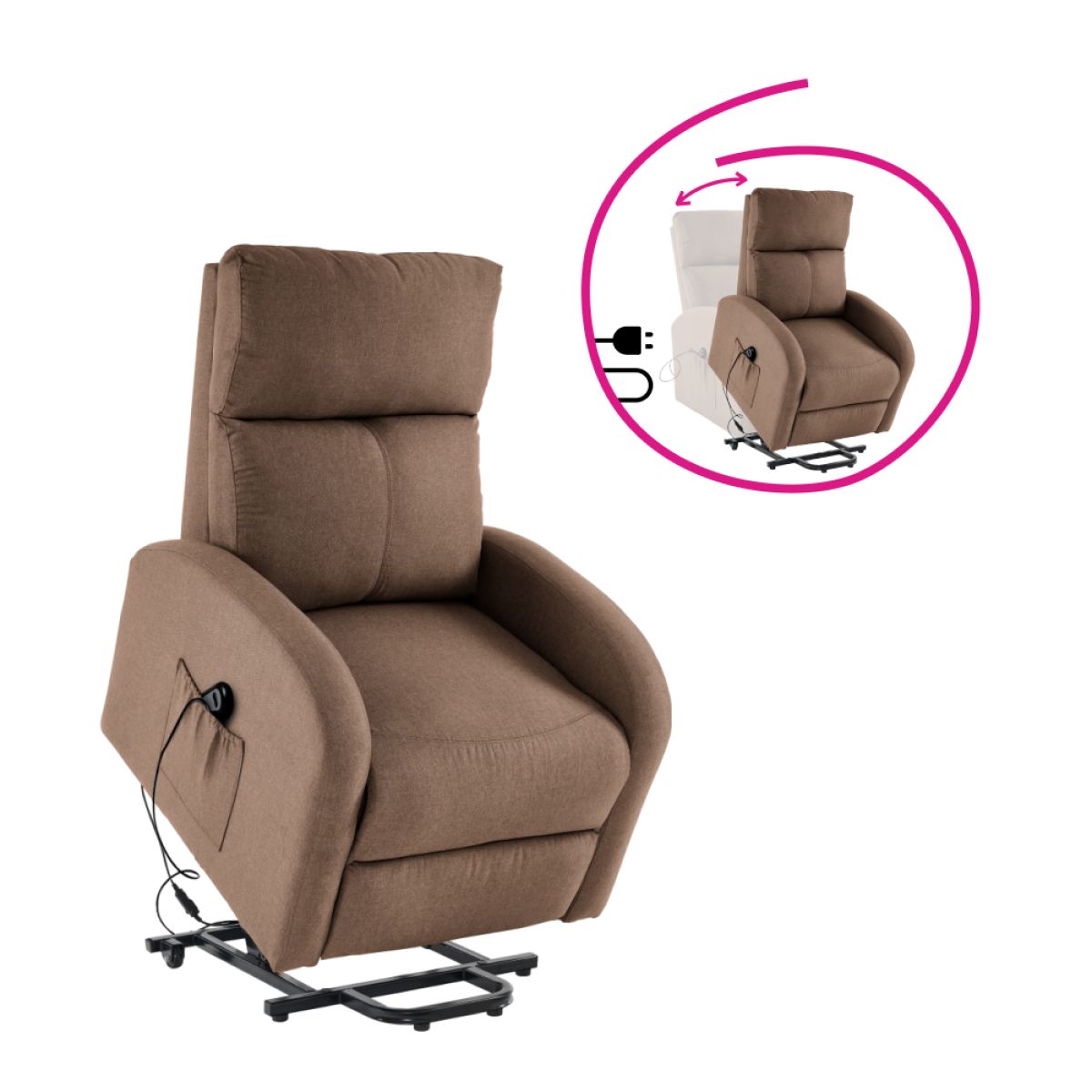 Material:oţel/ţesătură Rezistenţa ţesăturii la frecare conform testului Martindale: 50.000 cicluri de frecare Umplutură: spumă de înaltă densitate 240D Culoare: maro deschis Dimensiuni (Lxlxh): 72x90-161x86-105 cm Înălţimea scaunului: 49 cm Adâncime scaun: 52 cm Lăţimea părţii de şezut: 53 cm Lăţime spătar: 55 cm Înălţime spătar: 65 cm Portanţă: 150 kg Poziţionare Relaxare Mecanism pentru înclinarea bazei şi a spatelui Livrat cu telecomandă Lungime cablu de alimentare: 2,5 cm Tensiune: 100-240V Se livrează dezasamblat