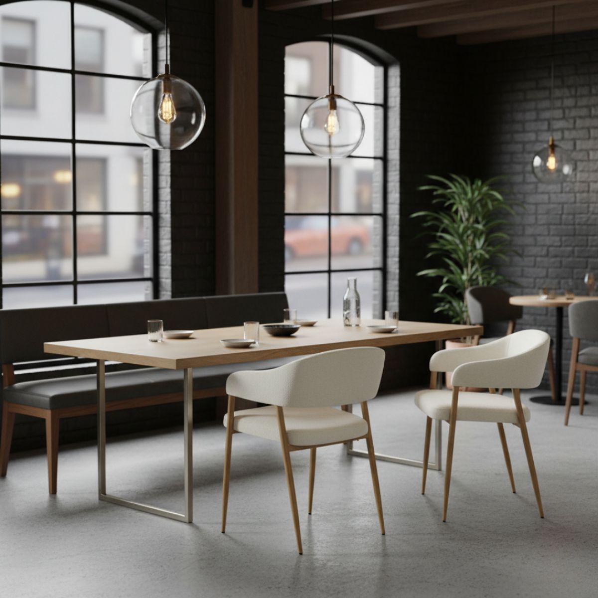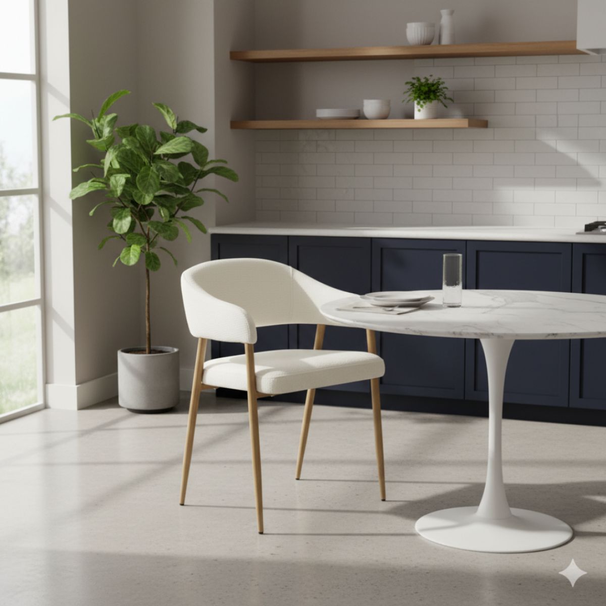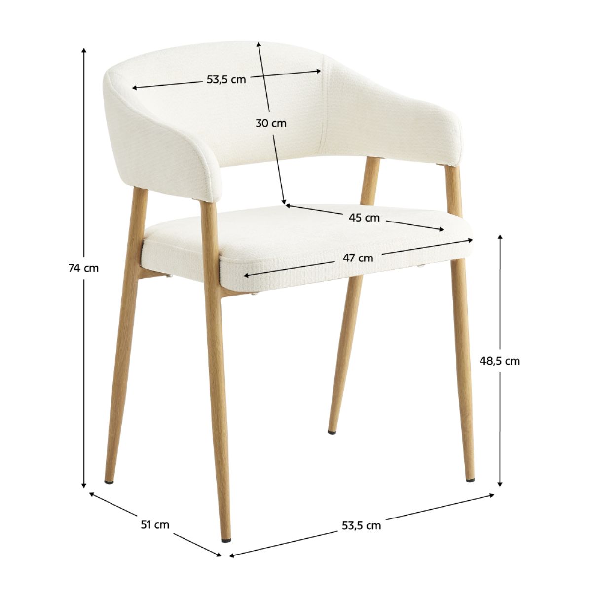 Material: ţesătură/metal Rezistenţa ţesăturii la frecare conform testului Martindale: 80 000 de cicluri de frecare Culoare: crem/fag Dimensiuni (lxAxh): 53,5x51x74 cm Înălţimea părţii de şezut: 48,5 cm Adâncimea părţii de şezut: 45 cm Lăţimea părţii de şezut: 47 cm Lăţime spătar: 53,5 cm Înălţime spătar: 30 cm Portanţă: 100 kg Construcţie metalică De design Livrat dezasamblat