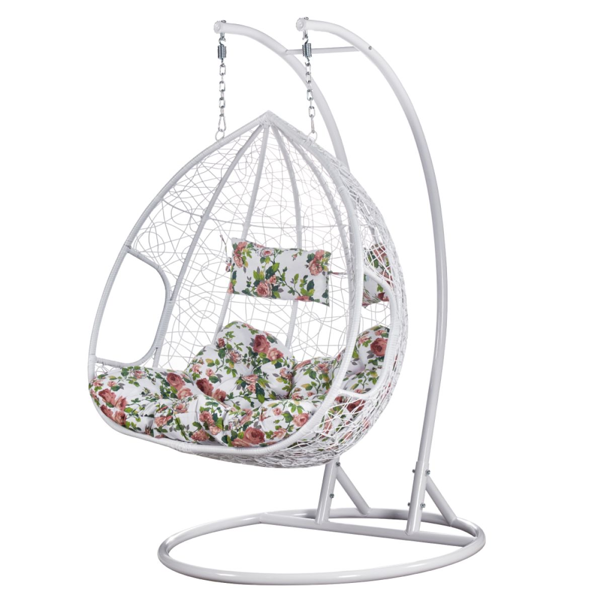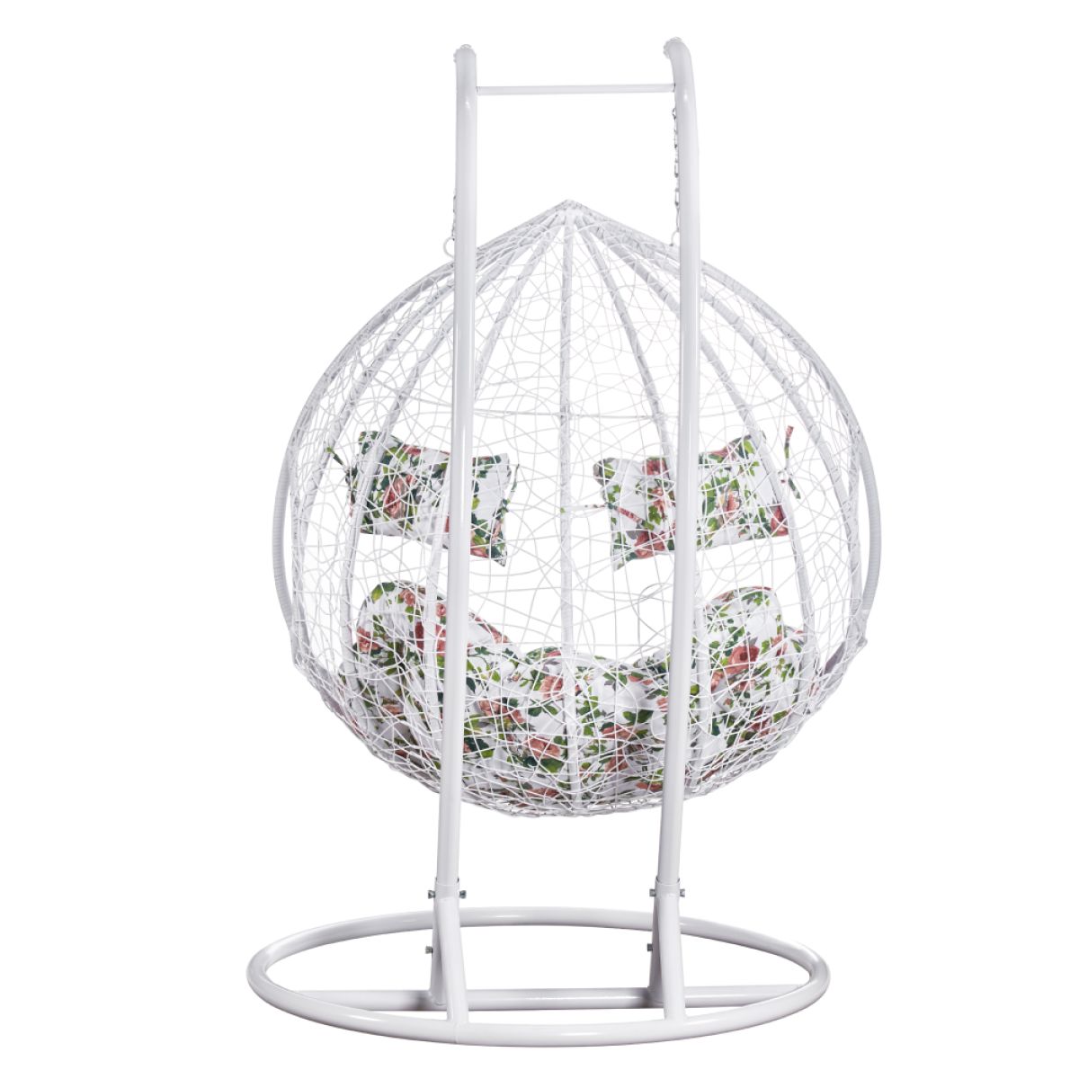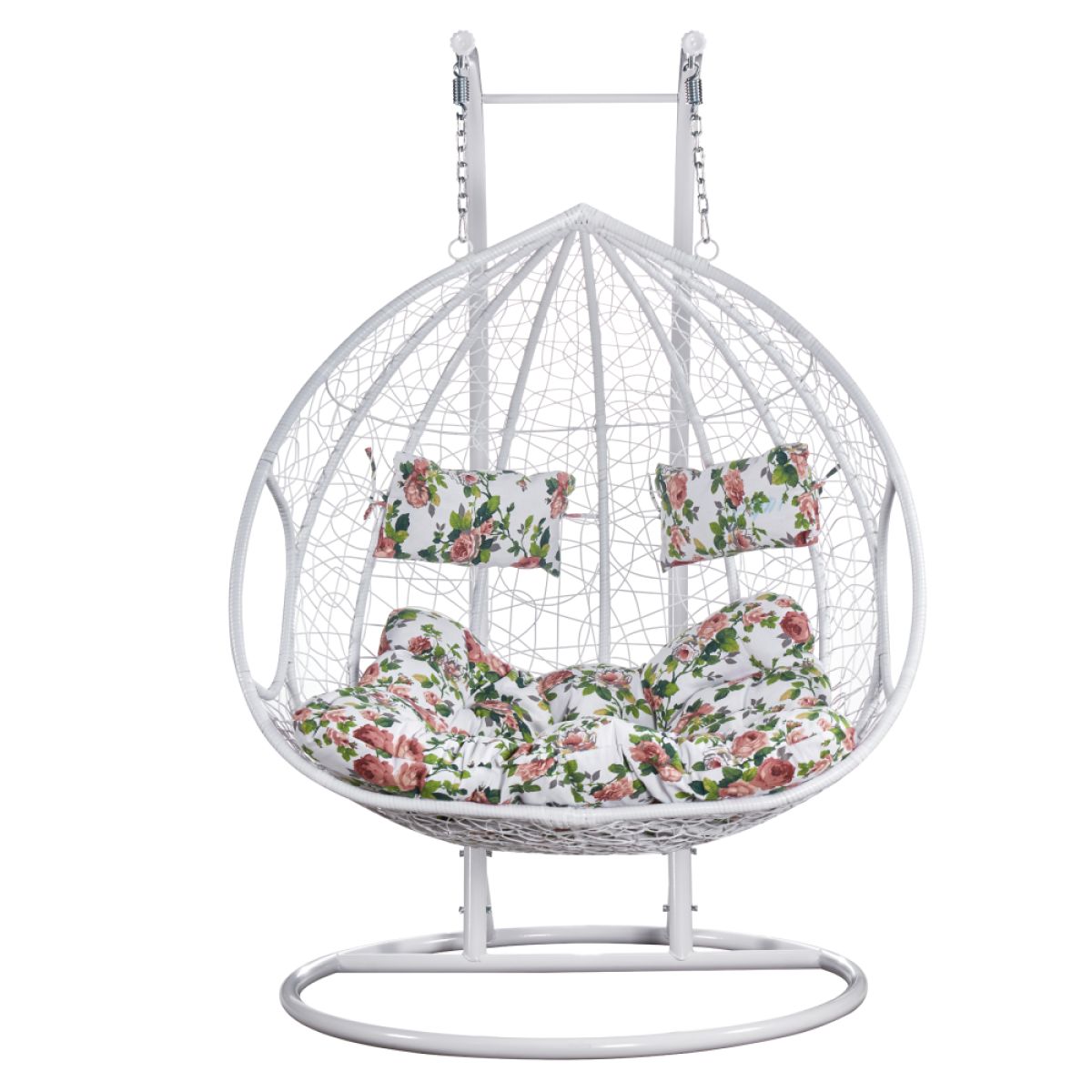 Fotoliu dublu suspendat, alb/model floral, DELIA