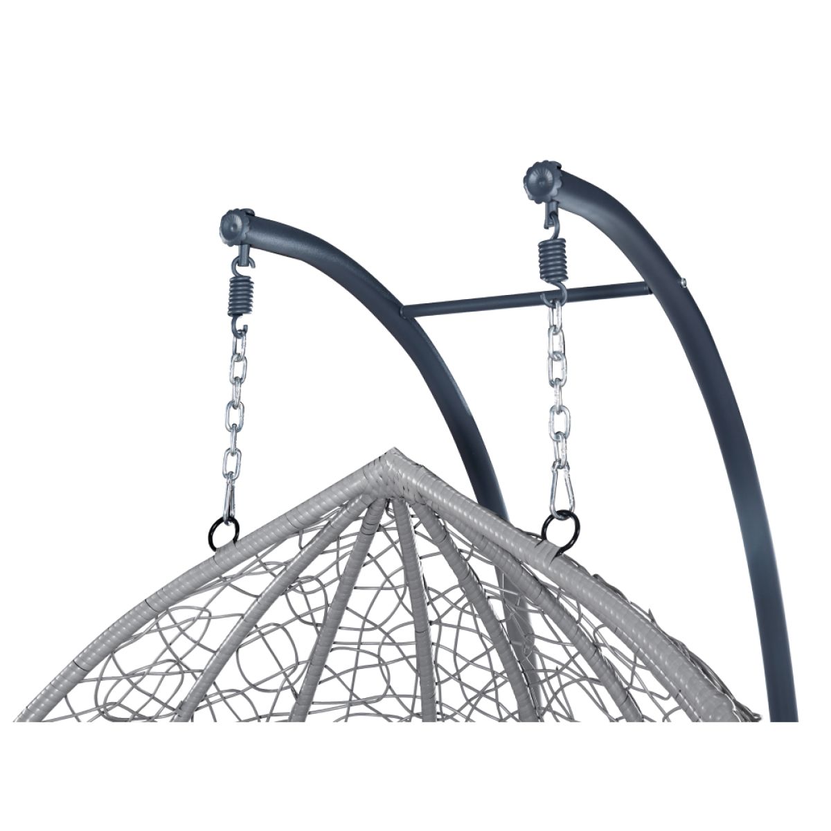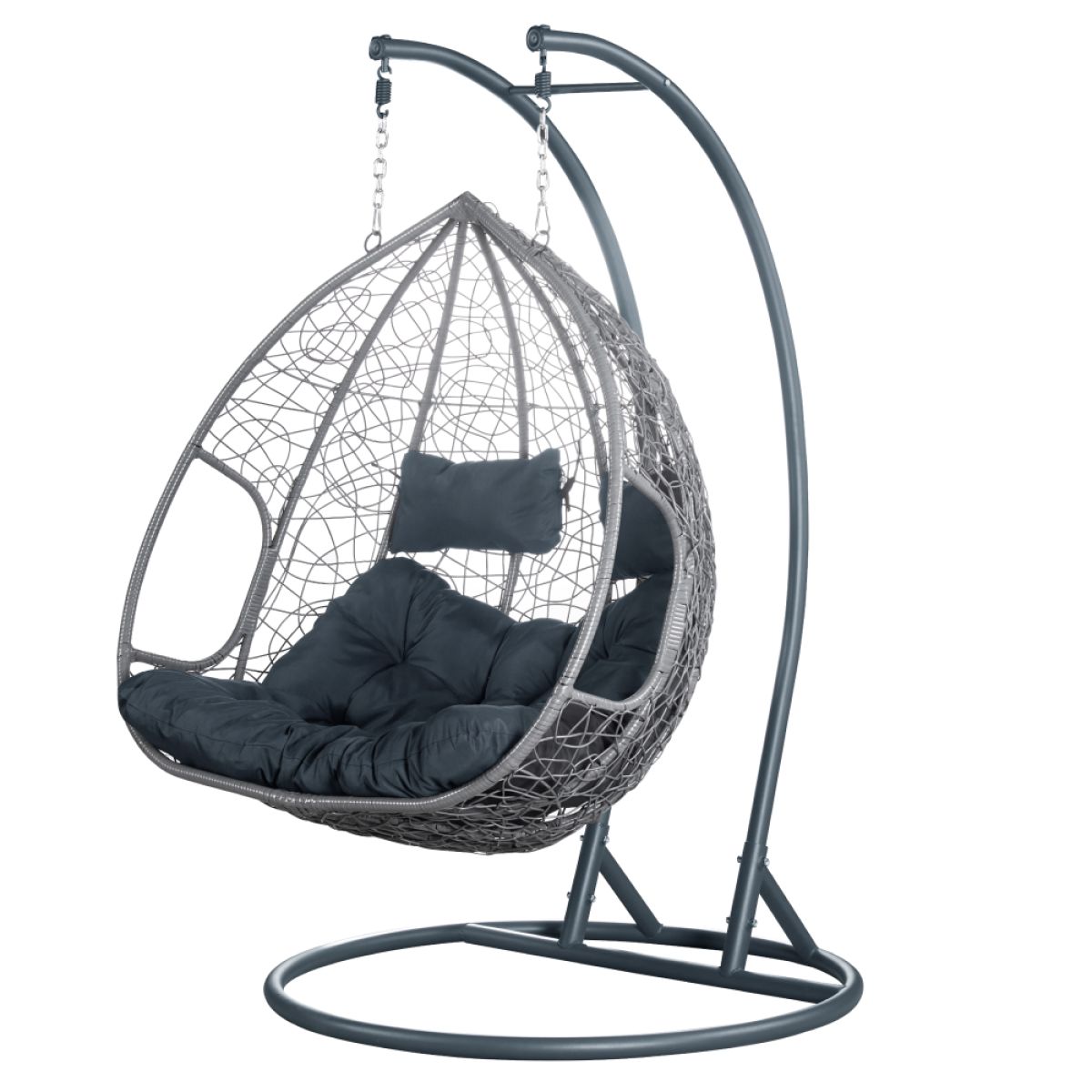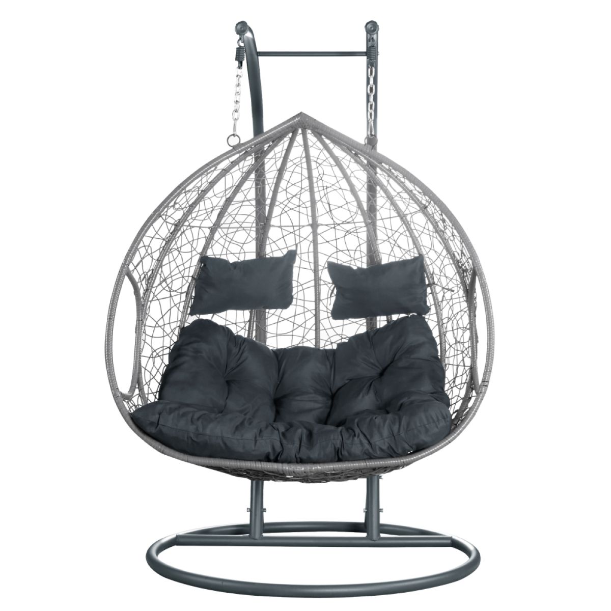 Material: oţel/ratan tehnic/ţesătură Rezistenţa ţesăturii la frecare conform testului Martindale: 95.000 de cicluri de frecare Culoare: gri Dimensiuni (Lxlxh): 132x118x195 cm Dimensiuni fotoliu (Lxlxh): 132x70x123 cm Portanţă: 180 cm Înălţimea părţii de şezut: 52 cm Adâncimea părţii de şezut: 70 cm În exterior vă recomandăm să protejaţi fotoliul cu o husă de protecţie sau prelată Potrivit atât pentru interior, cât şi pentru exterior Cu pernă Fotoliu dublu Suport inclus Livrat dezasamblat