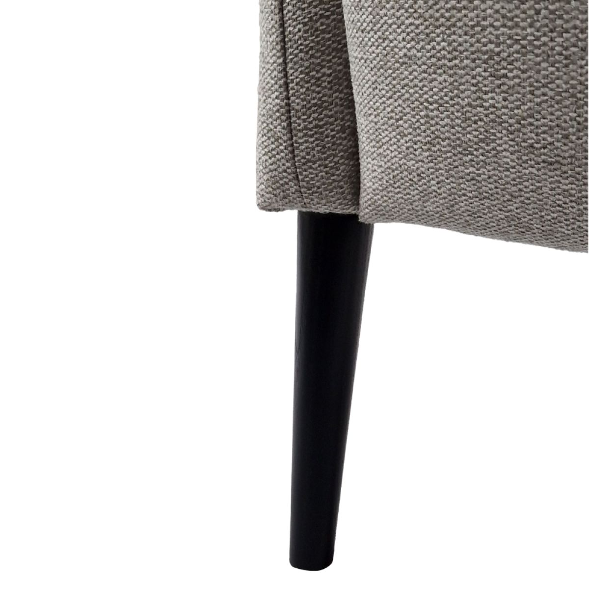 Material: ţesătură Matana 01 / lemn Rezistenţa ţesăturii conform testului Martindale: 57.000 de cicluri de frecare Culoare: gri deschis / neagră Dimensiuni (LxAxÎ): 70x70x75 cm Înălţimea scaunului: 44 cm Adâncime scaun: 53 cm Lăţime scaun: 50 cm Înălţime spătar: 33 cm Înălţime cotieră: 73 cm Capacitate de încărcare: 120 kg Umplutura scaunului: arcuri ondulate / spumă PUR T30 Tapiţat integral Livrat dezasamblat Posibilitatea de a alege dintre 9 nuanţe ale ţesăturii Poso şi 6 nuanţe ale ţesăturii Matana şi opţiunea de a alege lemnul în culoarea neagră sau în nuanţă de fag, la un preţ de 855 Lei. Pentru comenzi personalizate este necesară plata unui avans de 10% din suma totală. După achitarea avansului, comanda dumneavoastră va intra în producţie. Termenul de livrare este de 6-8 săptămâni.
