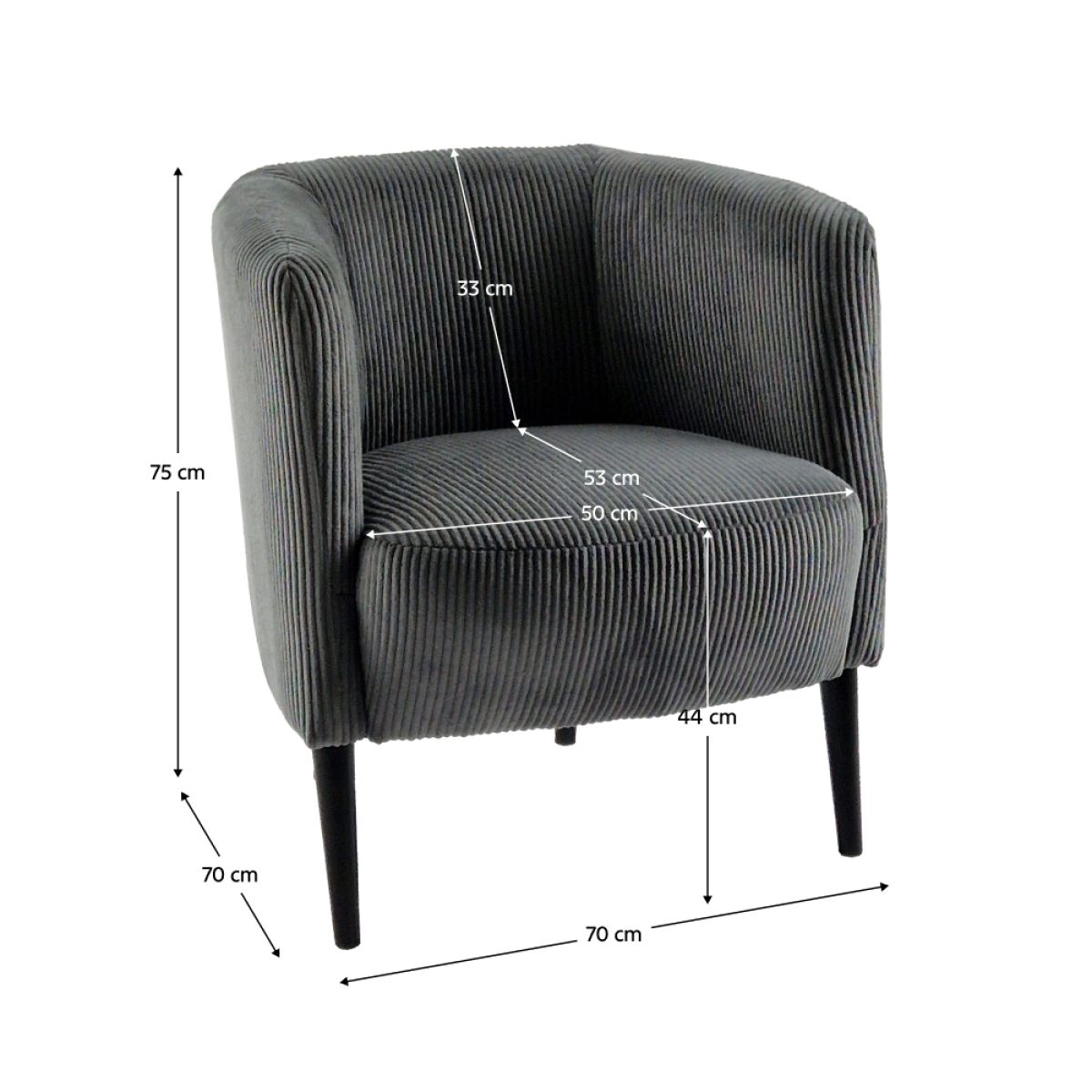 Material: ţesătură Poso 60 / lemn Rezistenţa ţesăturii conform testului Martindale: 90.000 de cicluri de frecare Culoare: gri / neagră Dimensiuni (LxAxÎ): 70x70x75 cm Înălţimea scaunului: 44 cm Adâncime scaun: 53 cm Lăţime scaun: 50 cm Înălţime spătar: 33 cm Înălţime cotieră: 73 cm Capacitate de încărcare: 120 kg Umplutura scaunului: arcuri ondulate / spumă PUR T30 Tapiţat integral Livrat dezasamblat Posibilitatea de a alege dintre 9 nuanţe ale ţesăturii Poso şi 6 nuanţe ale ţesăturii Matana şi opţiunea de a alege lemnul în culoarea neagră sau în nuanţă de fag, la un preţ de 855 Lei. Pentru comenzi personalizate este necesară plata unui avans de 10% din suma totală. După achitarea avansului, comanda dumneavoastră va intra în producţie. Termenul de livrare este de 6-8 săptămâni.