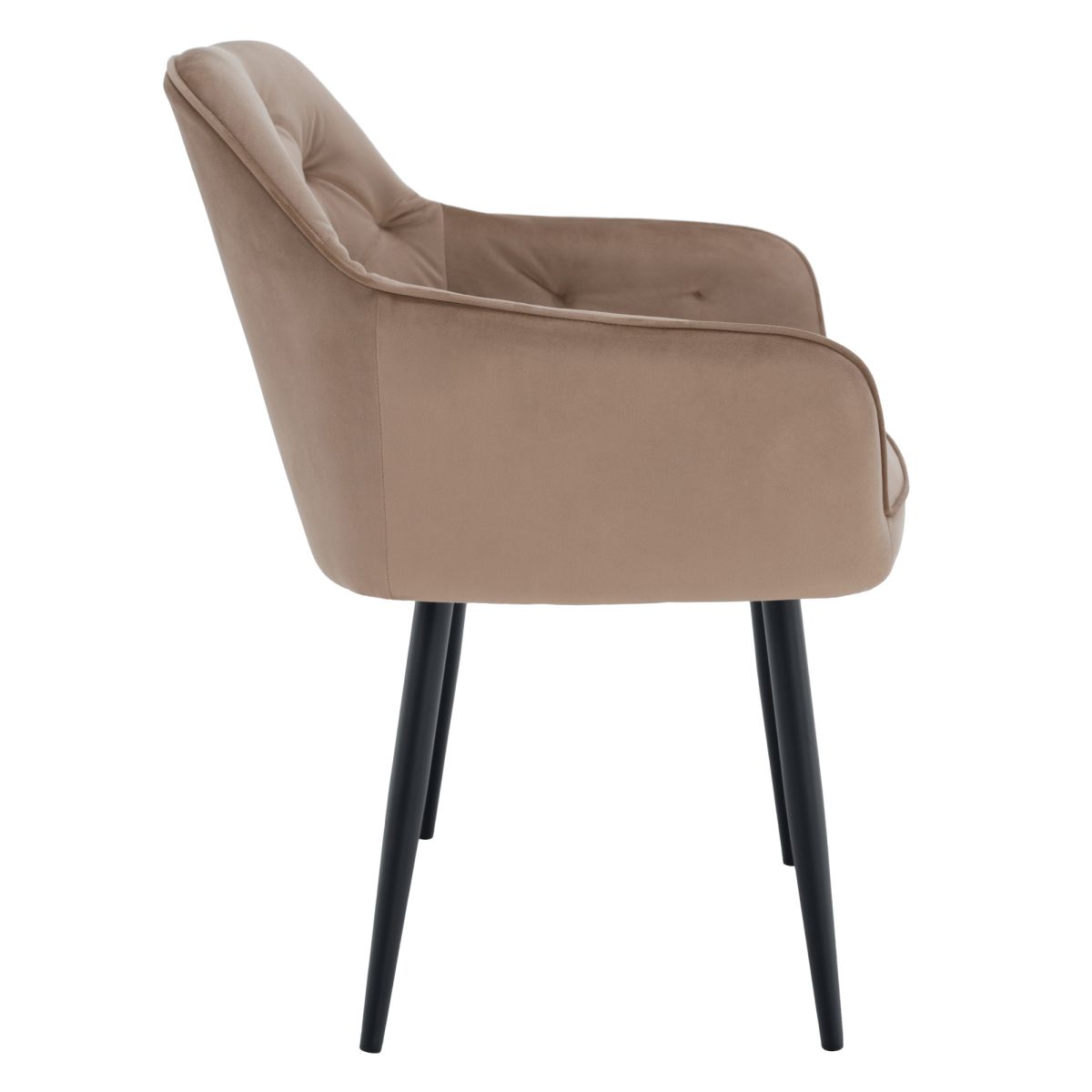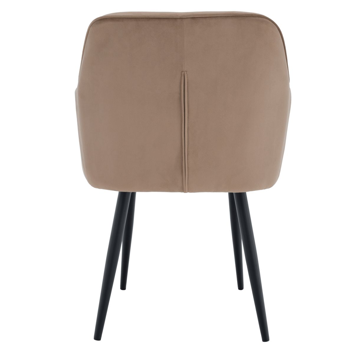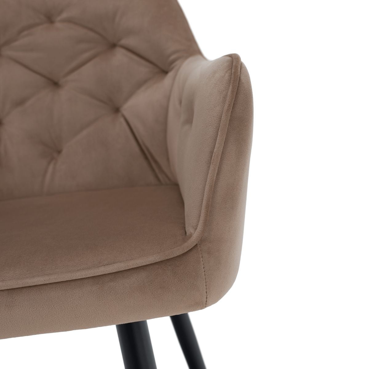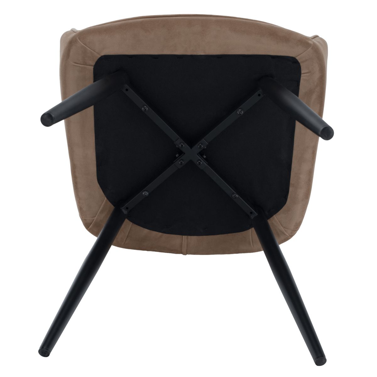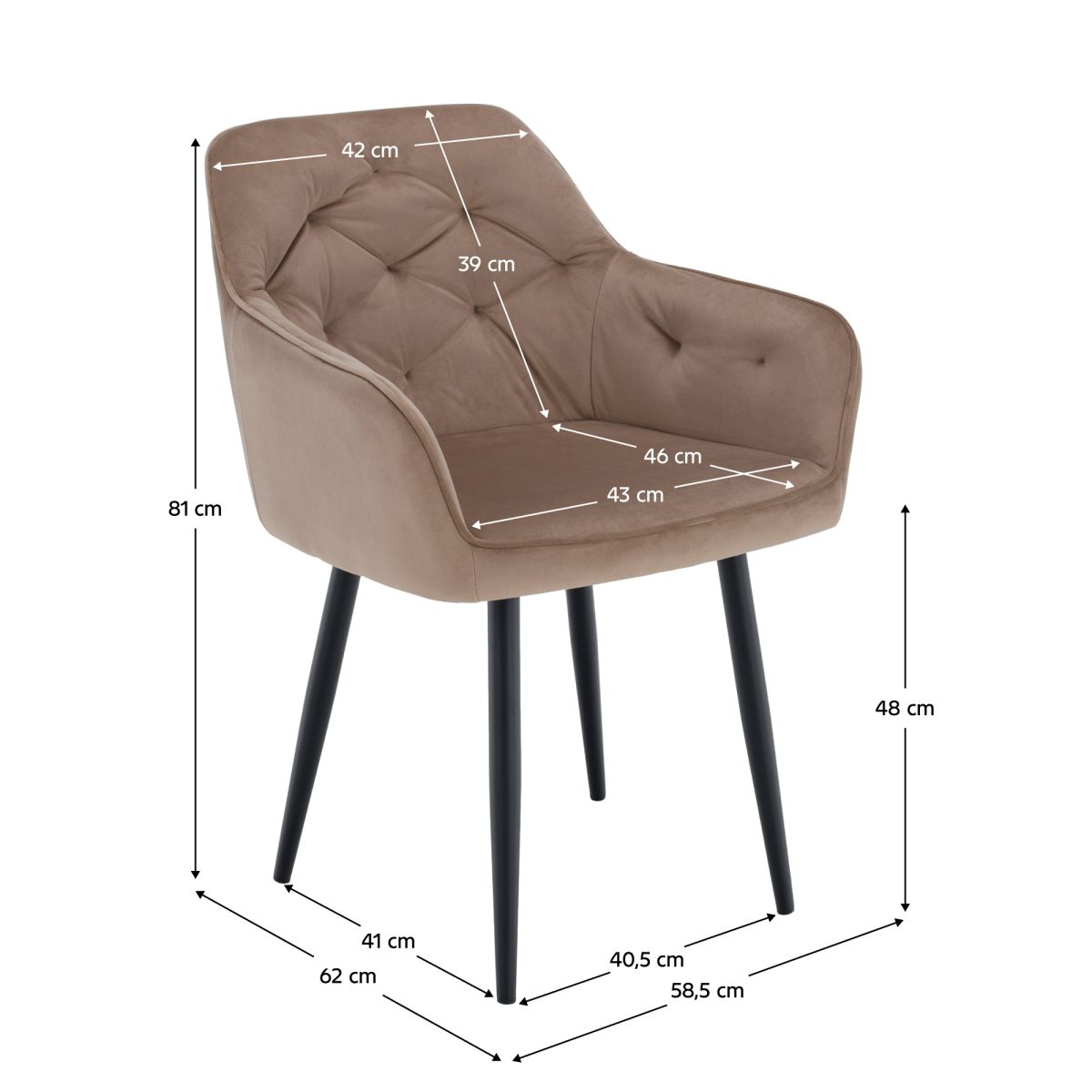 Material: ţesătură Bluvel 28metal Rezistenţa ţesăturii conform testului Martindale: 80 000 de cicluri de frecare Culoare: maro deschis Velvet/negru Dimensiuni (Lxlxh): 58,5x62x81 cm Înălţime scaun: 48 cm Adâncime scaun: 46 cm Lăţime scaun: 43 cm Înălţime spătar: 39 cm Portanţa: 90 kg Design Cusut decorativ Cu zonă de şedere moale Livrat dezasamblat