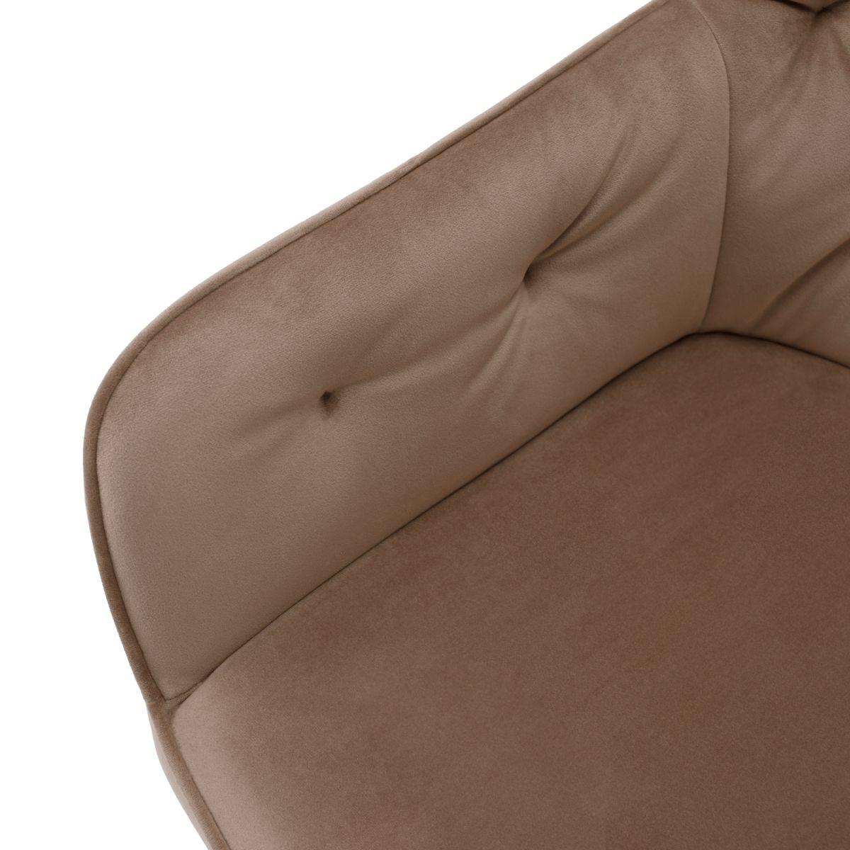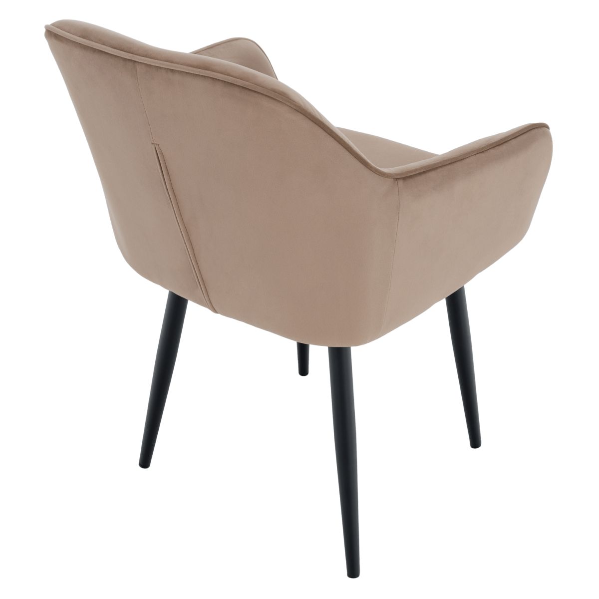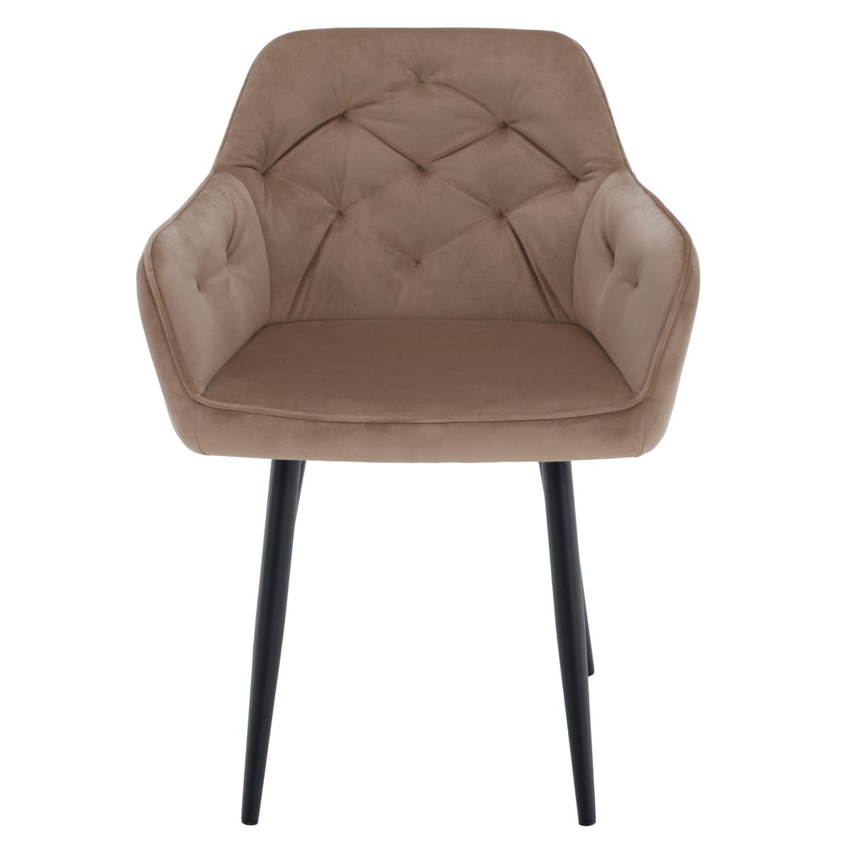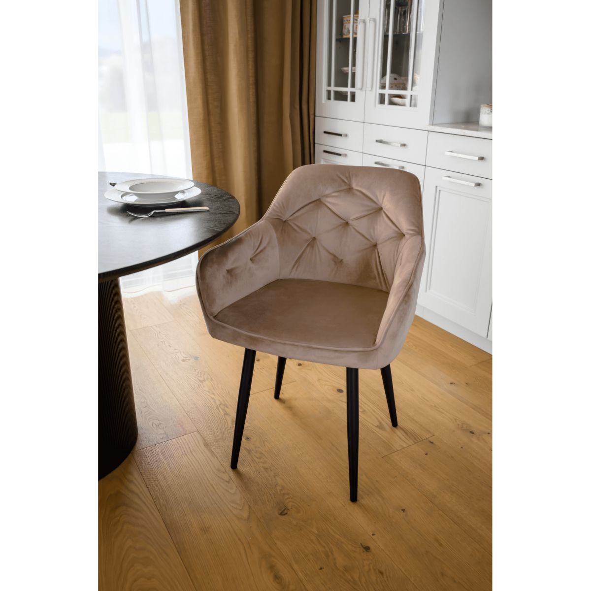 Material: ţesătură Bluvel 28metal Rezistenţa ţesăturii conform testului Martindale: 80 000 de cicluri de frecare Culoare: maro deschis Velvet/negru Dimensiuni (Lxlxh): 58,5x62x81 cm Înălţime scaun: 48 cm Adâncime scaun: 46 cm Lăţime scaun: 43 cm Înălţime spătar: 39 cm Portanţa: 90 kg Design Cusut decorativ Cu zonă de şedere moale Livrat dezasamblat