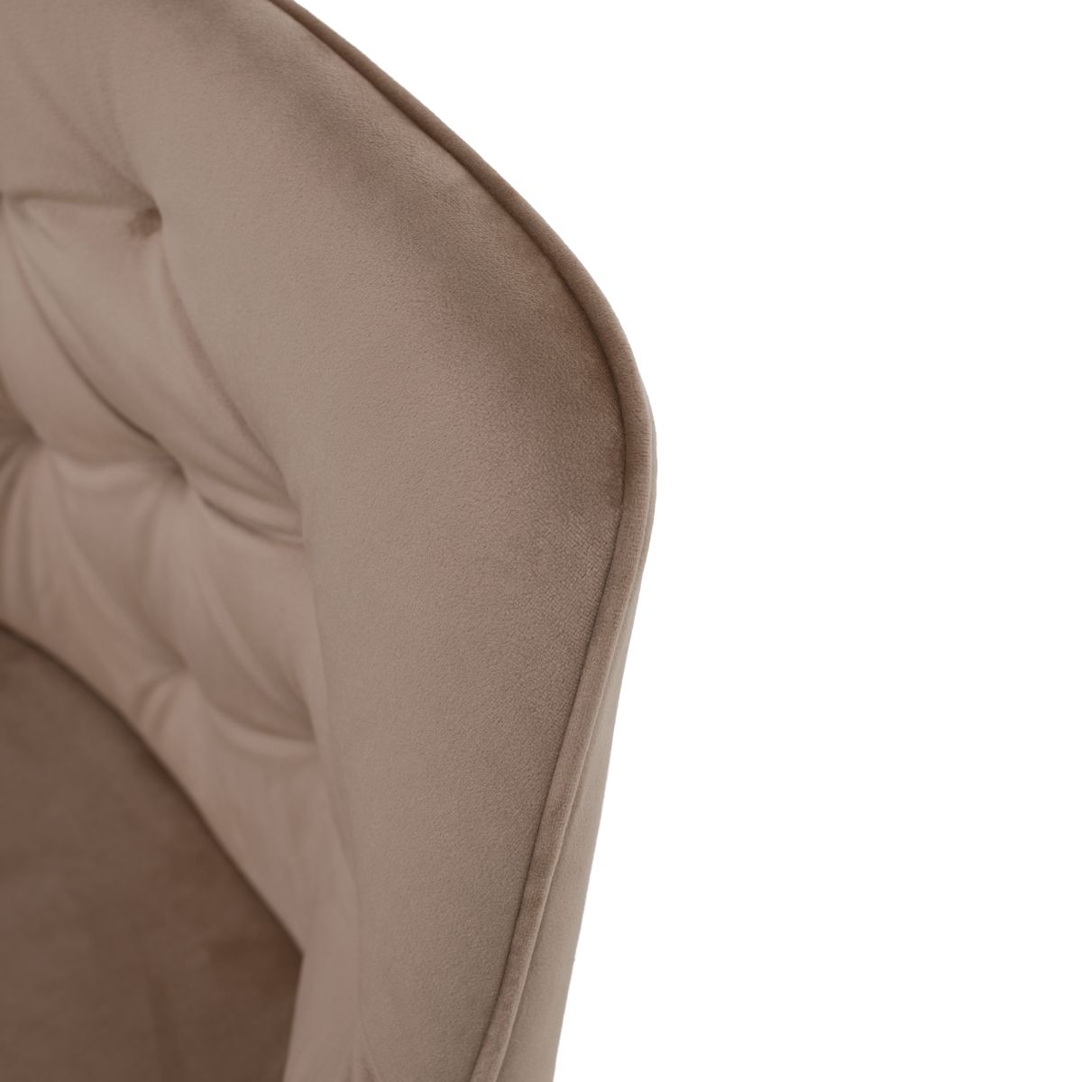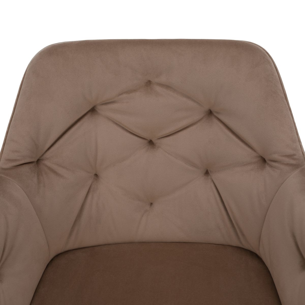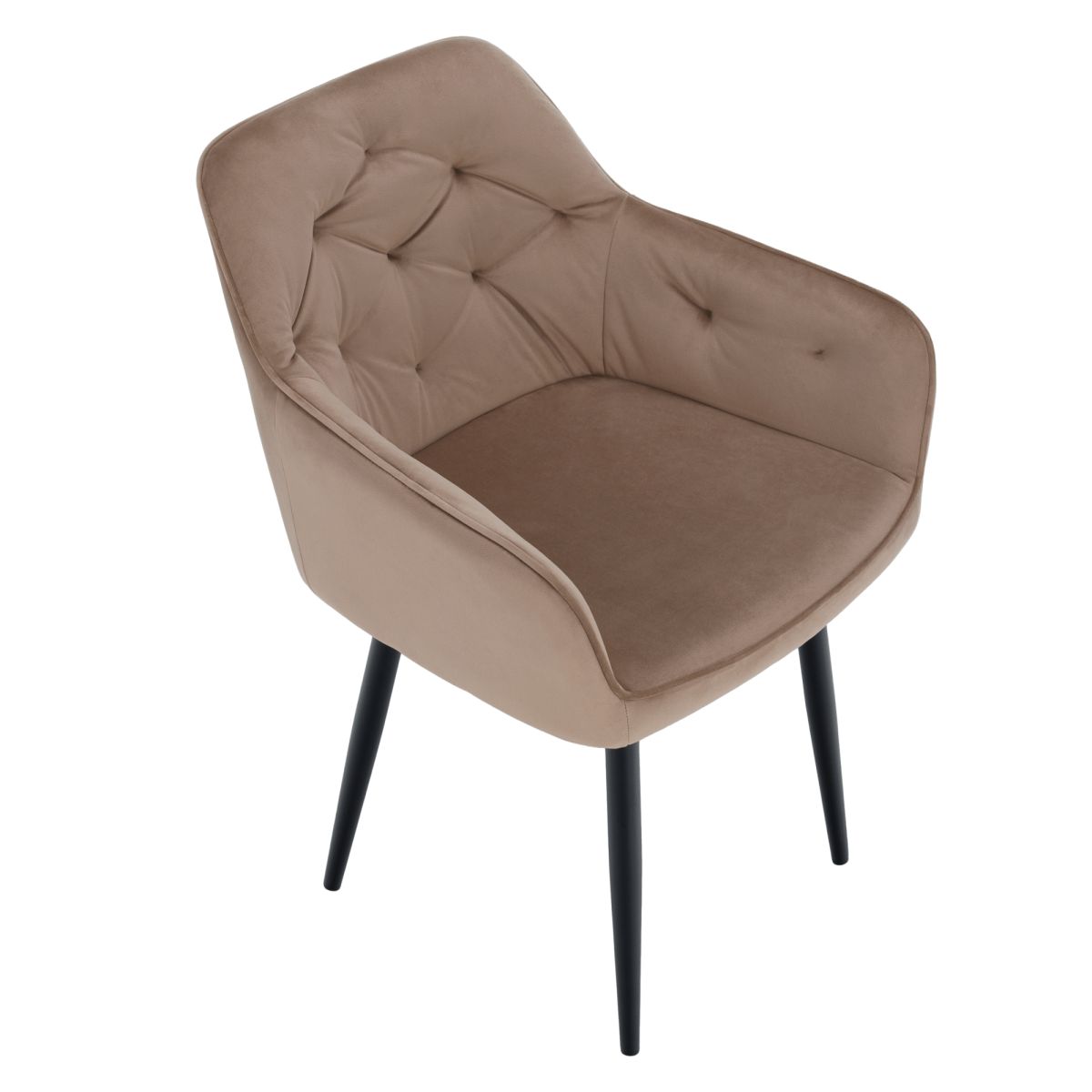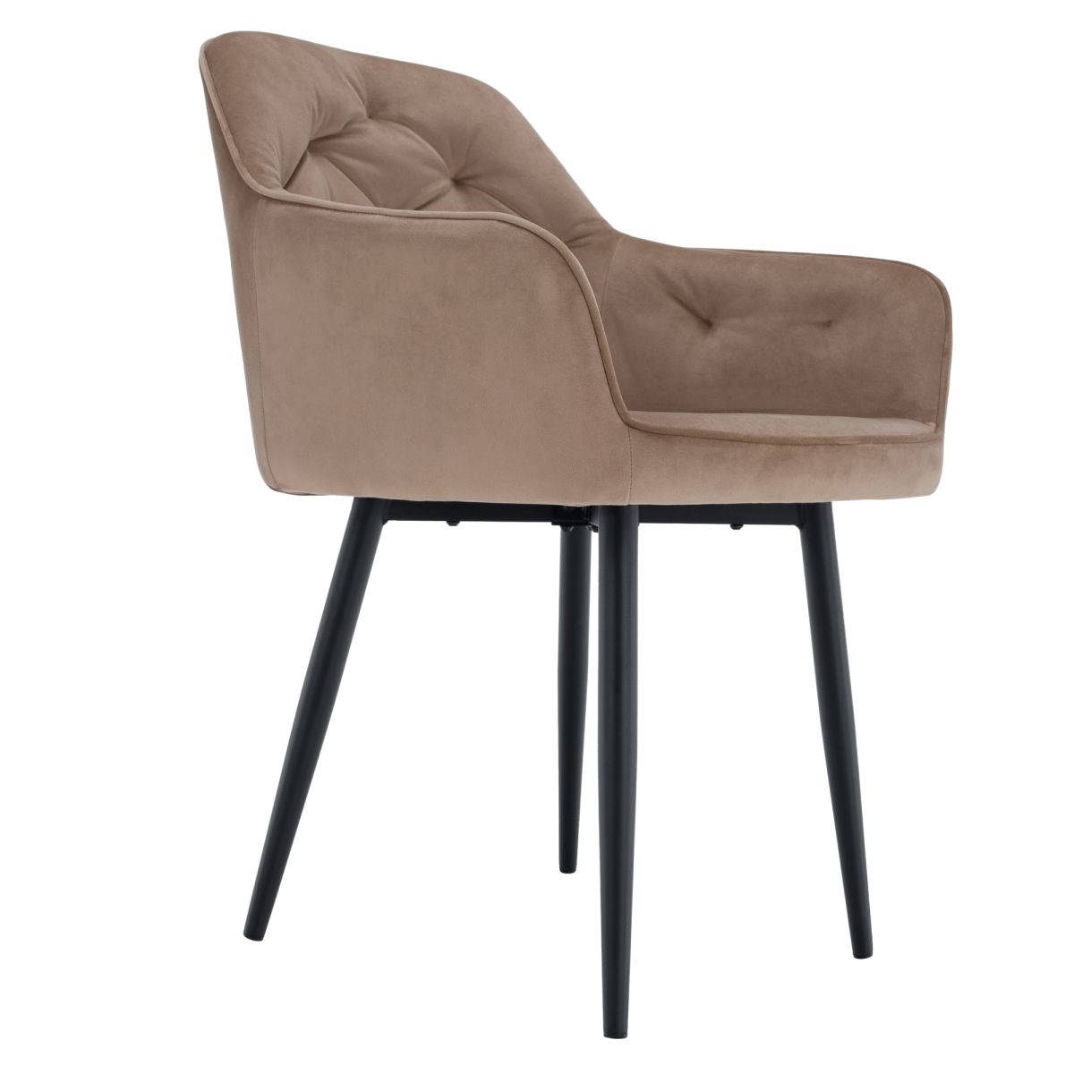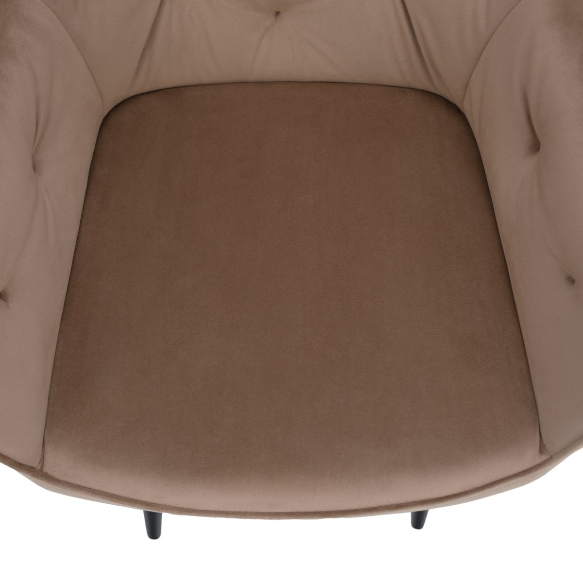 Material: ţesătură Bluvel 28metal Rezistenţa ţesăturii conform testului Martindale: 80 000 de cicluri de frecare Culoare: maro deschis Velvet/negru Dimensiuni (Lxlxh): 58,5x62x81 cm Înălţime scaun: 48 cm Adâncime scaun: 46 cm Lăţime scaun: 43 cm Înălţime spătar: 39 cm Portanţa: 90 kg Design Cusut decorativ Cu zonă de şedere moale Livrat dezasamblat
