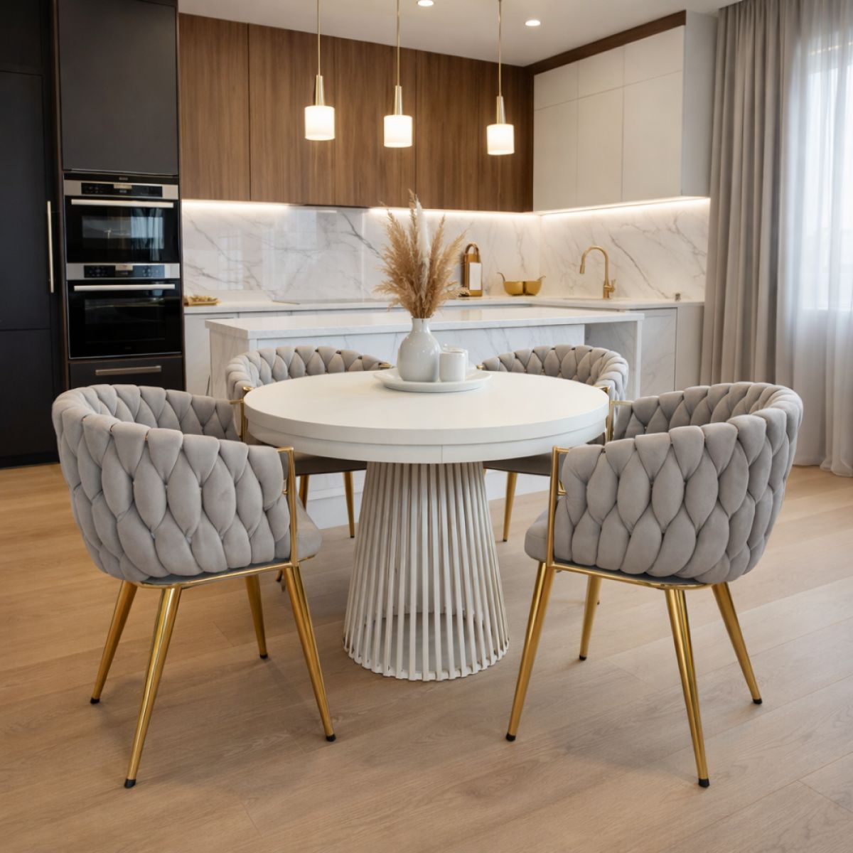 Material: ţesătură Velvet/crom Rezistenţa ţesăturii la frecare conform testului Martindale: 80 000 de cicluri de frecare Culoare: Taupe/gold crom auriu Dimensiuni (lxAxh): 64x55x78 cm Înălţimea părţii de şezut: 48 cm Adâncimea părţii de şezut: 41 cm Lăţime scaun: 46 cm Lăţime spătar: 43 cm Înălţime spătar: 33 cm Portanţă: 100 kg Greutate: 8,05 kg De design Cusături decorative cu aspect deosebit Livrat dezasamblat