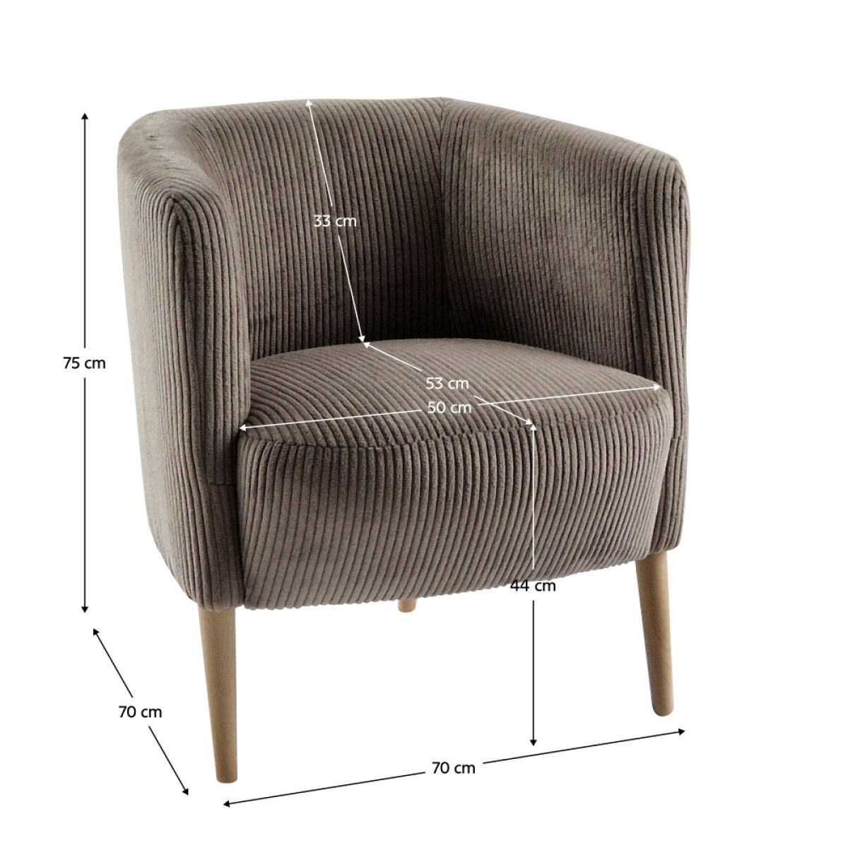Material: ţesătură Poso 03 / lemn Rezistenţa ţesăturii conform testului Martindale: 90.000 de cicluri Culoare: gri-bej Taupe Dimensiuni (LxAxÎ): 70x70x75 cm Înălţimea scaunului: 44 cm Adâncime scaun: 53 cm Lăţime scaun: 50 cm Înălţime spătar: 33 cm Înălţime cotieră: 73 cm Capacitate de încărcare: 120 kg Umplutura scaunului: arcuri ondulate / spumă PUR T30 Tapiţat integral Livrat dezasamblat Posibilitatea de a alege dintre 9 nuanţe ale ţesăturii Poso şi 6 nuanţe ale ţesăturii Matana şi opţiunea de a alege lemnul în culoarea neagră sau în nuanţă de fag, la un preţ de 855 Lei. Pentru comenzi personalizate este necesară plata unui avans de 10% din suma totală. După achitarea avansului, comanda dumneavoastră va intra în producţie. Termenul de livrare este de 6-8 săptămâni.