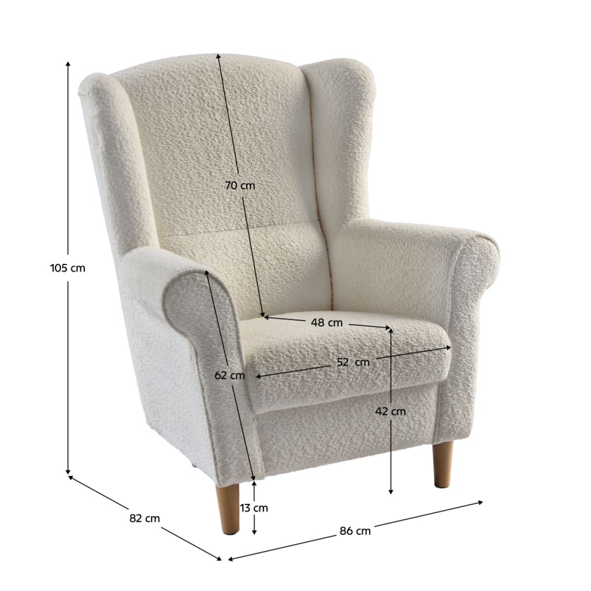 Material: textil Coral Bouclé 15/lemn/spuma Poliureţan Rezistenţa materialului: 45 000 Martindale Culoare: crem/fag Dimensiuni (LxAxH): 86x82x105 cm Înălţimea şederii: 42 cm Adâncimea şederii: 48 cm Lăţimea şederii: 52 cm Înălţimea spătarului: 70 cm Înalţimea cotierelor: 62 cm Picioare din lemn Înălţimea picioarelor din lemn: 13 cm Greutate susţinută: 120 kg Puteţi cumpăra modele Charlot în materialului textil Alova la preţul de 1.679,- sau în materialul textil Soro la preţul de 1.719,- sau în materialului textil Coral la preţul de 1.635,-. Pentru o comandă individuală, este necesar să plătiţi un avans de 20% din sumă. După achitarea avansului, comanda dvs. va fi dată în producţie. Durata de livrare este de 8-10 săptămâni.