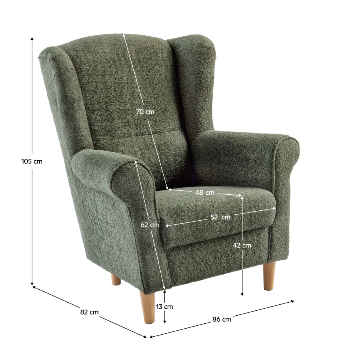 Material: textil Coral Bouclé 20/lemn/spuma Poliureţan Rezistenţa materialului: 45 000 Martindale Culoare: verde/fag Dimensiuni (LxAxH): 86x82x105 cm Înălţimea şederii: 42 cm Adâncimea şederii: 48 cm Lăţimea şederii: 52 cm Înălţimea spătarului: 70 cm Înalţimea cotierelor: 62 cm Picioare din lemn Înălţimea picioarelor din lemn: 13 cm Greutate susţinută: 120 kg Puteţi cumpăra modele Charlot în materialului textil Alova la preţul de 1.679,- sau în materialul textil Soro la preţul de 1.719,- sau în materialului textil Coral la preţul de 1.635,-. Pentru o comandă individuală, este necesar să plătiţi un avans de 20% din sumă. După achitarea avansului, comanda dvs. va fi dată în producţie. Durata de livrare este de 8-10 săptămâni.