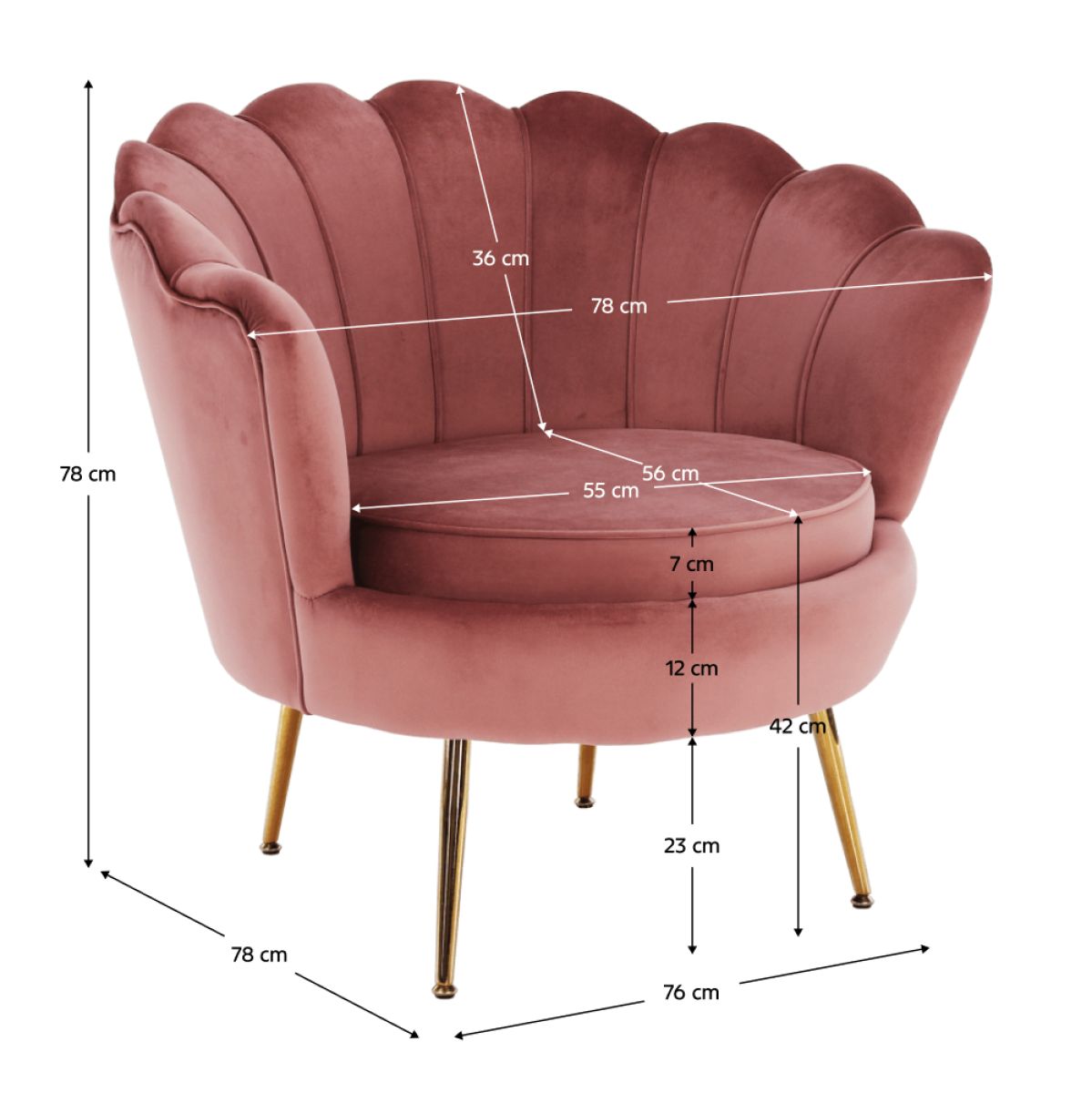 Fotoliu tip scoică, catifea roz/ auriu, JOLIE