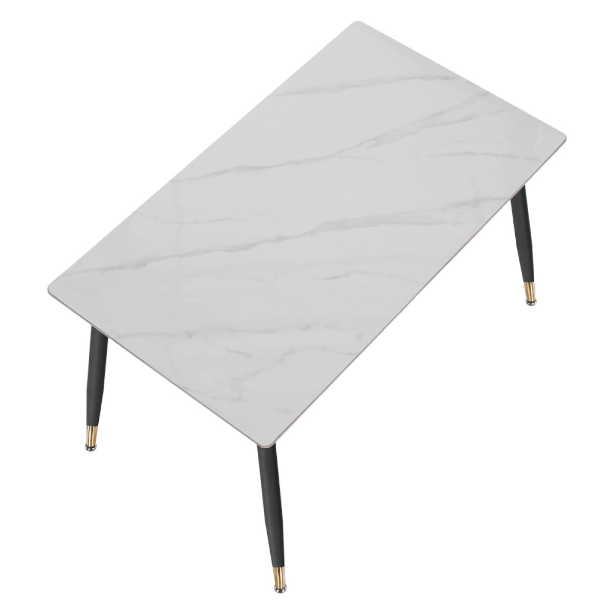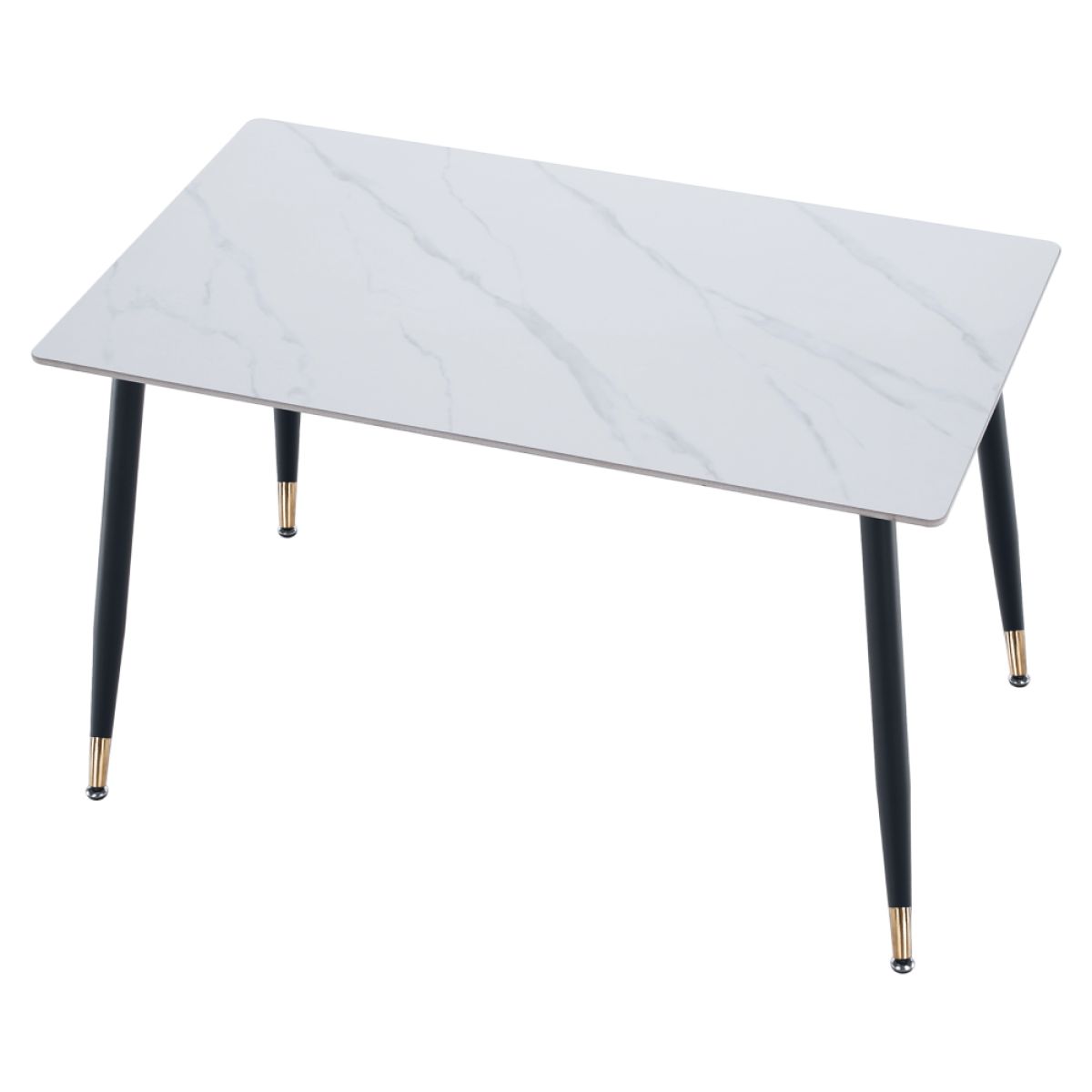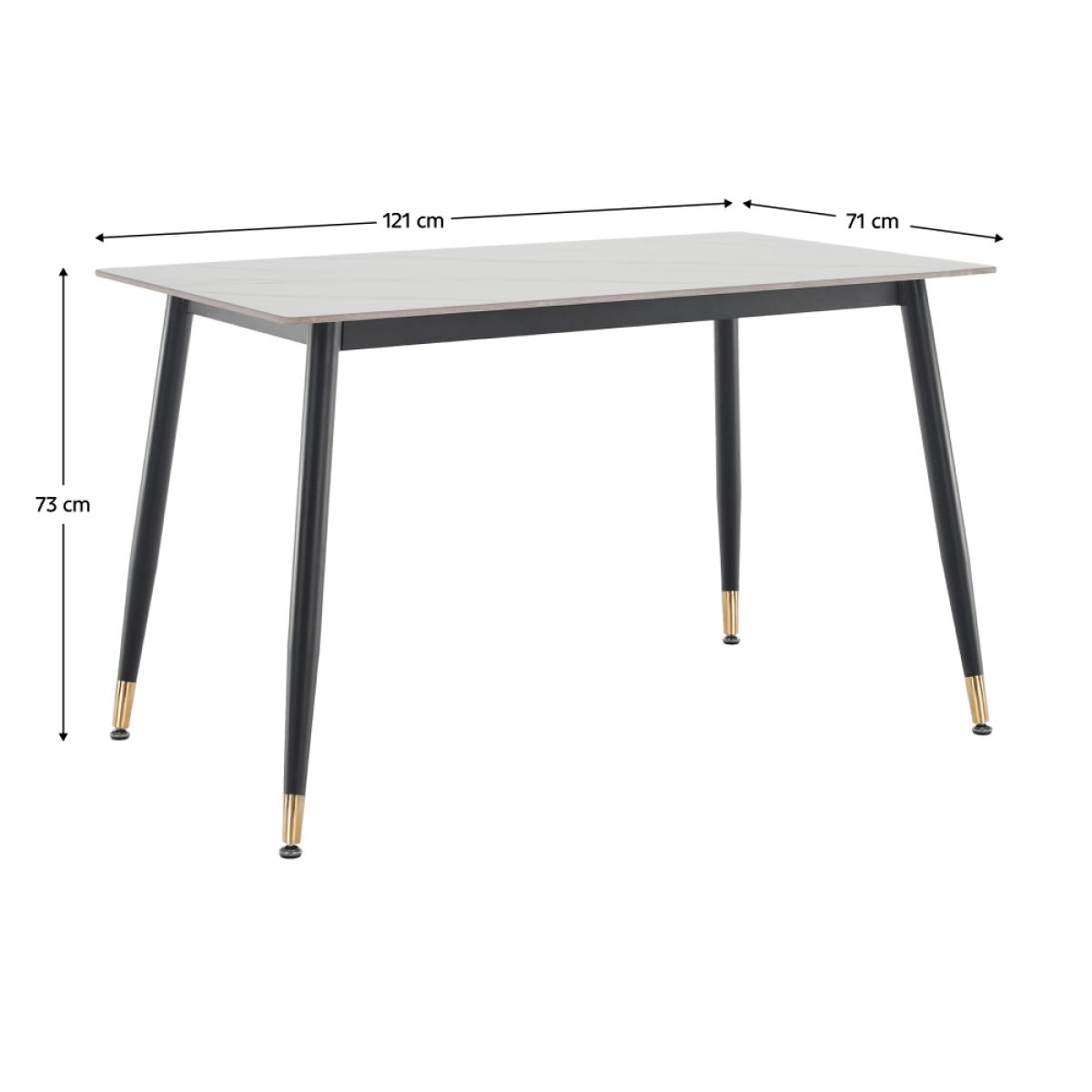 Material: piatră/oţel Culoare: marmură albă/neagră/aurie Dimensiuni (Lxlxh): 121x71x73 cm Grosimea blatului de piatră: 1,07 cm Portanţă: 50 kg Practic Design modern Potrivit pentru 4-6 persoane Livrat dezasamblat