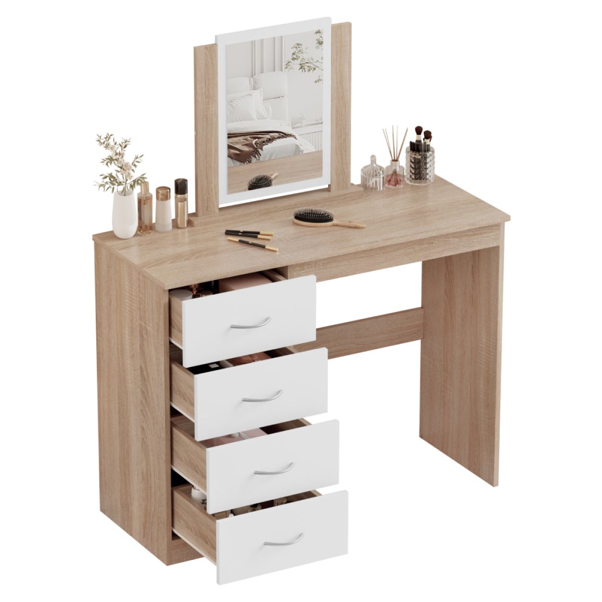 Masă de toaletă, stejar sonoma/alb, KLEVIS
