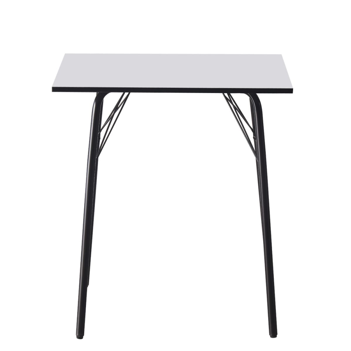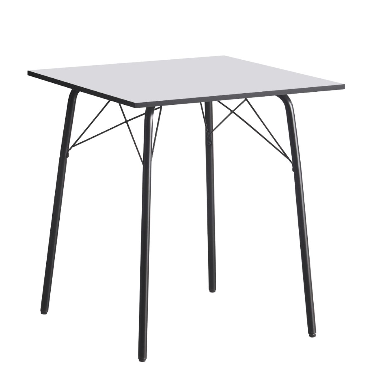 Material: MDF / metal Culoare: albă / neagră Dimensiuni (LxAxÎ): 70x70x75 cm Grosimea materialului plăcii superioare: 1,5 cm Capacitate de încărcare: 25 kg Simplă Minimalistă Design clasic Picioare metalice Uşor de întreţinut Cu glisoare pentru protecţia podelei Masă dining pentru 4 persoane Livrată dezasamblată