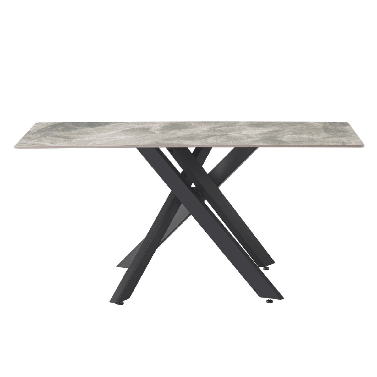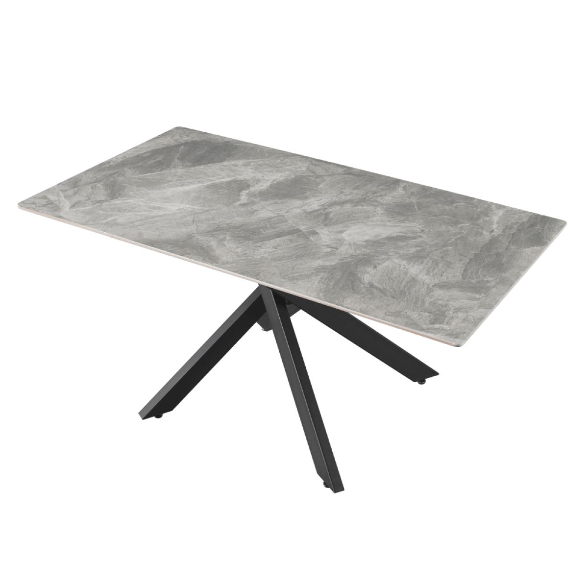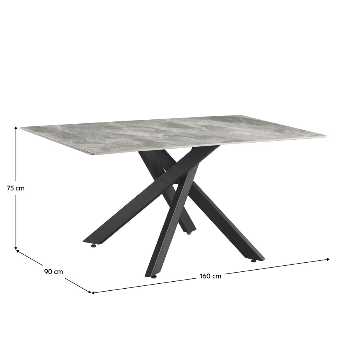 Material: ceramică / metal Culoare: marmură gri deschis / neagră Dimensiuni (LxAxÎ): 160x90x75 cm Grosime material: 1,2 cm Potrivită pentru 6-8 persoane Bază metalică stabilă Capacitate de încărcare: 25 kg Livrată dezasamblată