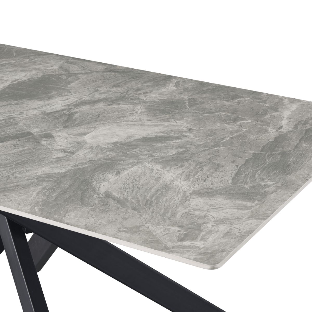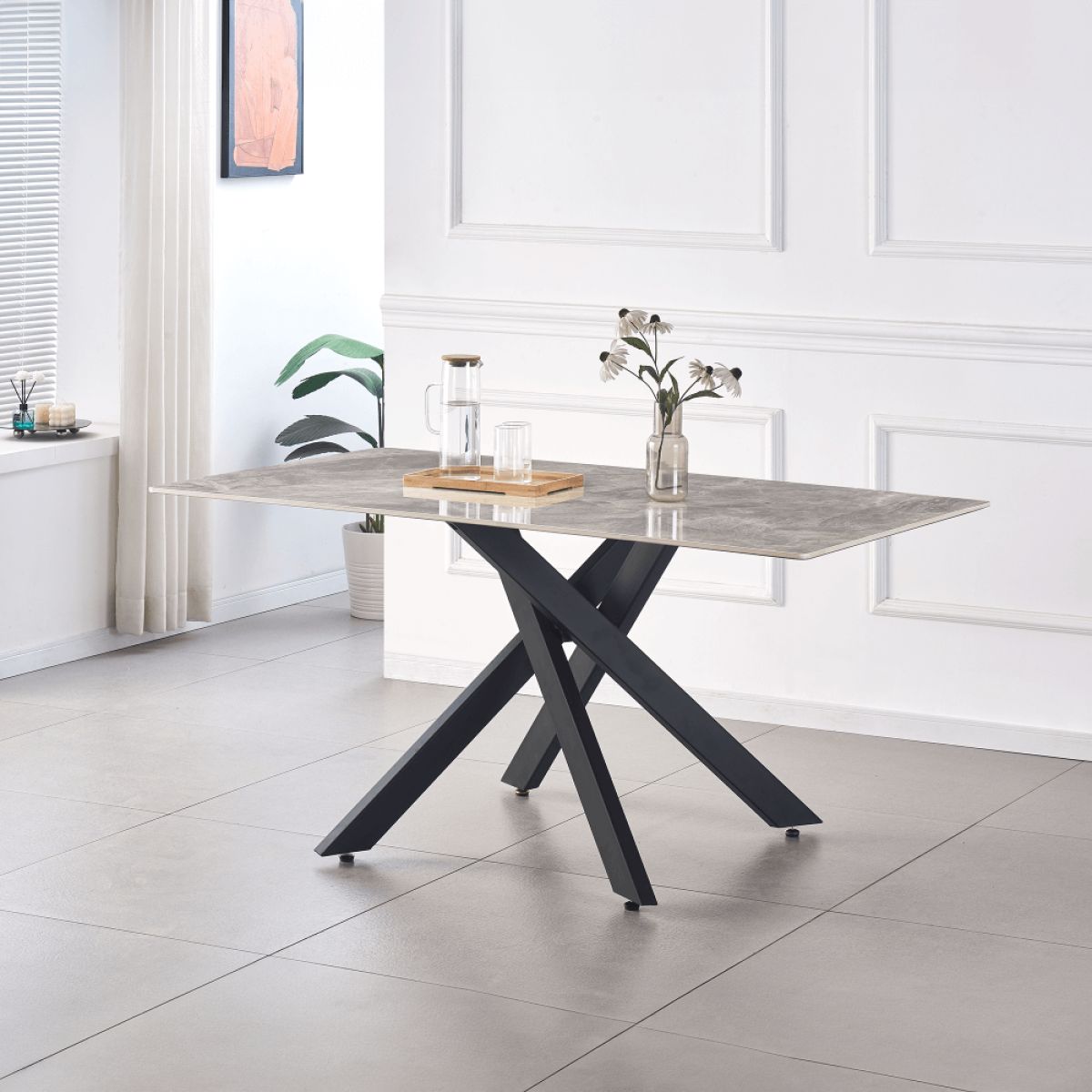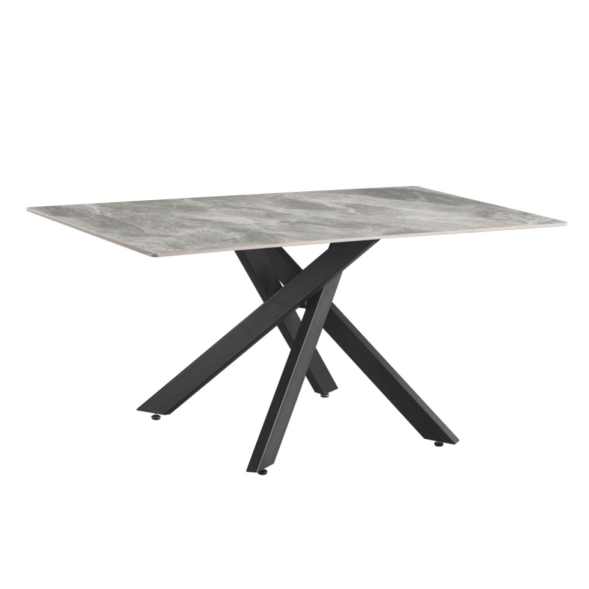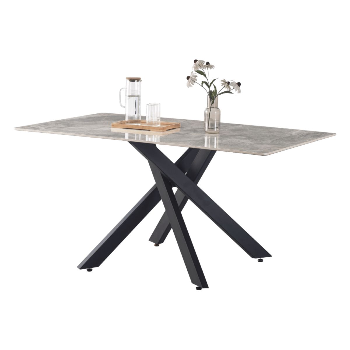 Material: ceramică / metal Culoare: marmură gri deschis / neagră Dimensiuni (LxAxÎ): 160x90x75 cm Grosime material: 1,2 cm Potrivită pentru 6-8 persoane Bază metalică stabilă Capacitate de încărcare: 25 kg Livrată dezasamblată