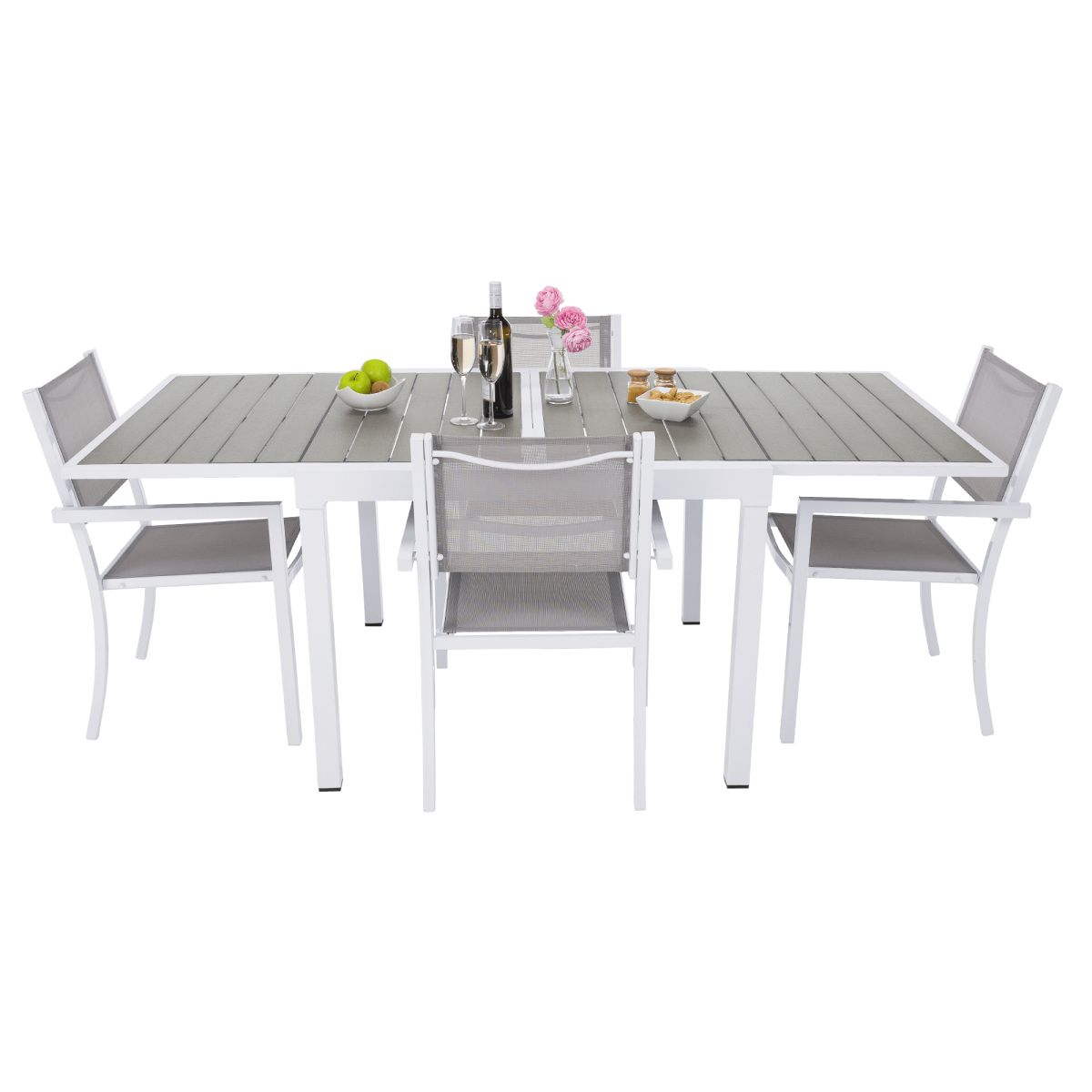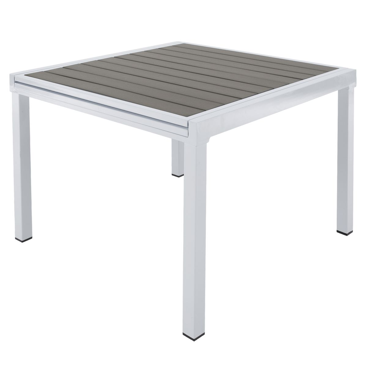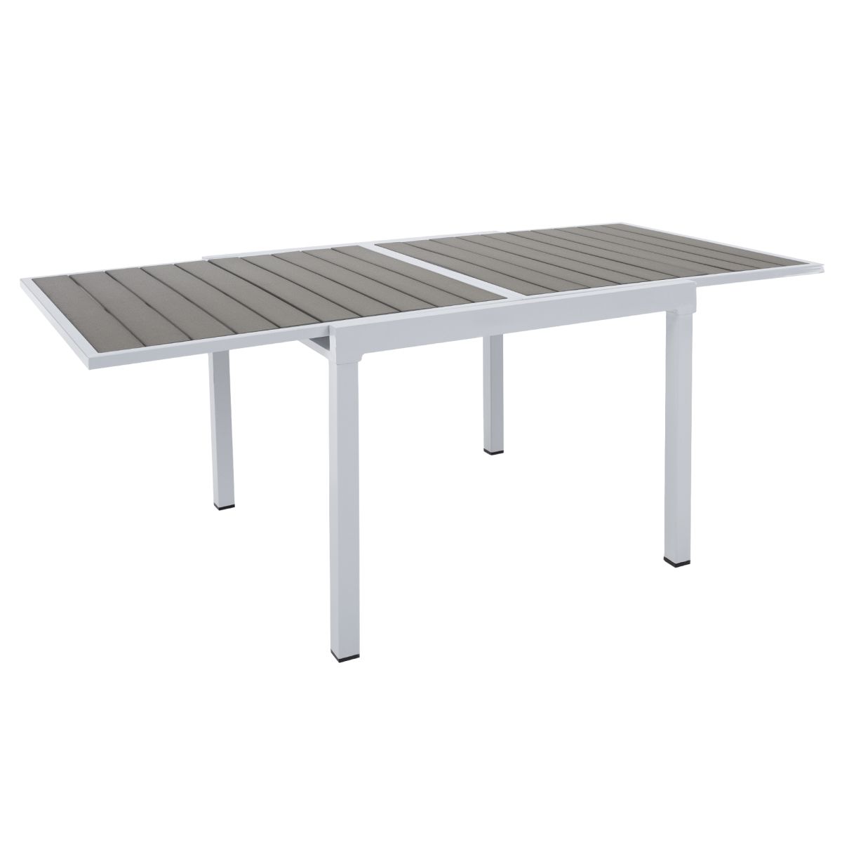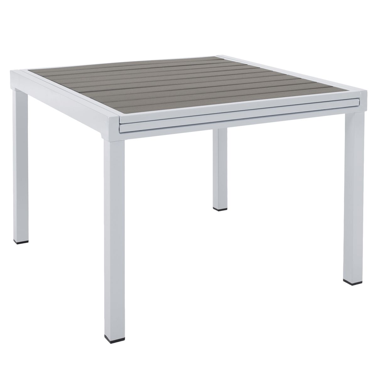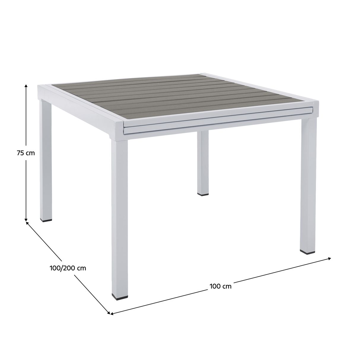 Material: oţel / polywood Culoare: albă / gri Dimensiuni (LxAxÎ): 100/200x100x75 cm Capacitate de încărcare: 35 kg Simplă Extensibilă Pentru 4-8 persoane De Grădină Design modern Livrată dezasamblată