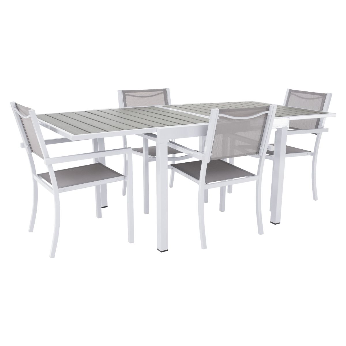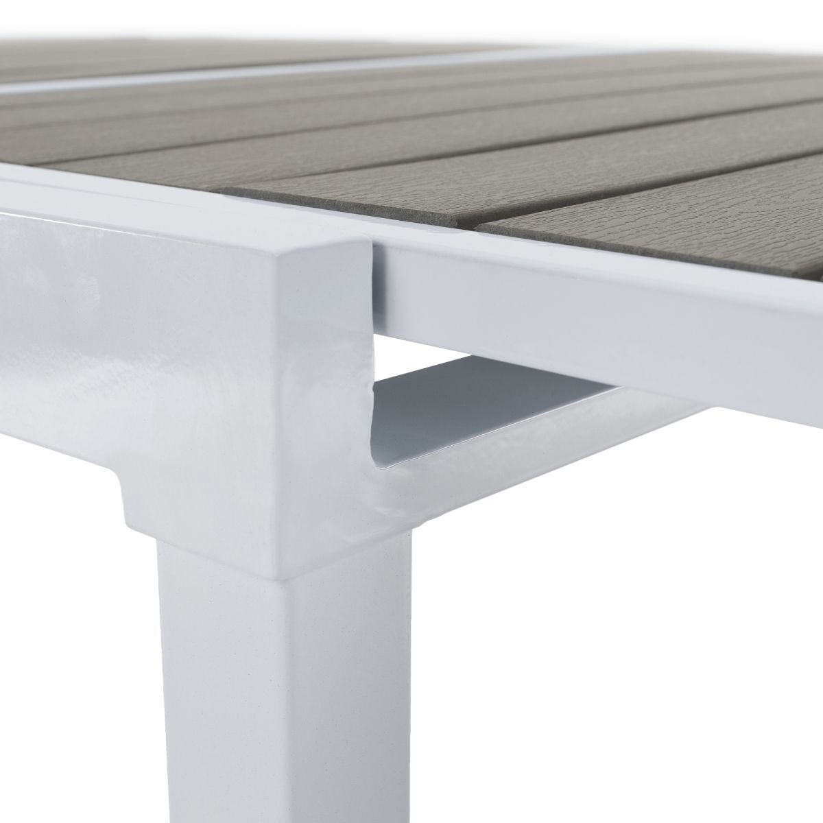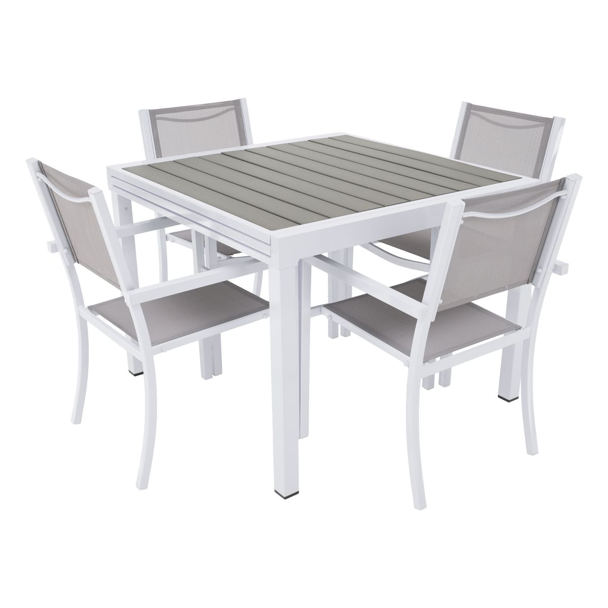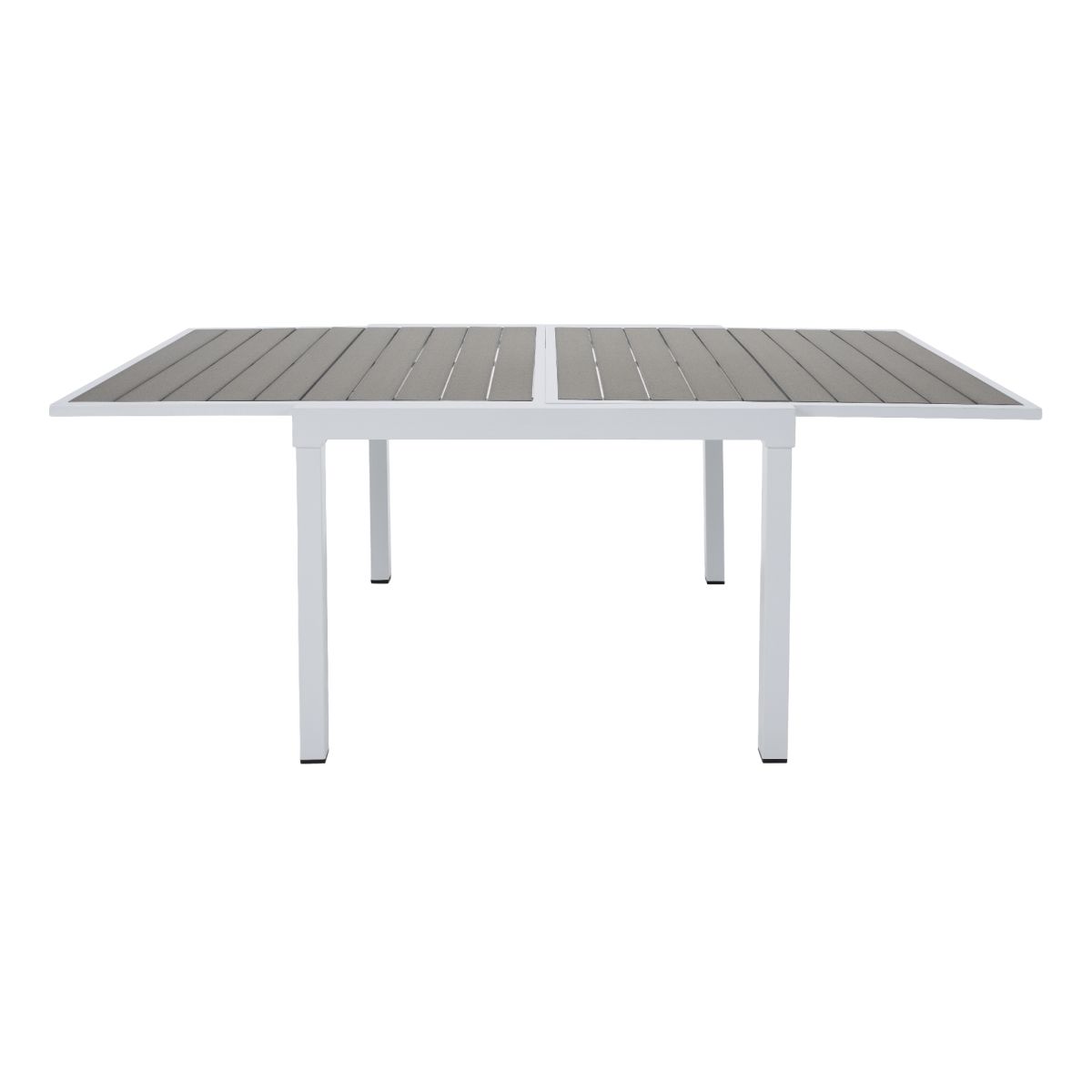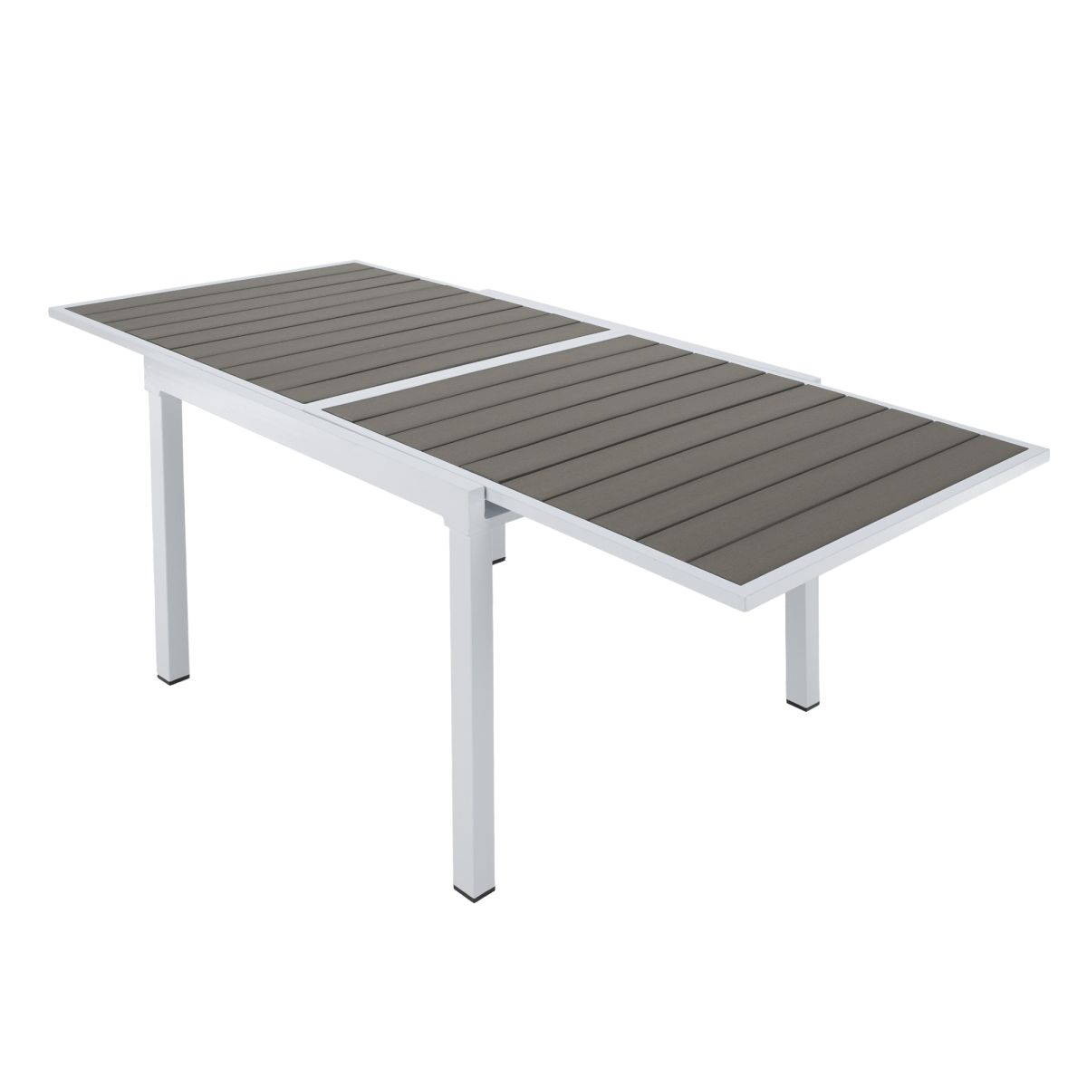 Material: oţel / polywood Culoare: albă / gri Dimensiuni (LxAxÎ): 100/200x100x75 cm Capacitate de încărcare: 35 kg Simplă Extensibilă Pentru 4-8 persoane De Grădină Design modern Livrată dezasamblată