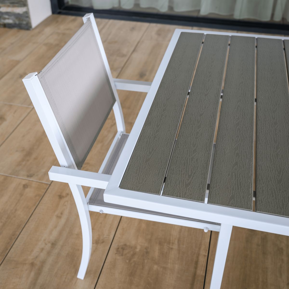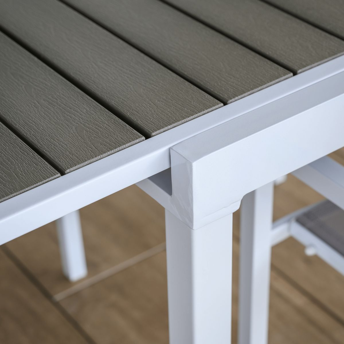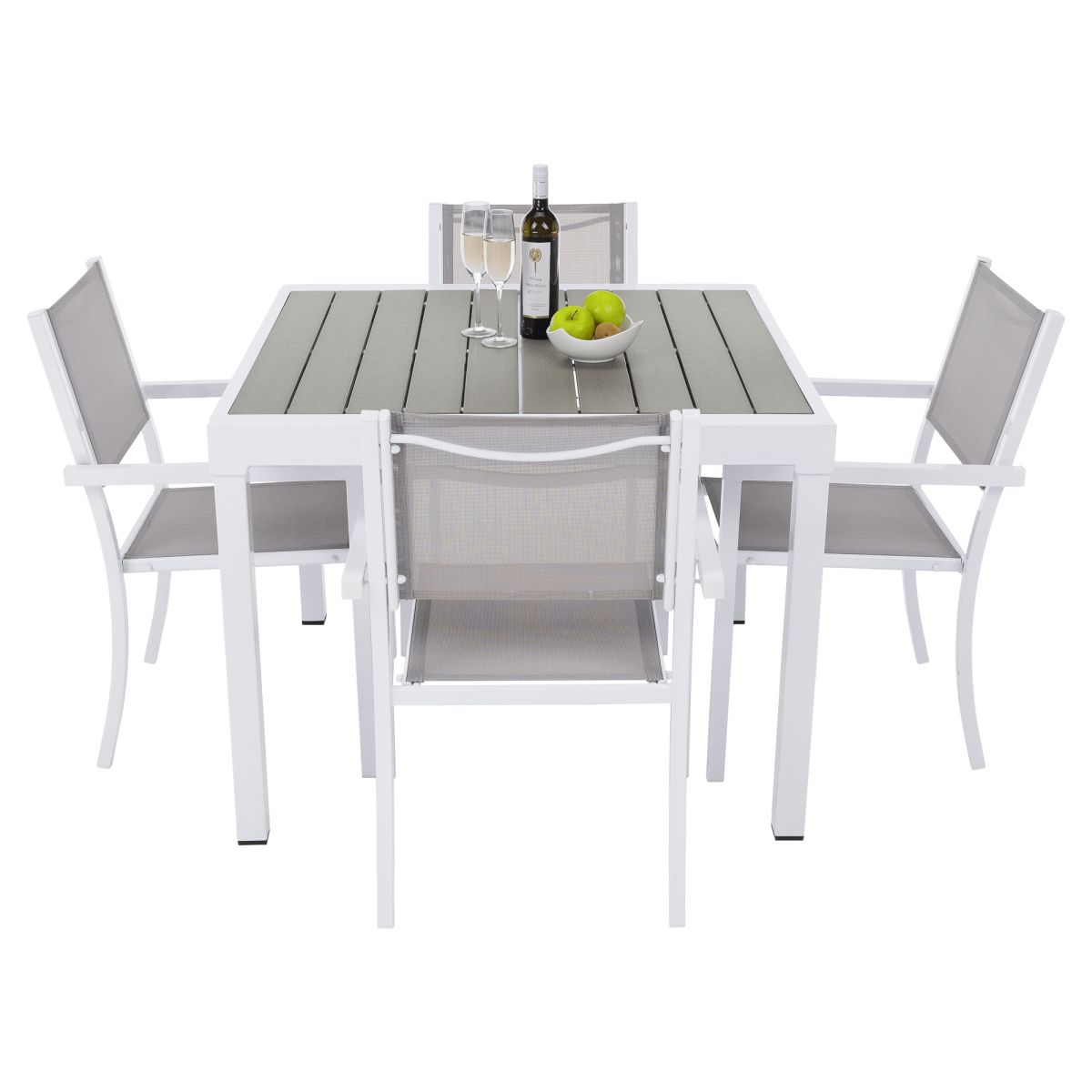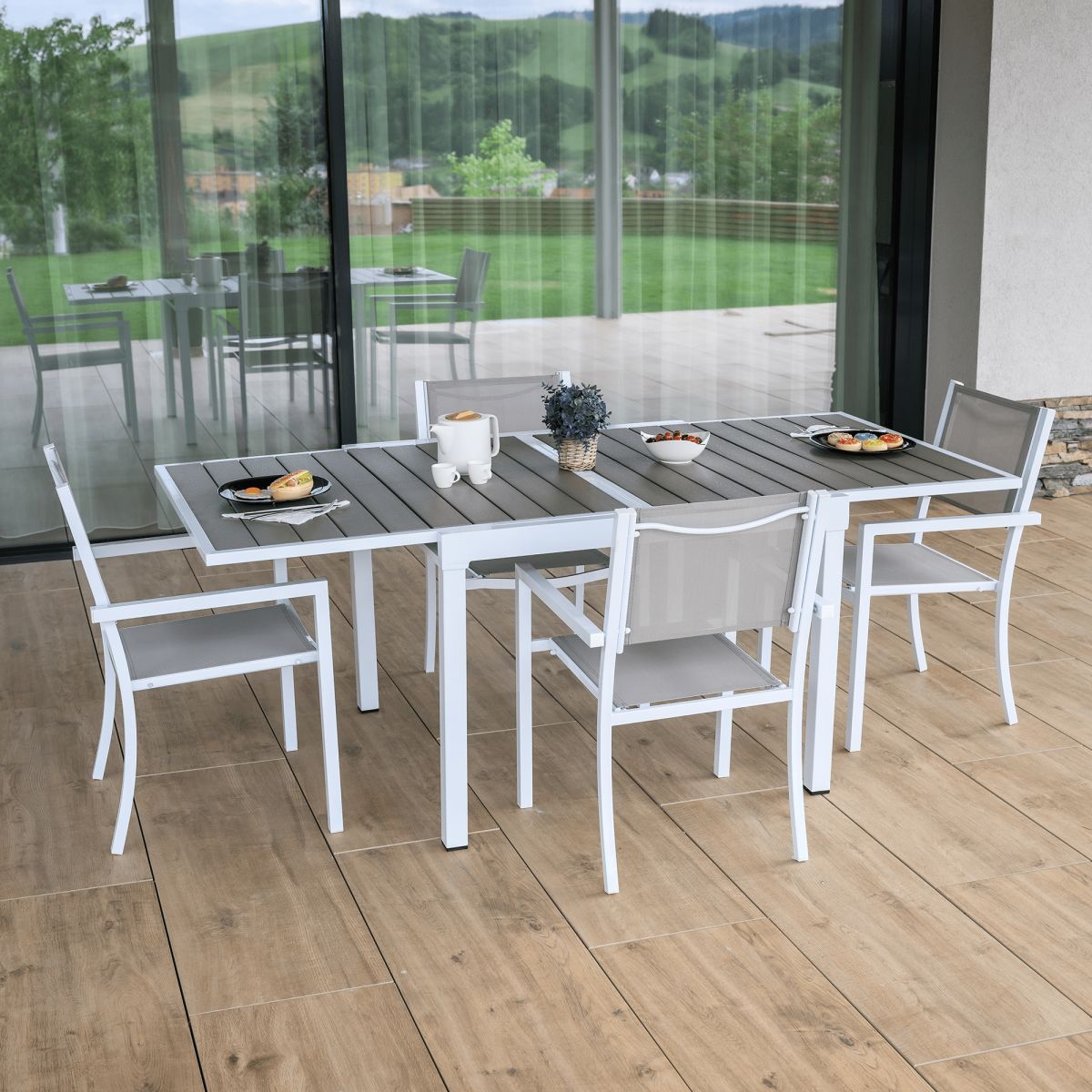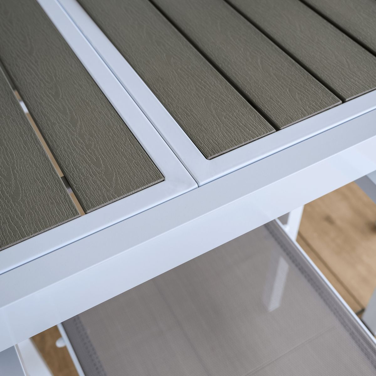 Material: oţel / polywood Culoare: albă / gri Dimensiuni (LxAxÎ): 100/200x100x75 cm Capacitate de încărcare: 35 kg Simplă Extensibilă Pentru 4-8 persoane De Grădină Design modern Livrată dezasamblată