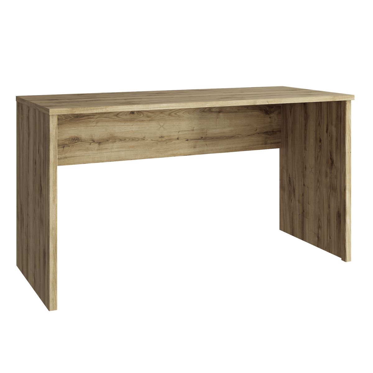 "Masă PC DORSI 140 Material: DTD laminat/MDF Culoarea: stejar navarra Dimensiuni (LxAxÎ): 140x60x75,6 cm Grosimea materialului: 1,6 cm Mânere din plastic Culoarea mânerului: neagră Design modern Livrat în formă dezasamblată"