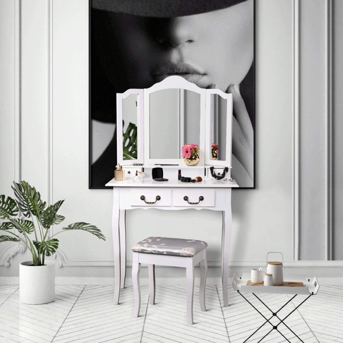 Măsuţă de toaletă în stil baroc, alb/ argintiu, REGINA